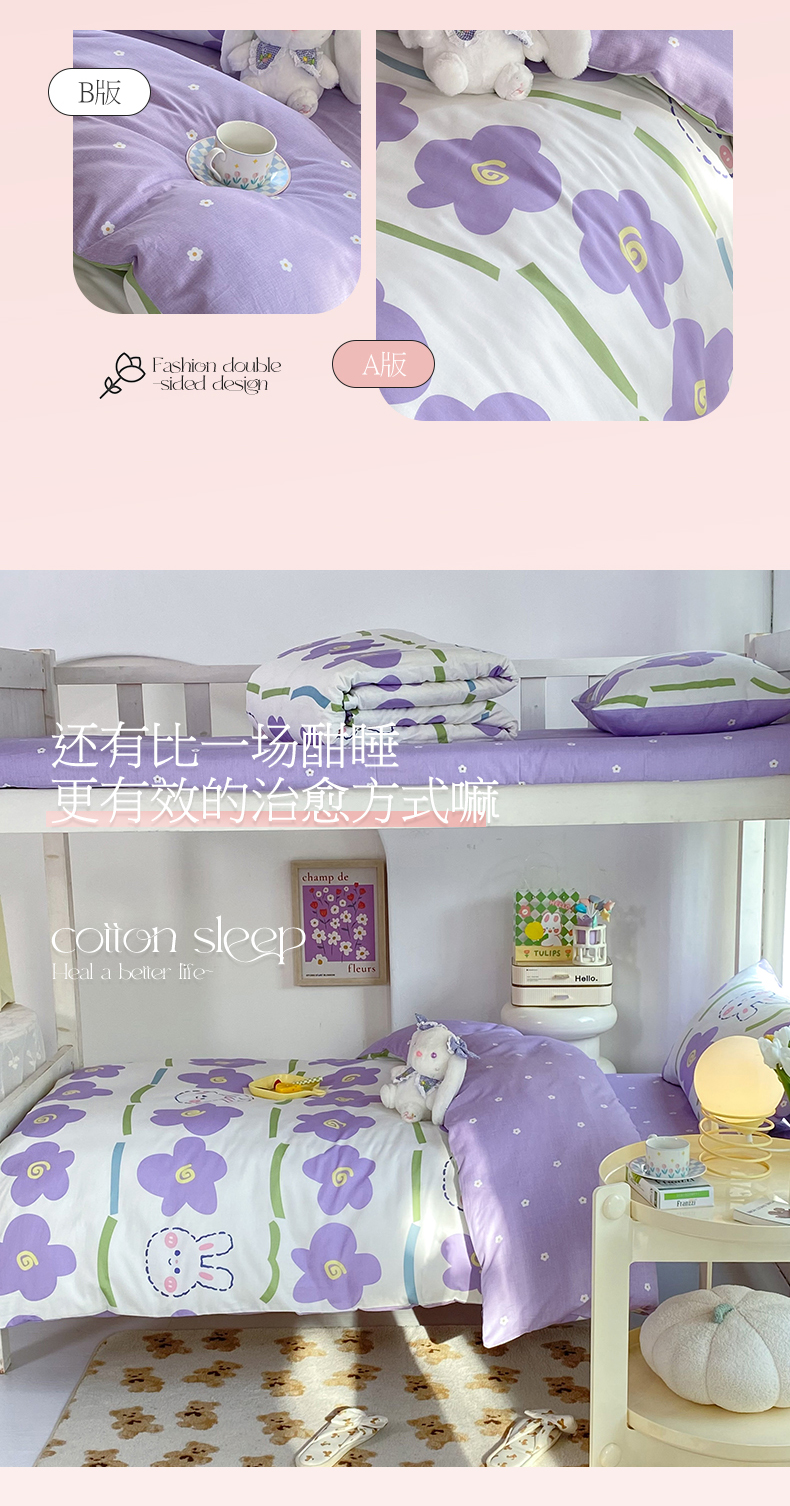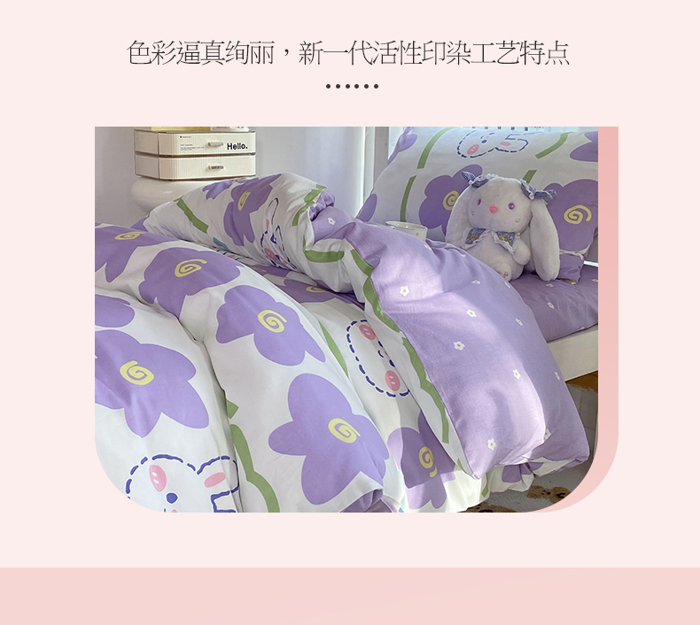 多品 2023年13070宿舍三件套 花兔情缘紫