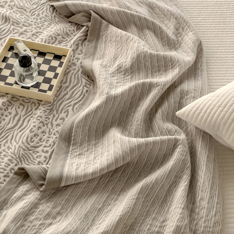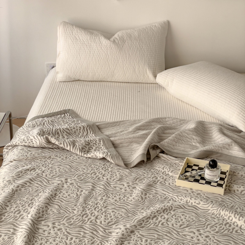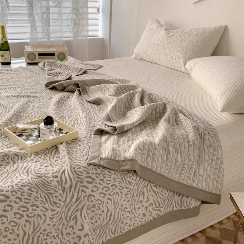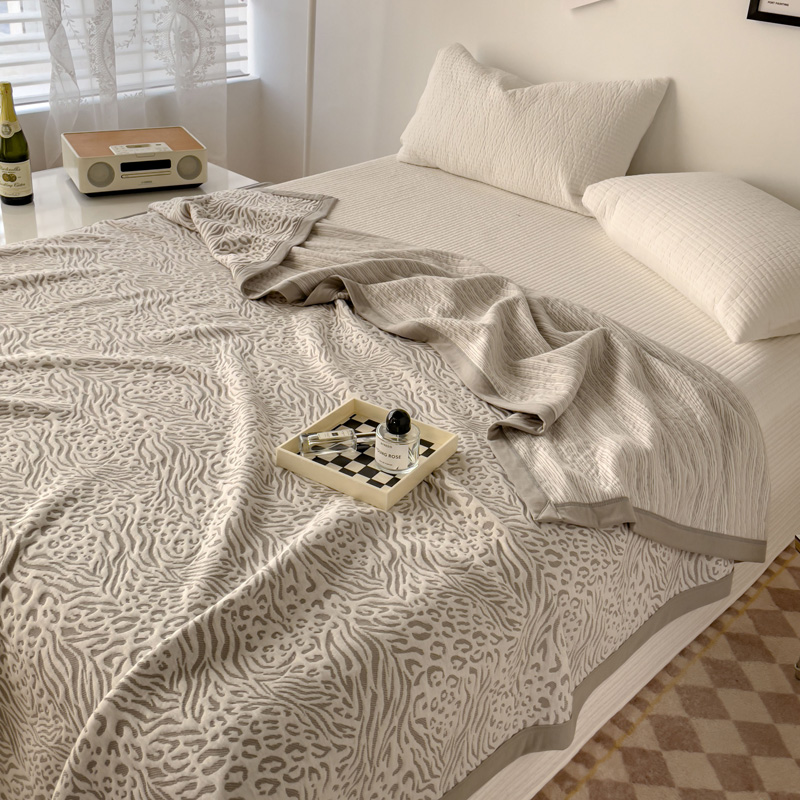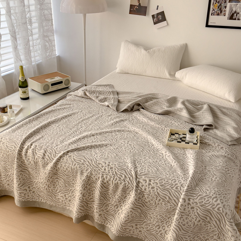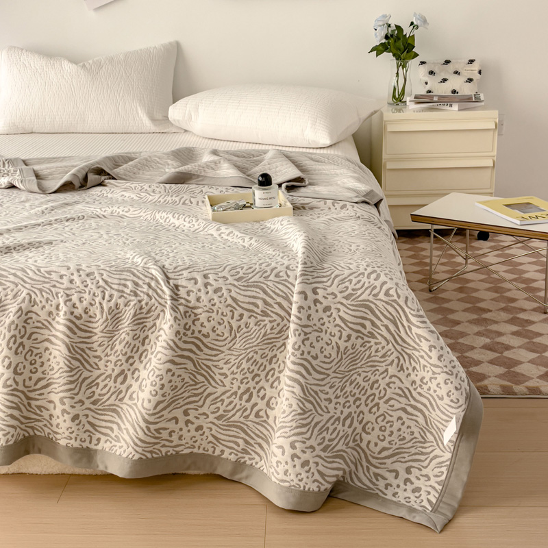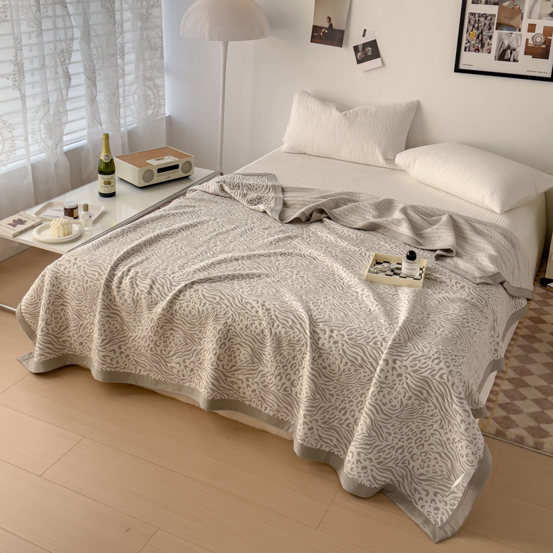 爱丽丝 2023新款A类全棉针织提花夏被多功能盖毯 灰色豹纹