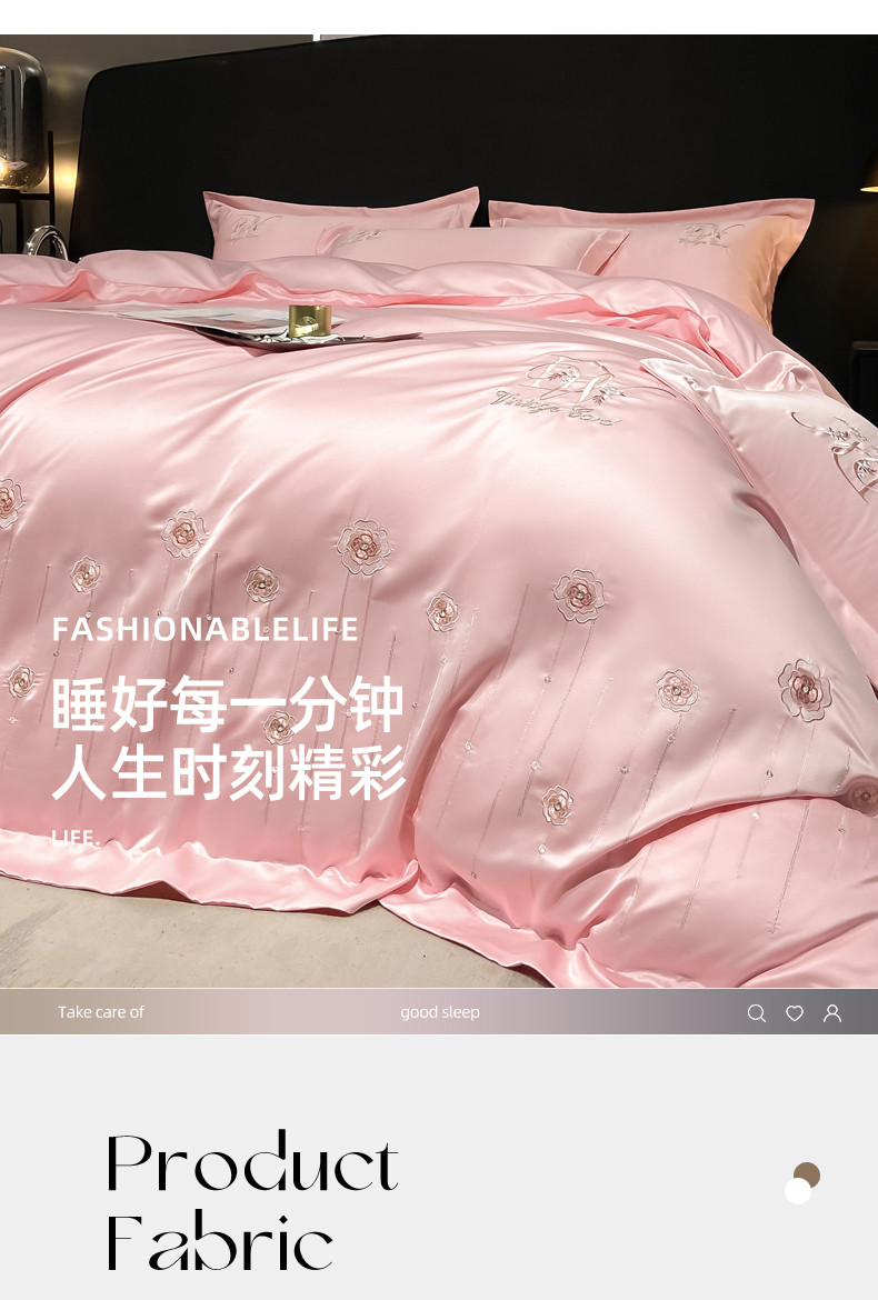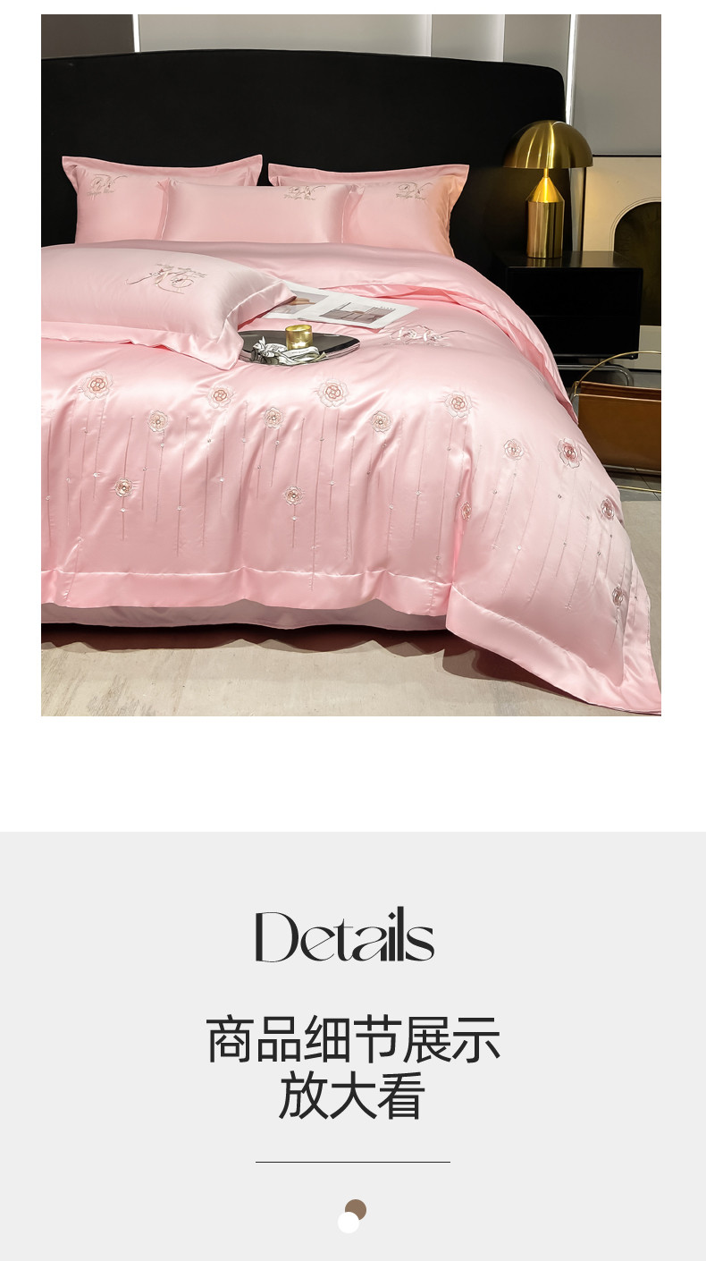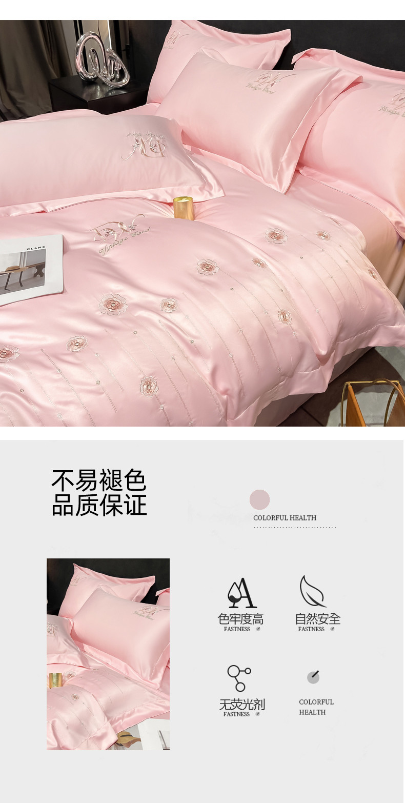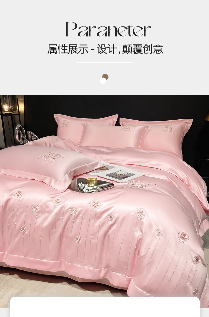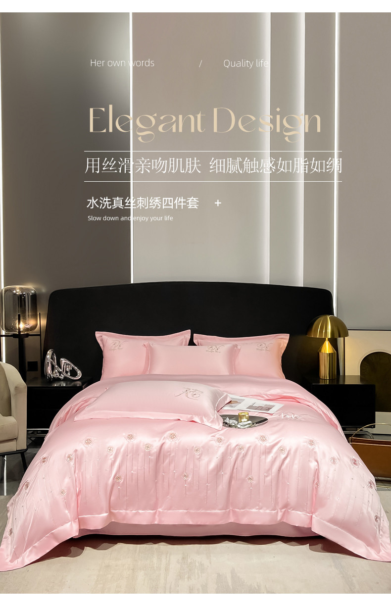 商品名称:丝印良品 2023新款水洗真丝刺绣轻奢爱媛系列四件套 爱媛-樱花粉