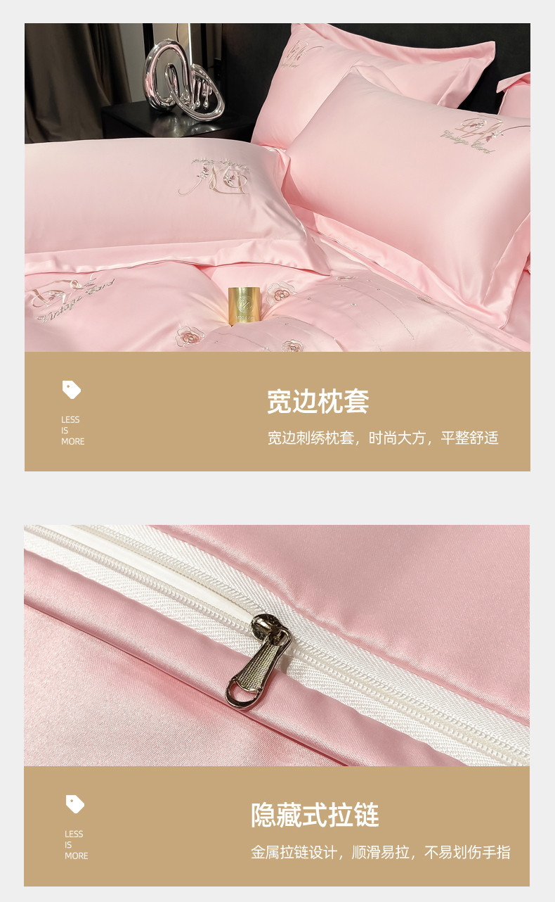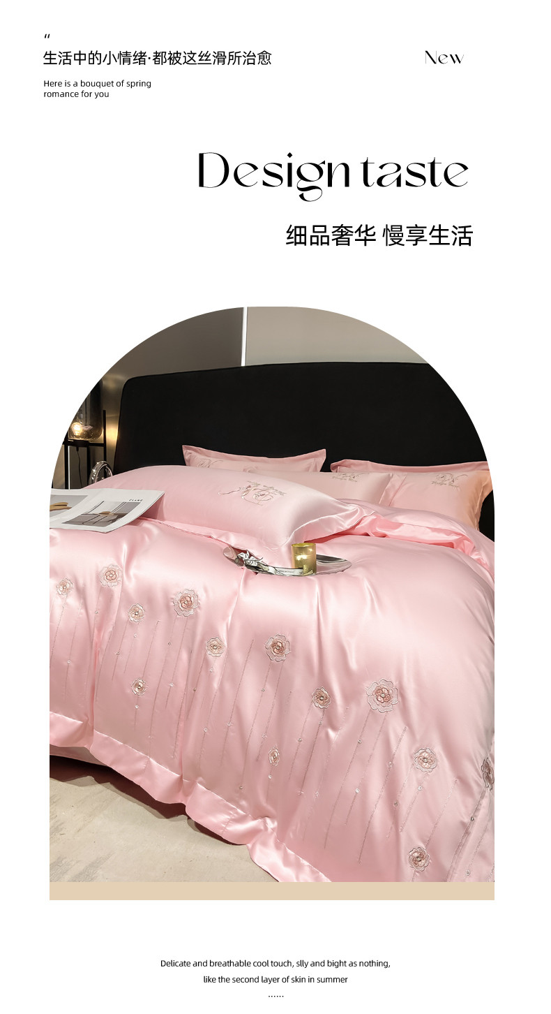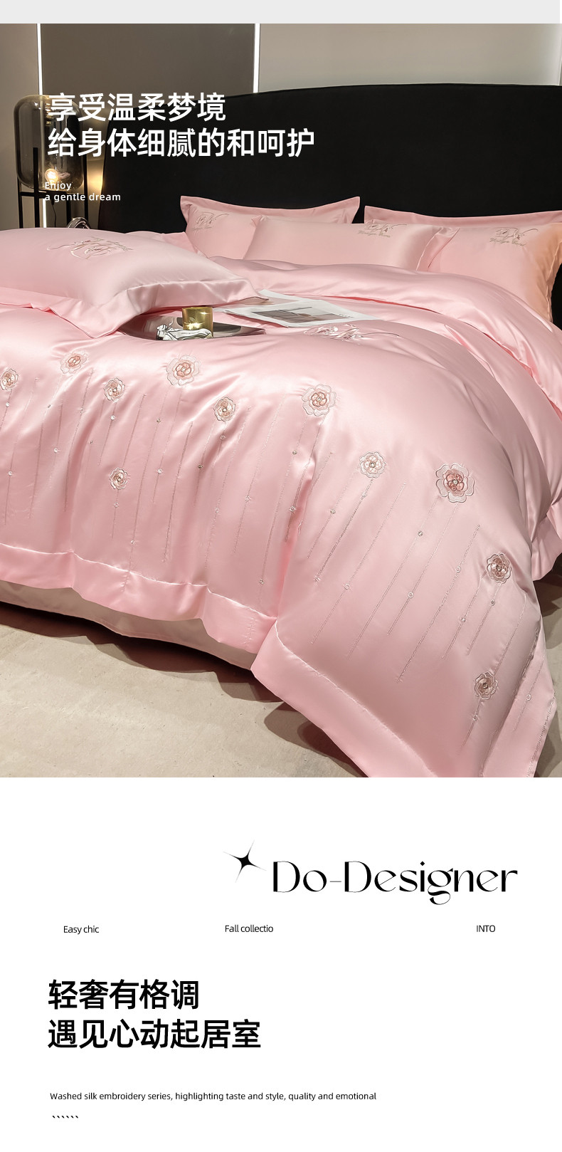 丝印良品 2023新款水洗真丝刺绣轻奢爱媛系列四件套 爱媛-樱花粉