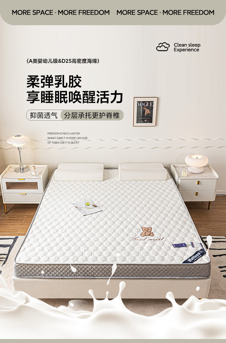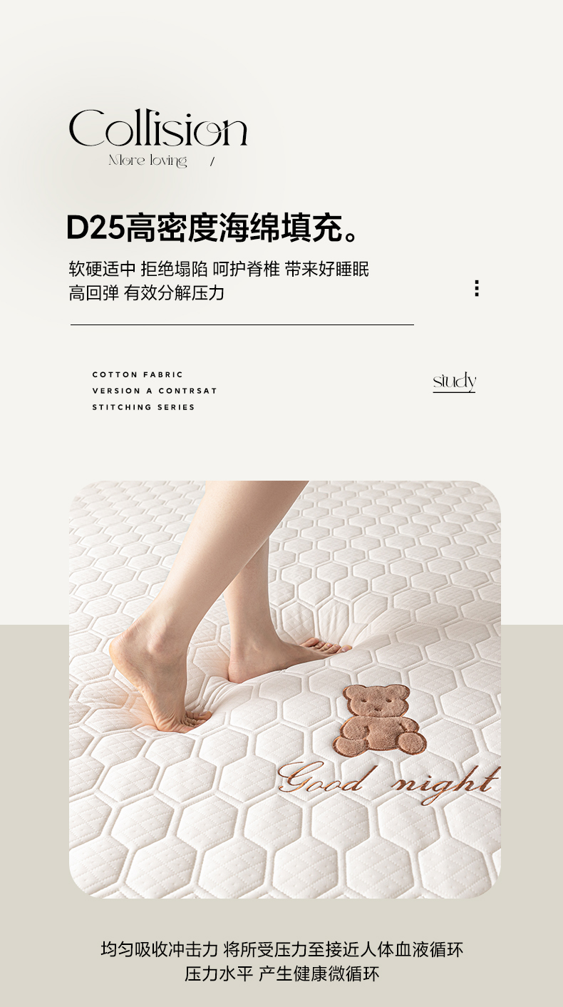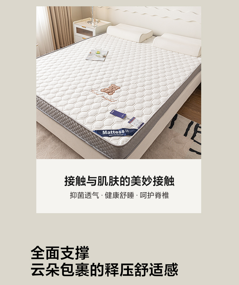 当前位置: 91家纺网 > 商品网购 > 床垫/床褥 > 普通床垫 > 元昊床垫 2025新款乳胶+D25高密度海绵床垫刺绣晚安小熊6公分9公分(永不塌陷)软硬适中 小熊高雅白(9cm)