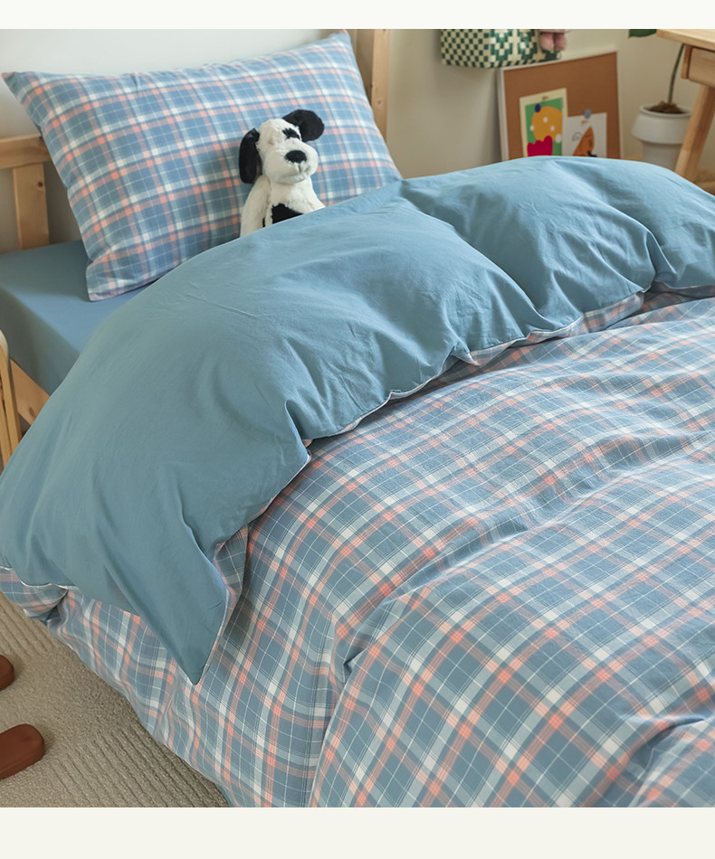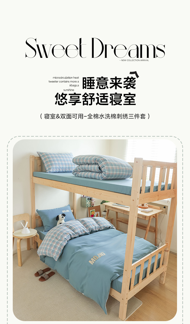 卡巴伦家纺 2023新款开学季纯棉A类水洗棉绣花款三件套 海洋蓝格