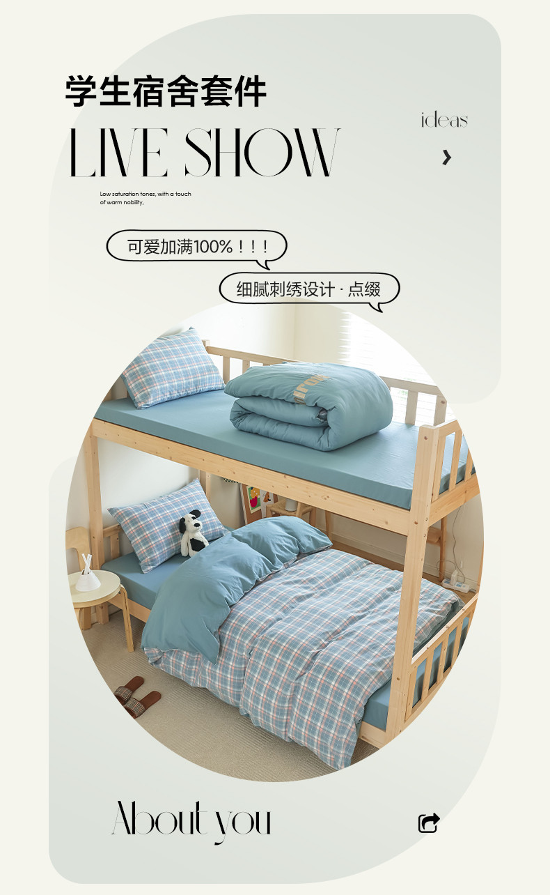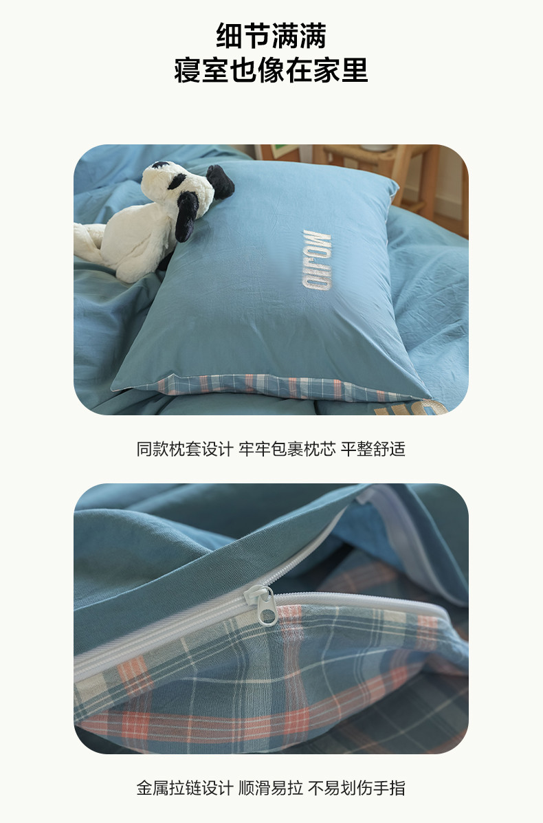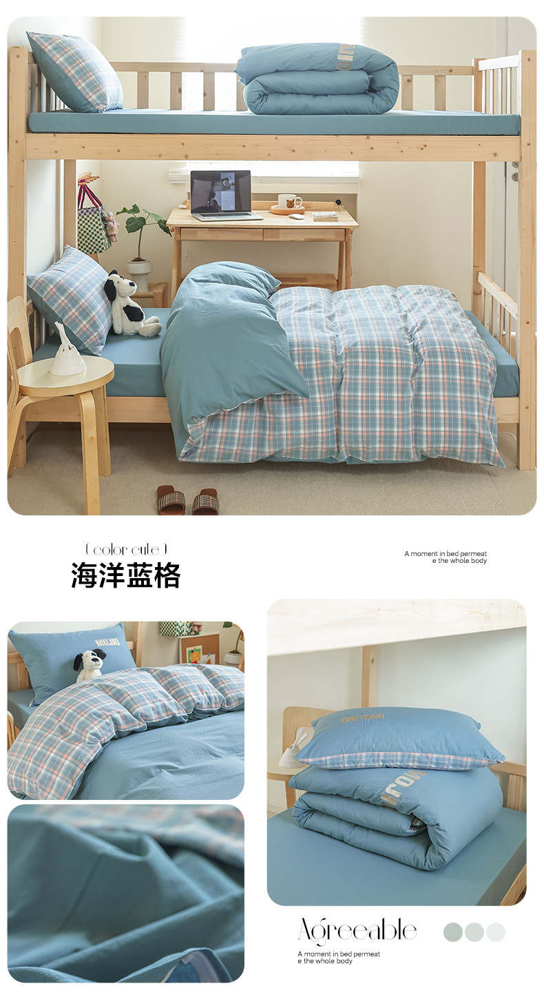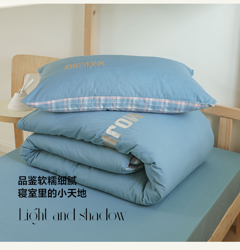 商品名称:卡巴伦家纺 2023新款开学季纯棉A类水洗棉绣花款三件套 海洋蓝格