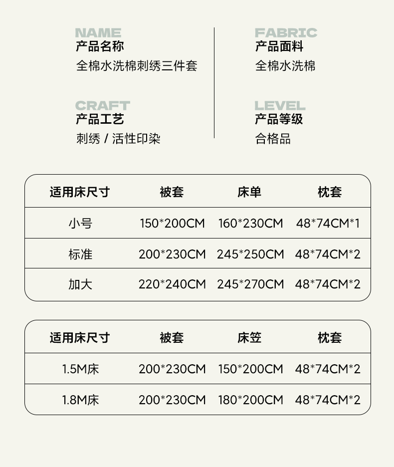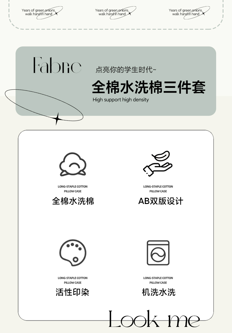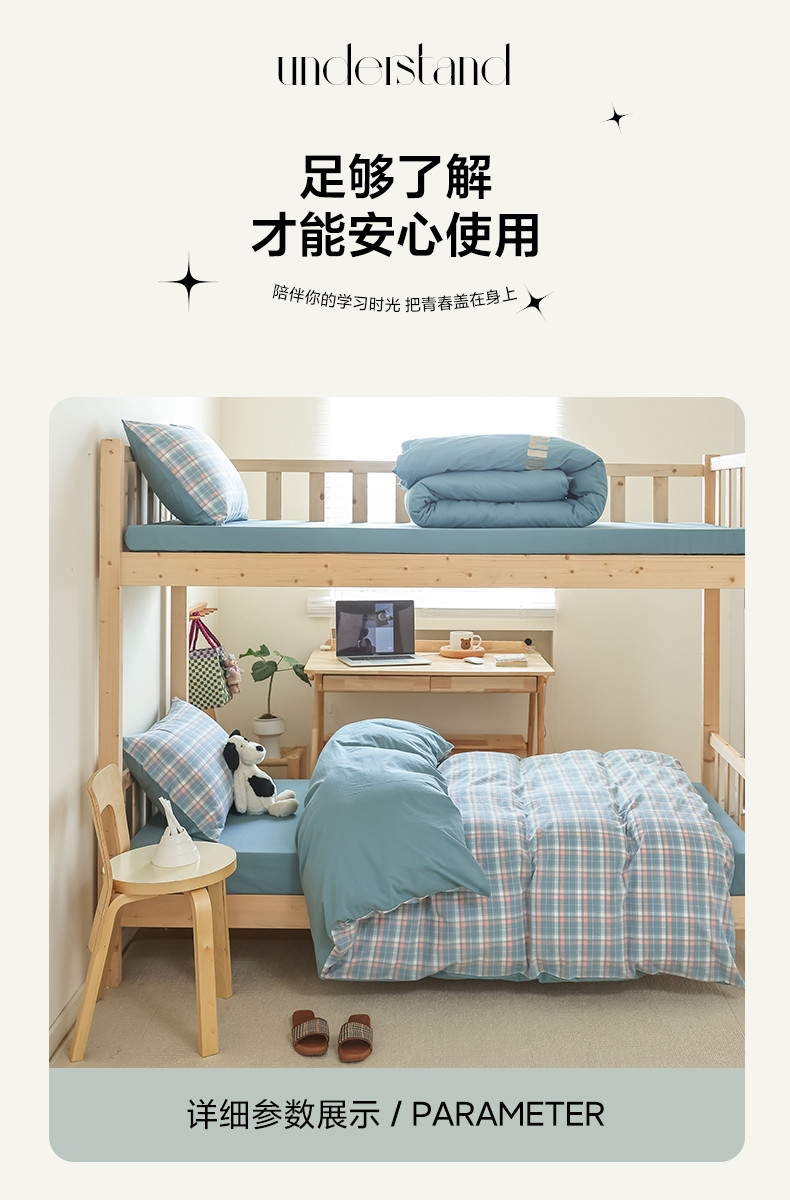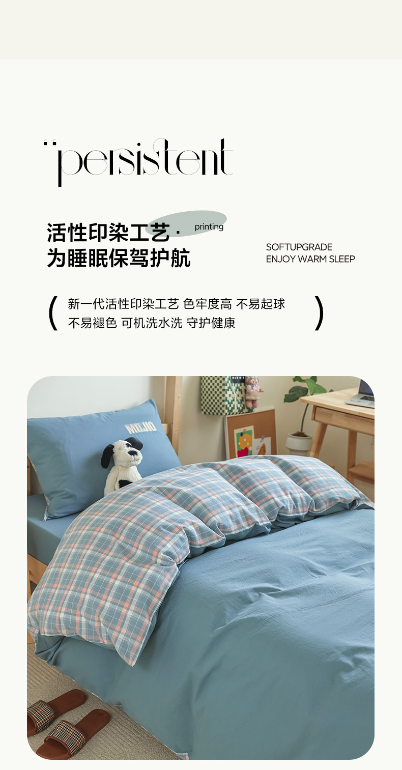 商品名称:卡巴伦家纺 2023新款开学季纯棉A类水洗棉绣花款三件套 海洋蓝格
