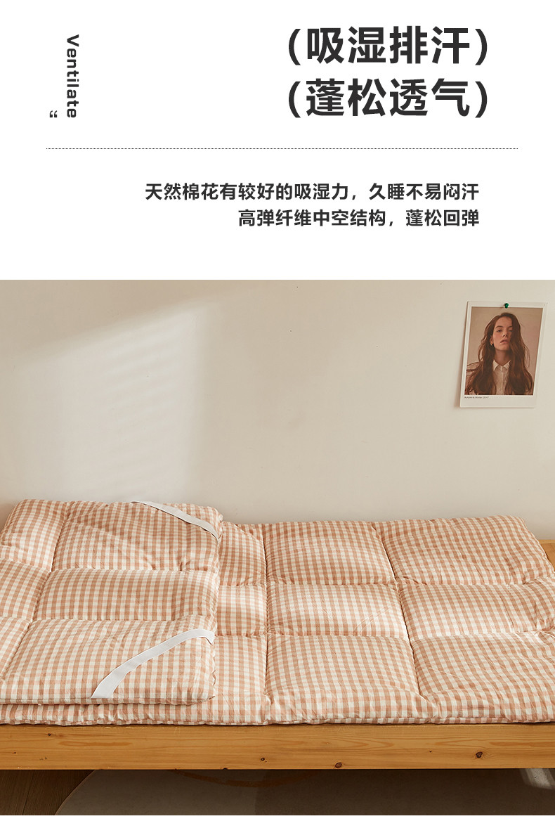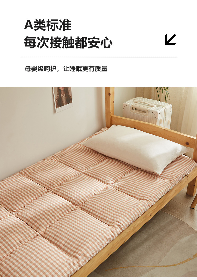 商品名称:暖阳 2025新款A类新疆棉花学生宿舍床垫 粉玉小格