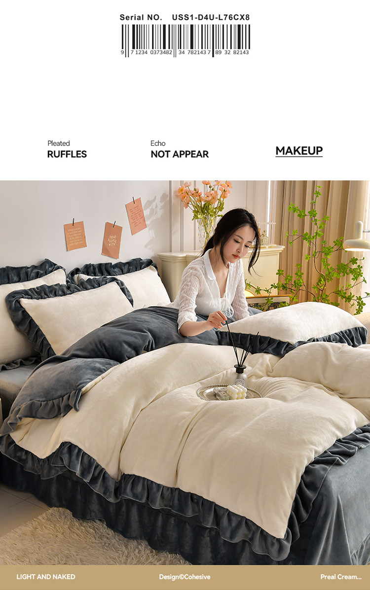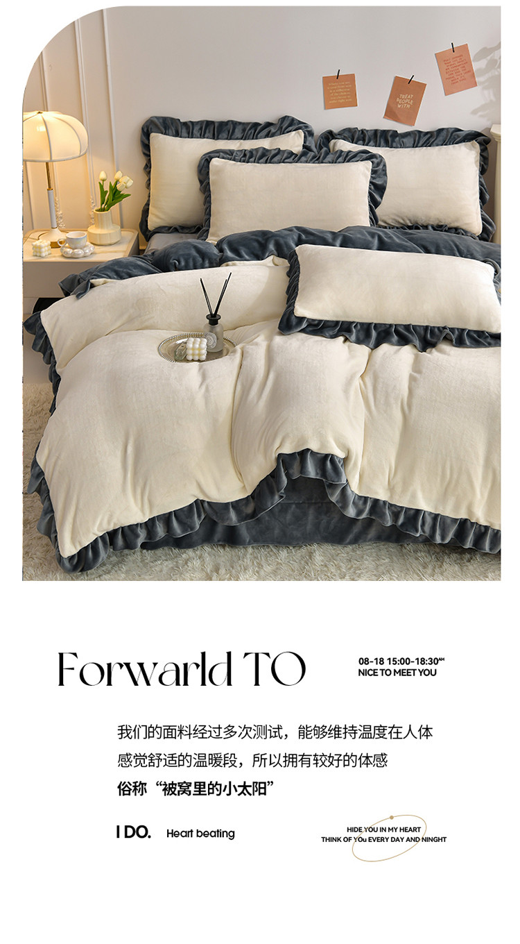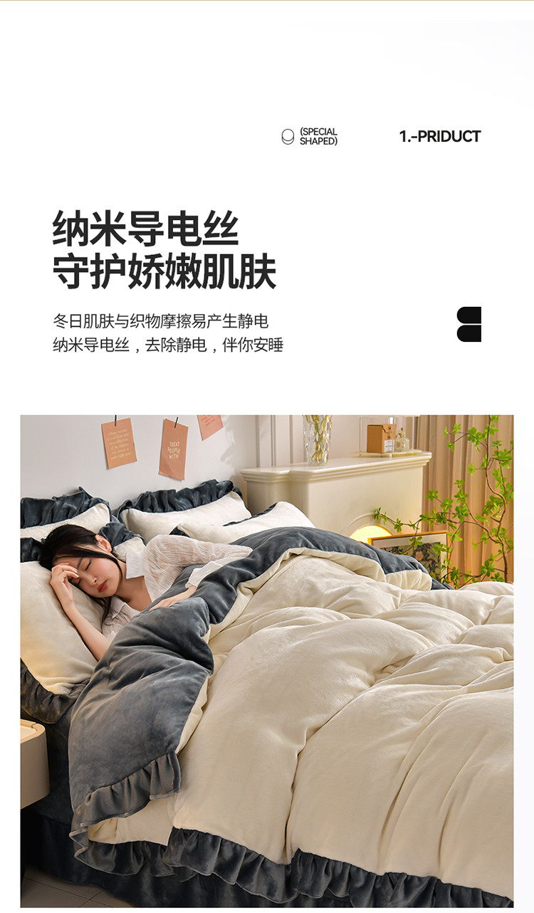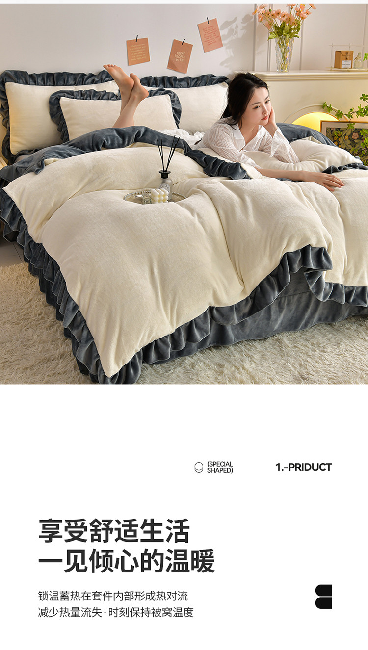 商品名称:妮恒美 2023新款韩版纯色牛奶绒四件套 奶白+深灰