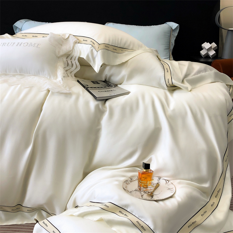 商品名称:馨蕊 2023秋冬新品100支高定轻奢风四件套-棉缪系列 棉缪-月光白