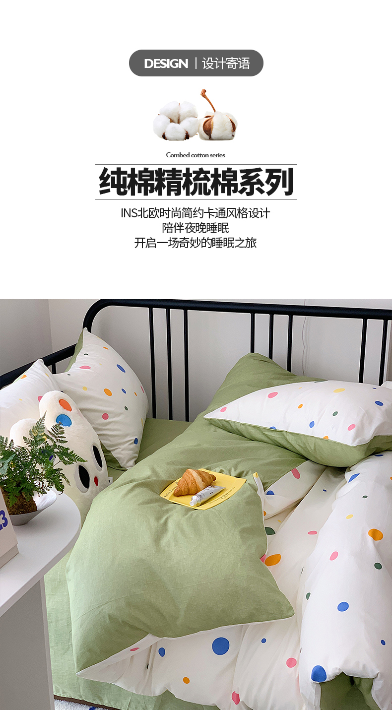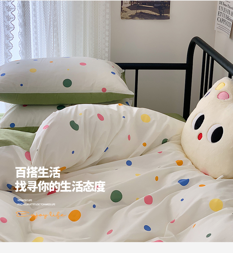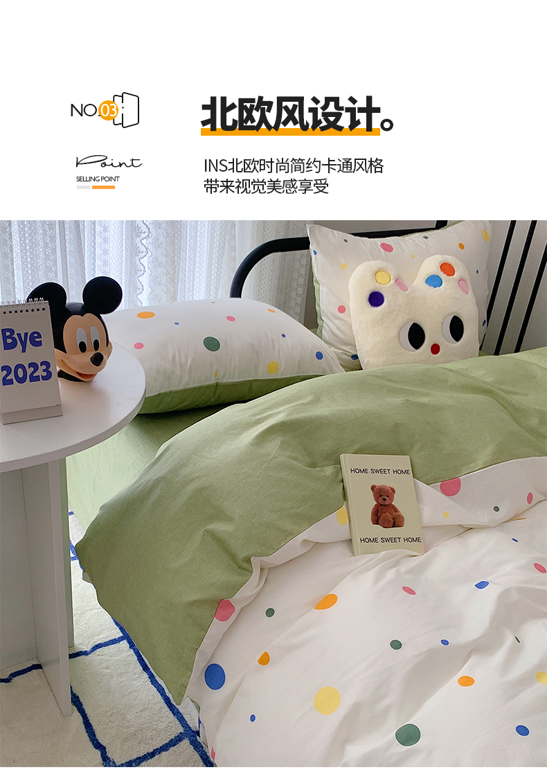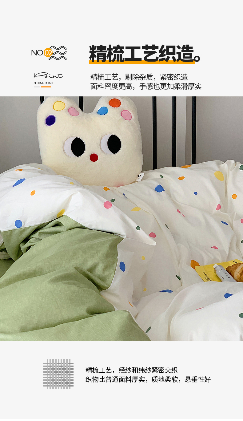 商品名称:桃子家居 2023新款ins北欧时尚简约卡通纯棉四件套系列 棉-彩色泡泡