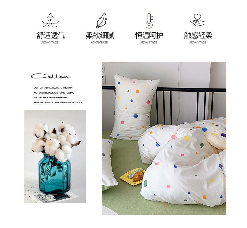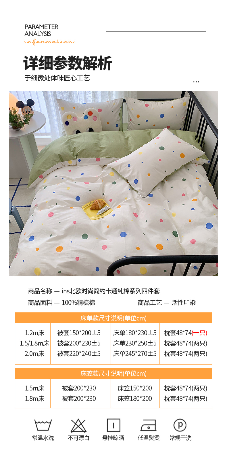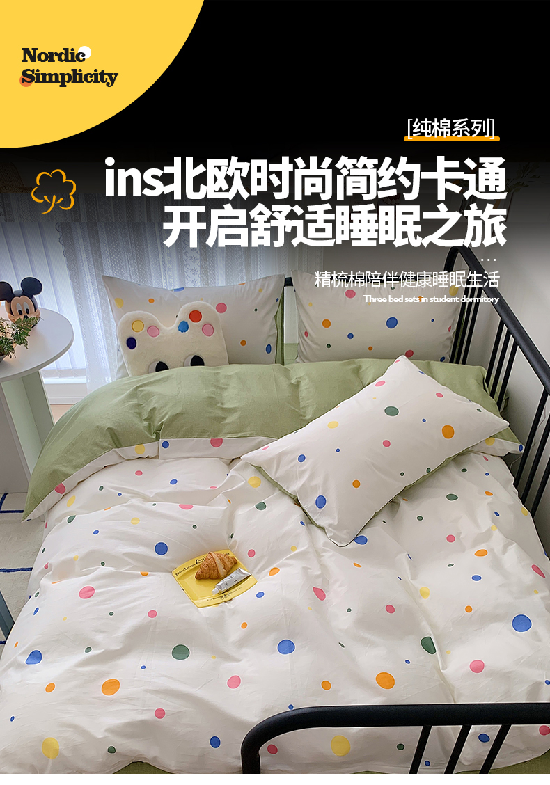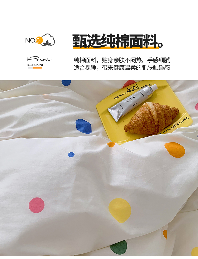 商品名称:桃子家居 2023新款ins北欧时尚简约卡通纯棉四件套系列 棉-彩色泡泡