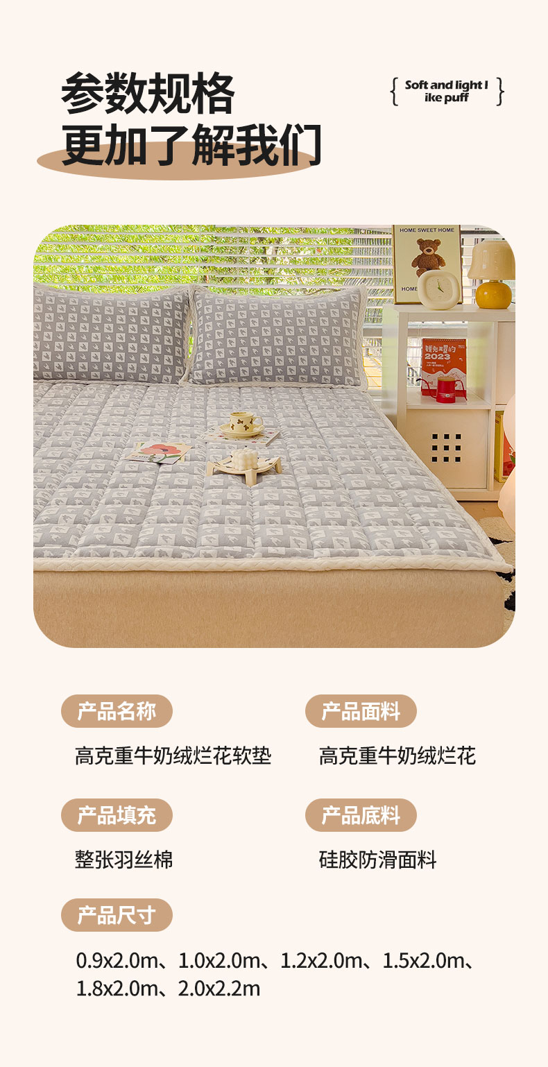 商品名称:米帛 2023新款牛奶绒烂花软垫 千鸟格灰