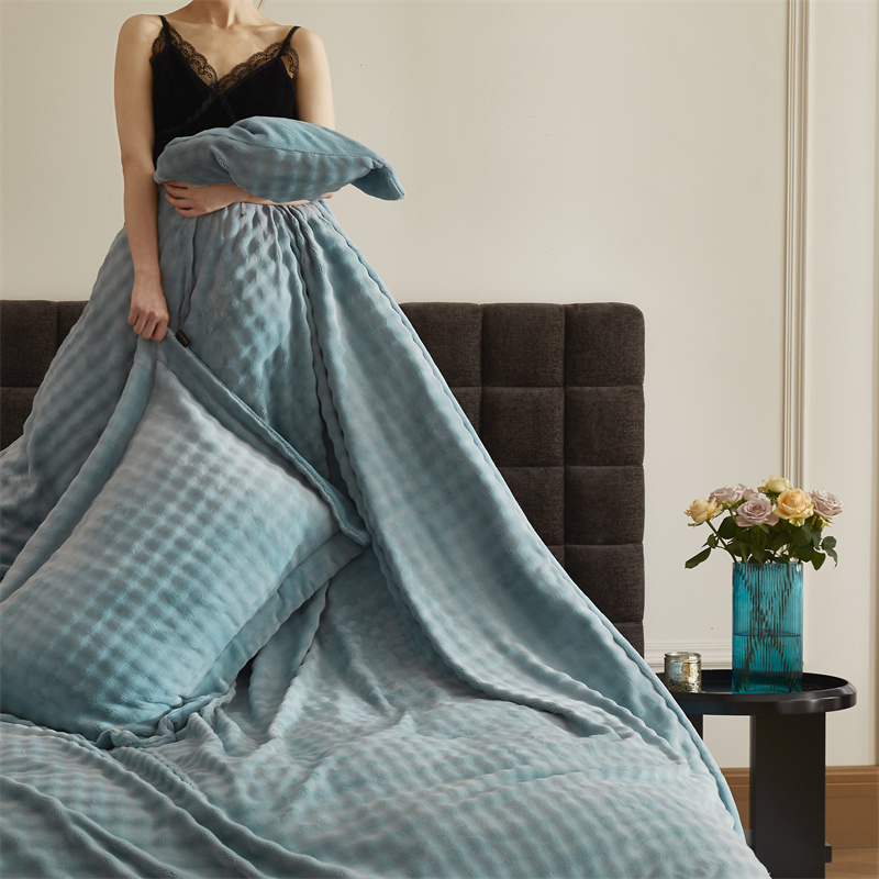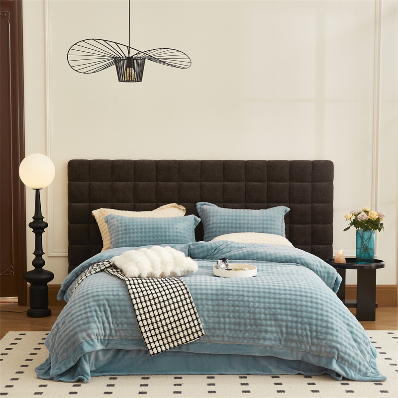 新月家纺 2024新款保暖简约牛奶绒托斯塞纳四件套 托斯塞纳+绅士蓝