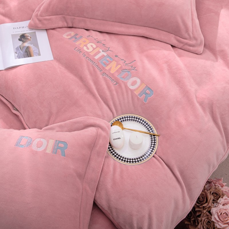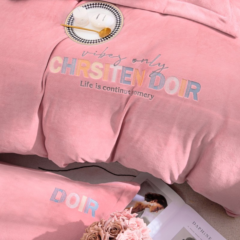 (总)绒博士 2025新款270克牛奶绒双拼角刺绣宽边款四件套--维也纳系列,维也纳-粉豆沙,维也纳-果绿,维也纳-浅咖,维也纳-浅蓝