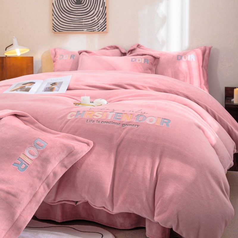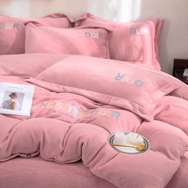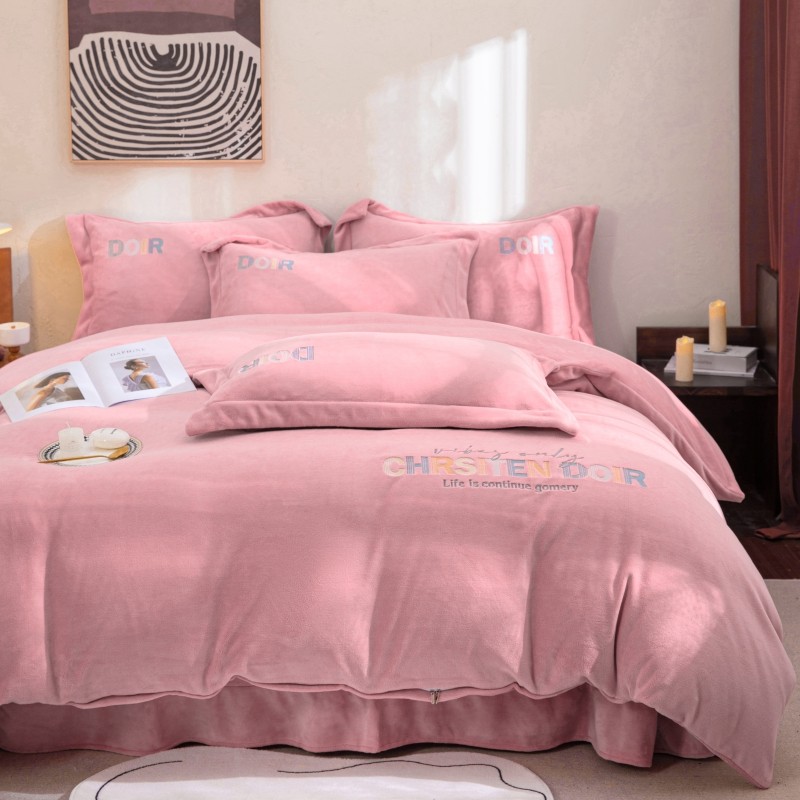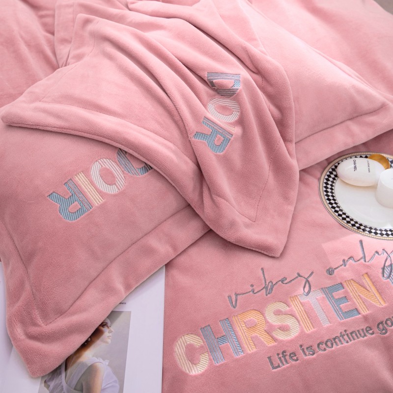 绒博士 2023新款舒适保暖220克牛奶绒四件套系列 罗拉 粉色