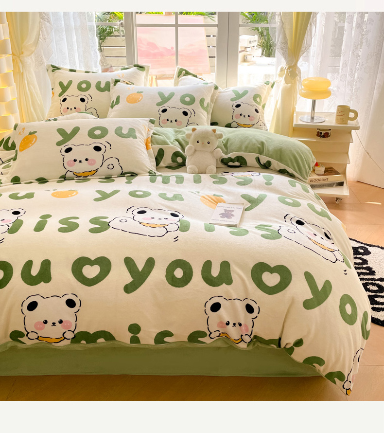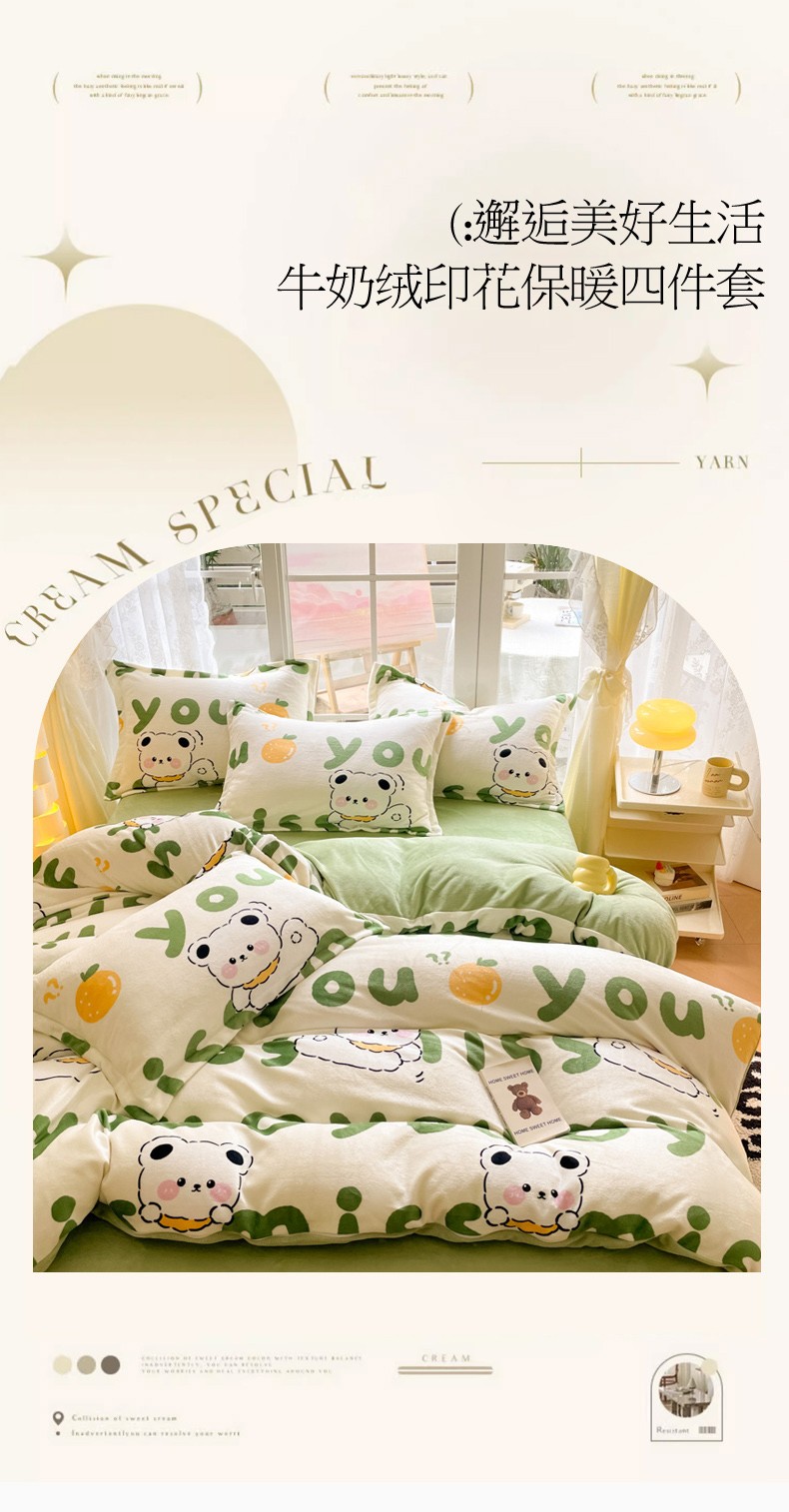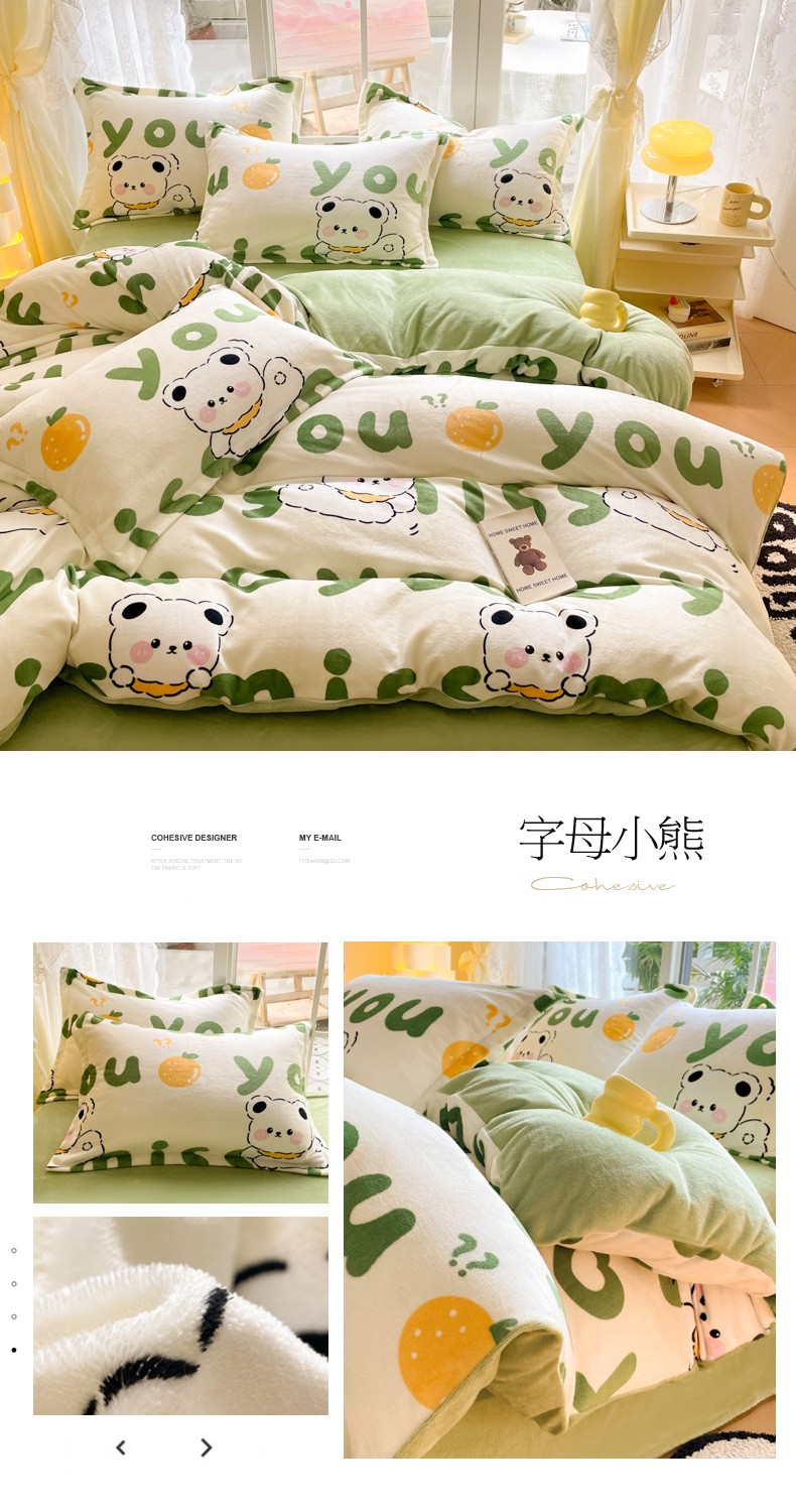 当前位置: 91家纺网 > 商品网购 > 床品套件 > 四件套 > 牛奶绒四件套 > 柒月 2023新款加厚牛奶绒四件套 字母小熊