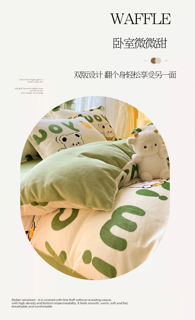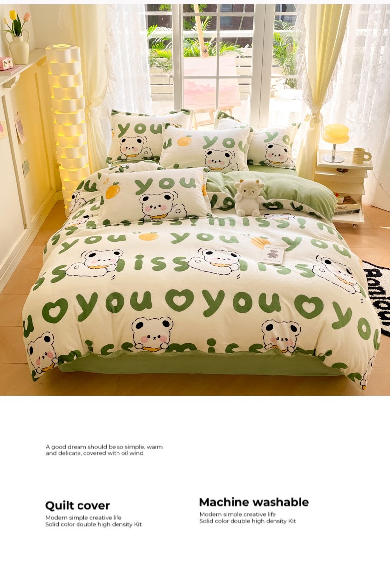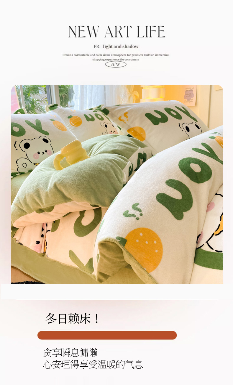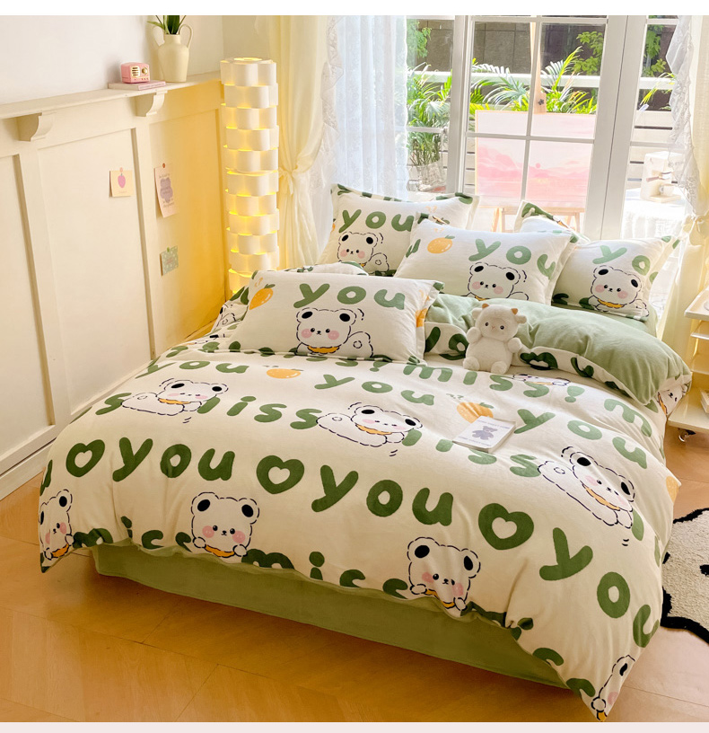 当前位置: 91家纺网 > 商品网购 > 床品套件 > 四件套 > 牛奶绒四件套 > 柒月 2023新款加厚牛奶绒四件套 字母小熊