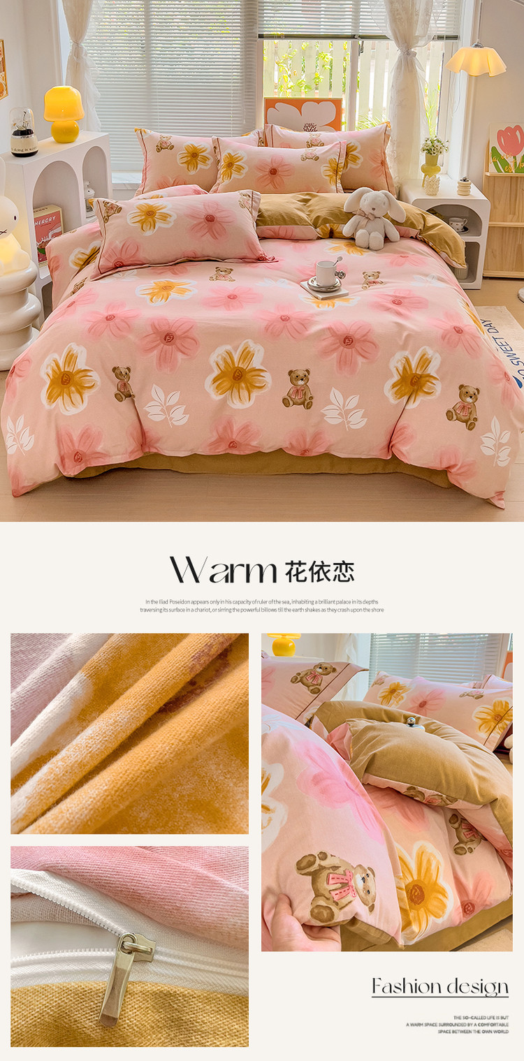 棉生活 2023新款铂金全棉磨毛系列(AB版)四件套 花依恋