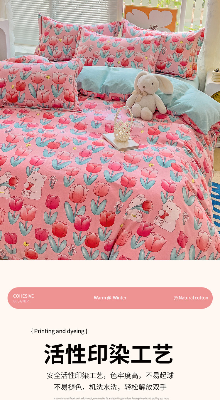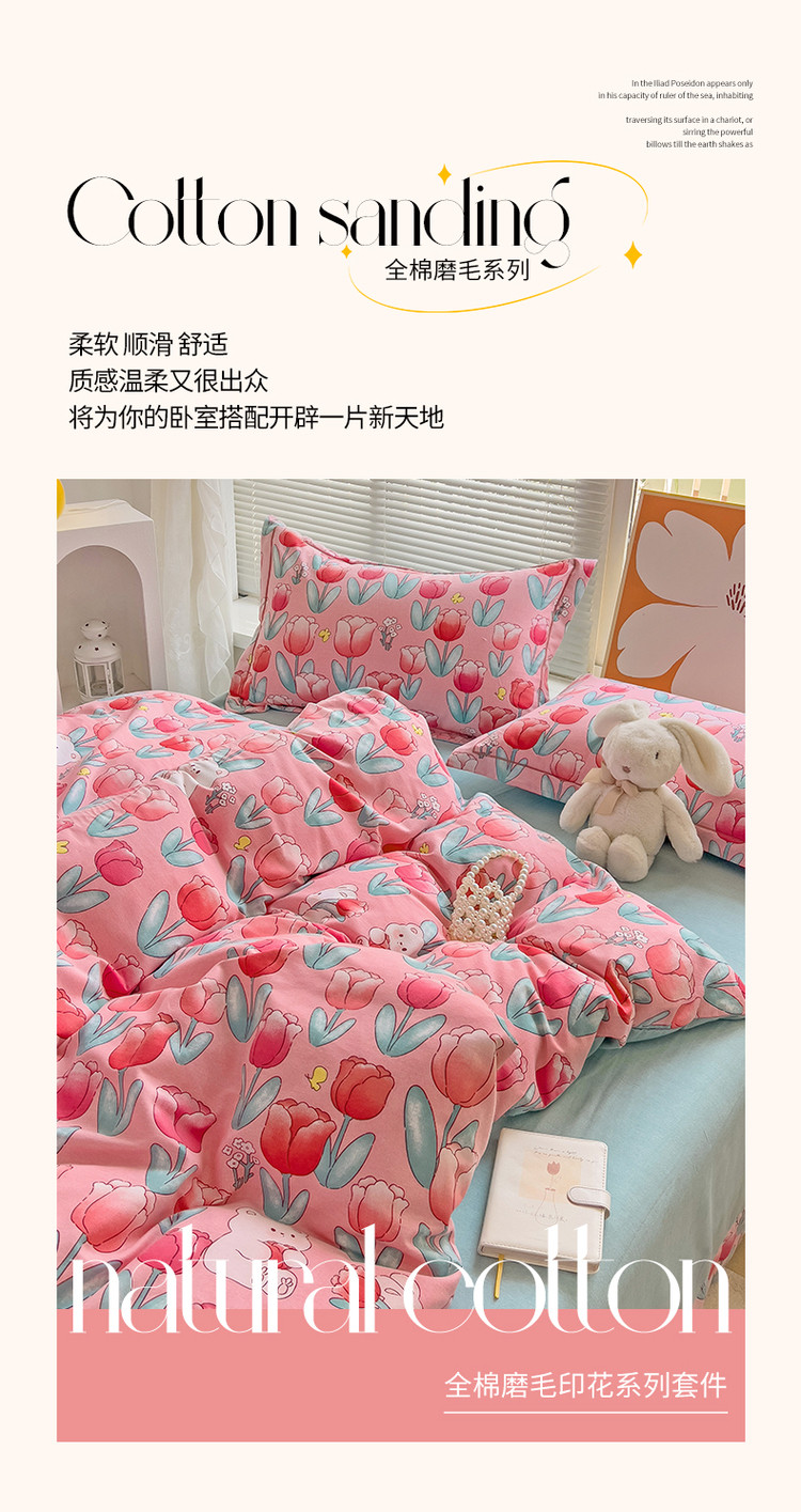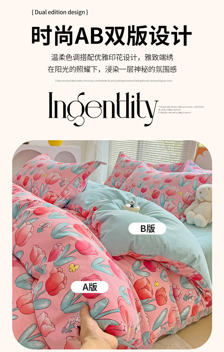 棉生活 2023新款铂金全棉磨毛系列(AB版)四件套 维拉的花季