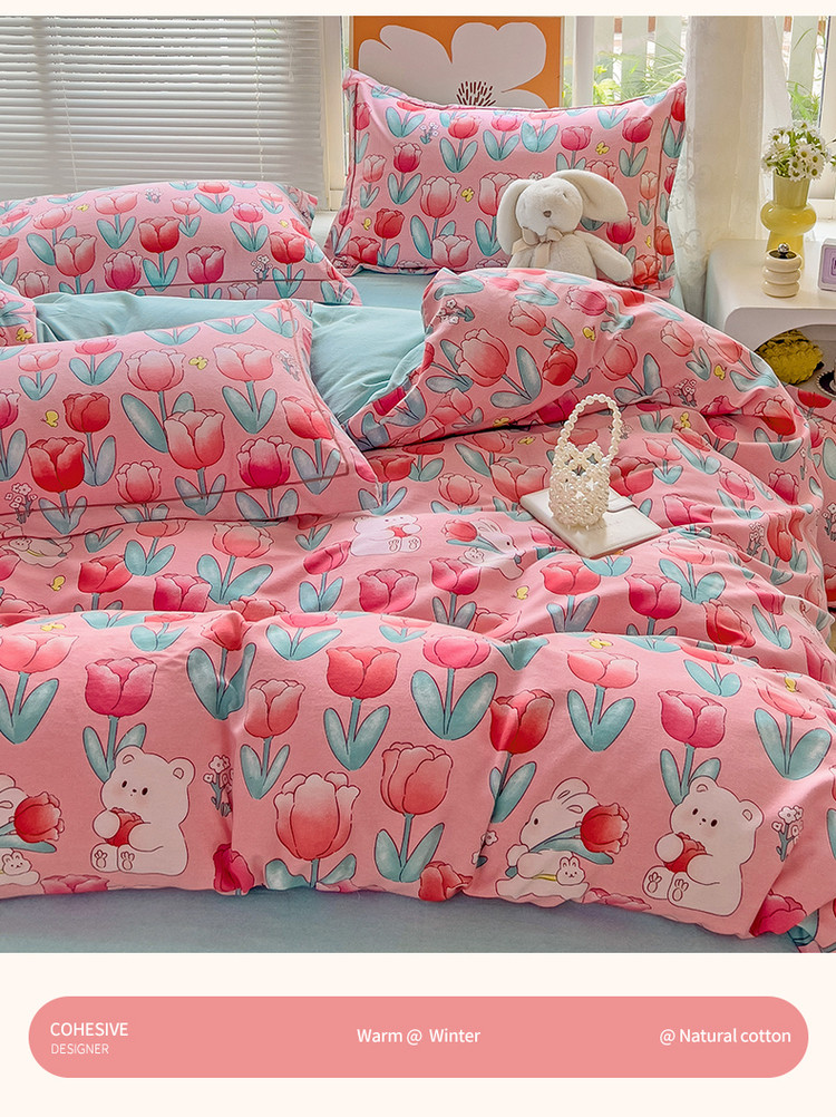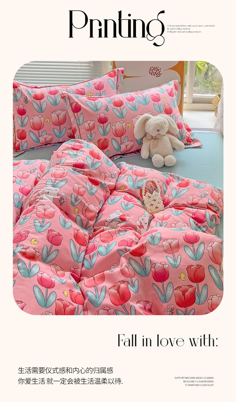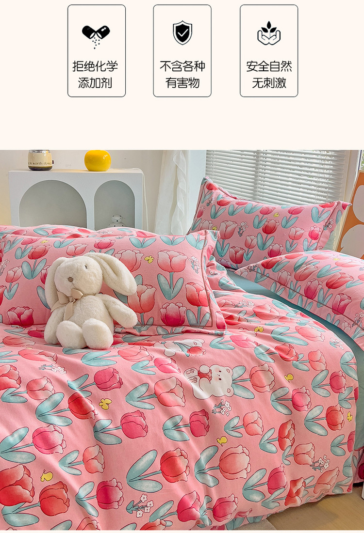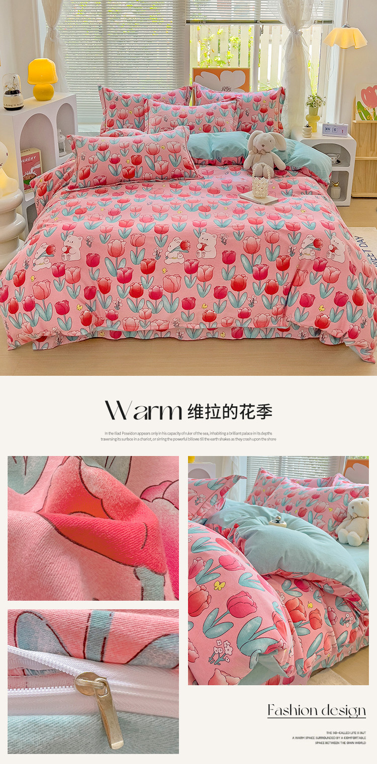 棉生活 2023新款铂金全棉磨毛系列(AB版)四件套 维拉的花季