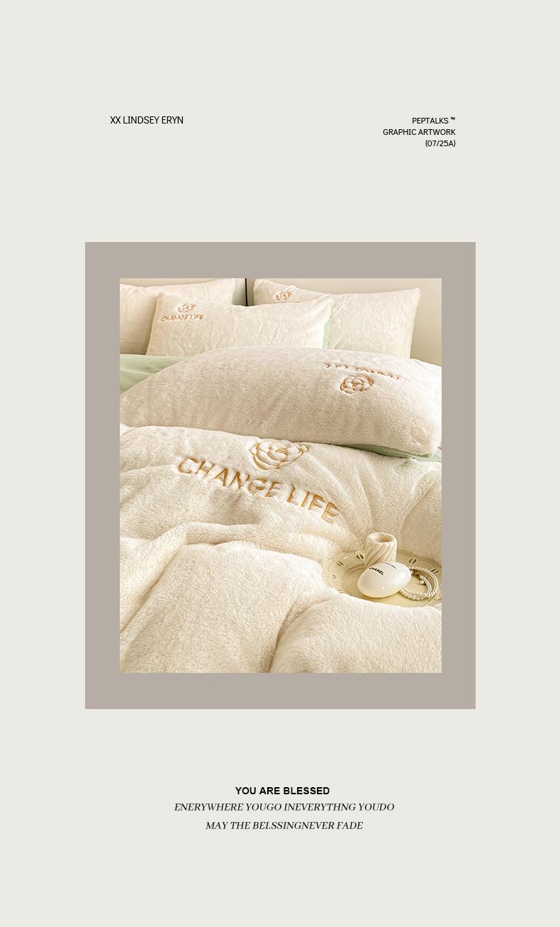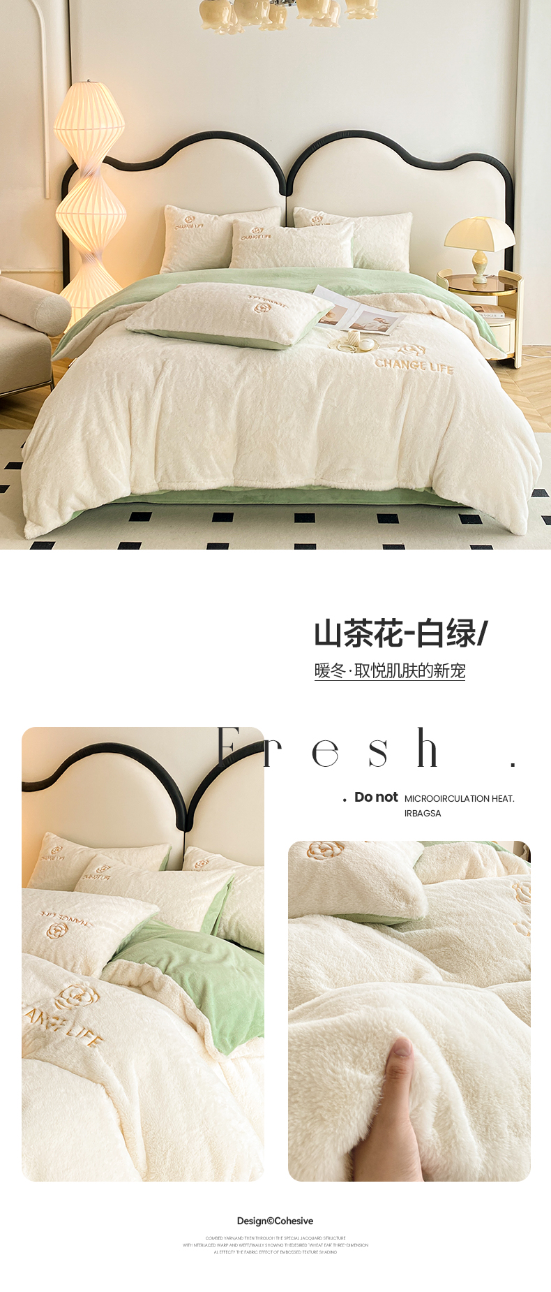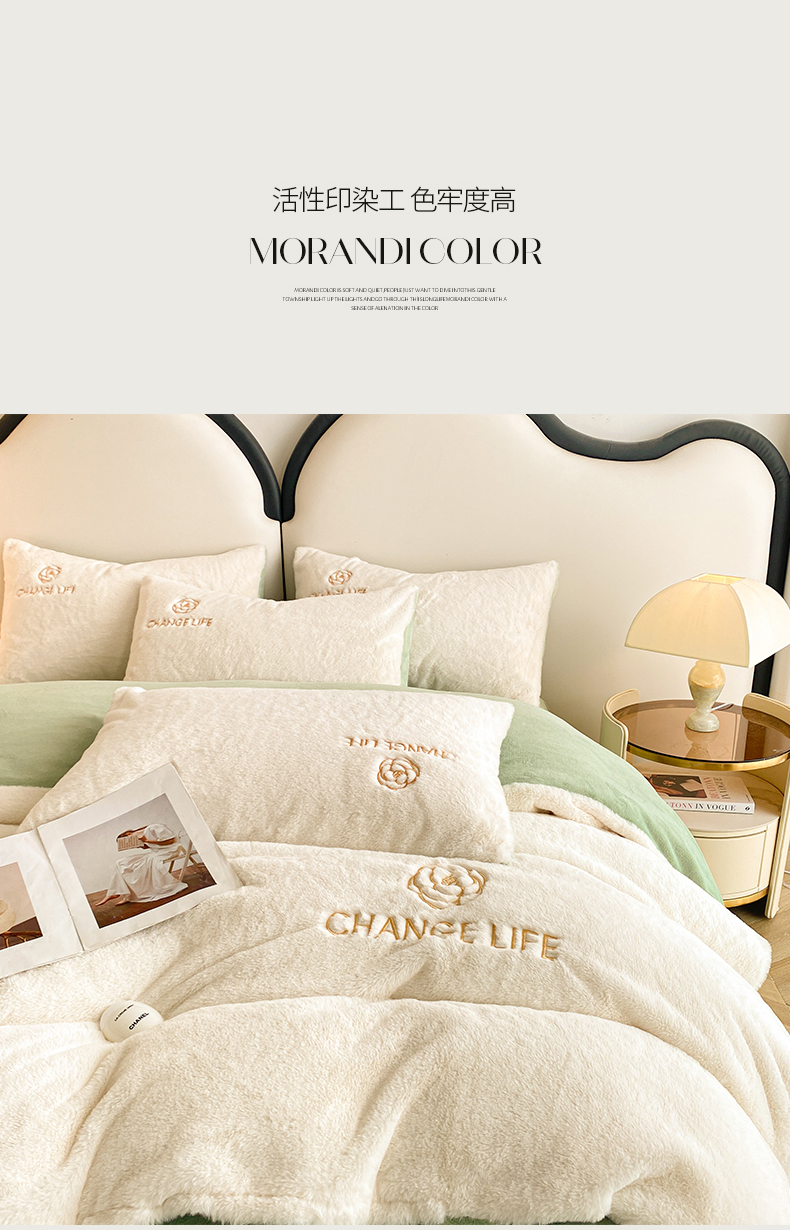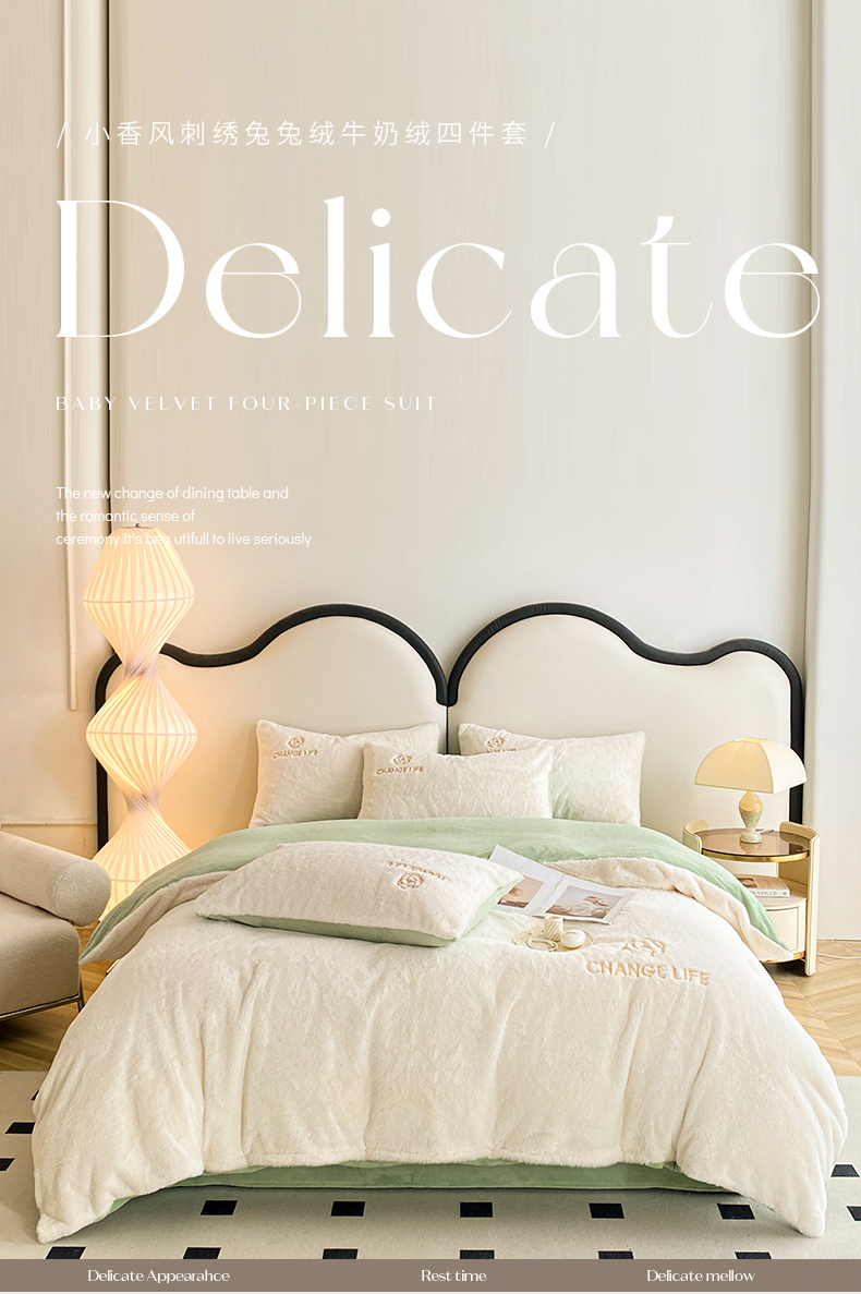 商品名称:澳梵 2023新款【山茶花】小香风刺绣兔兔绒牛奶绒四件 山茶花-白绿