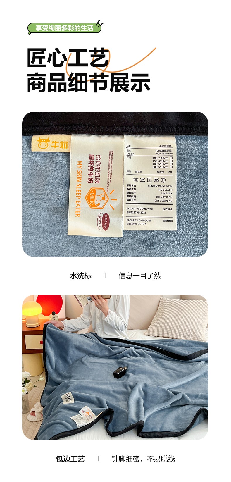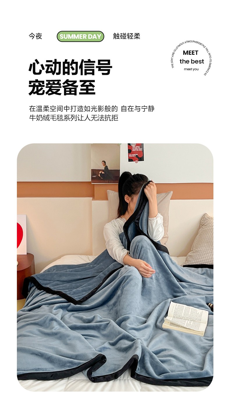 (总)穆琪 2025年新款牛奶绒盖毯 400克高克重云貂绒毛毯宽包边法莱绒毯子,薄荷绿,冰雪蓝,布丁黄,卡其,蓝灰,莫兰迪绿,天空蓝,烟灰,樱桃粉