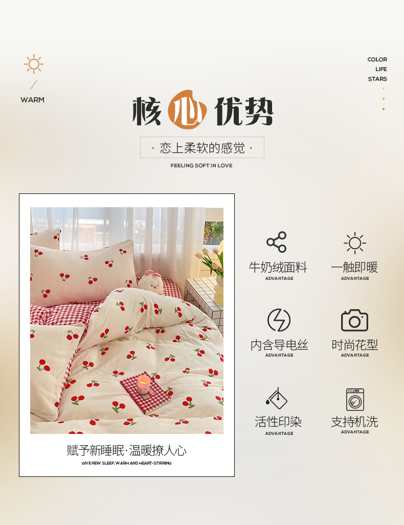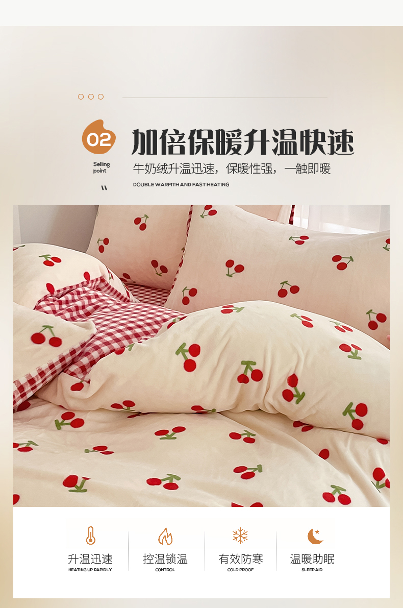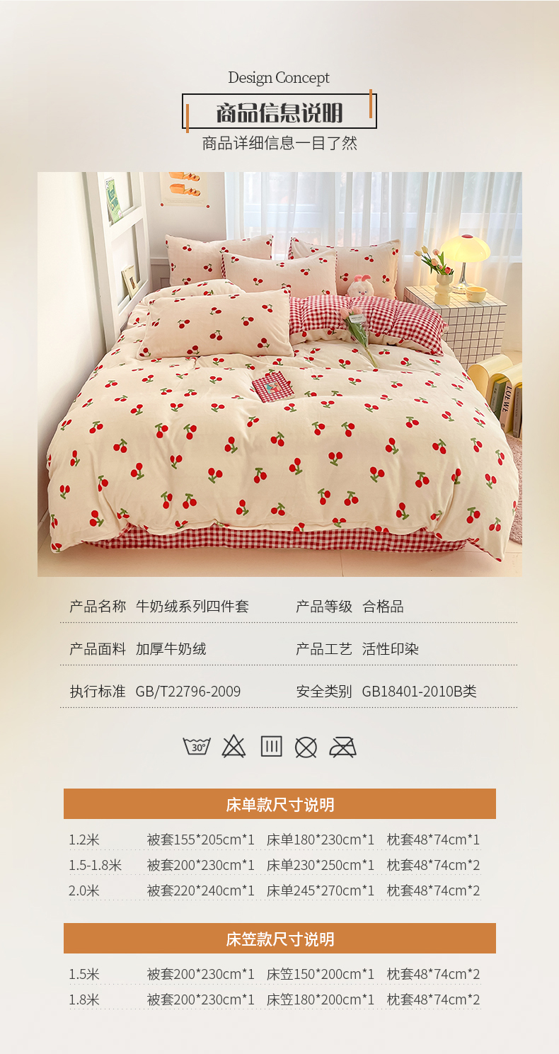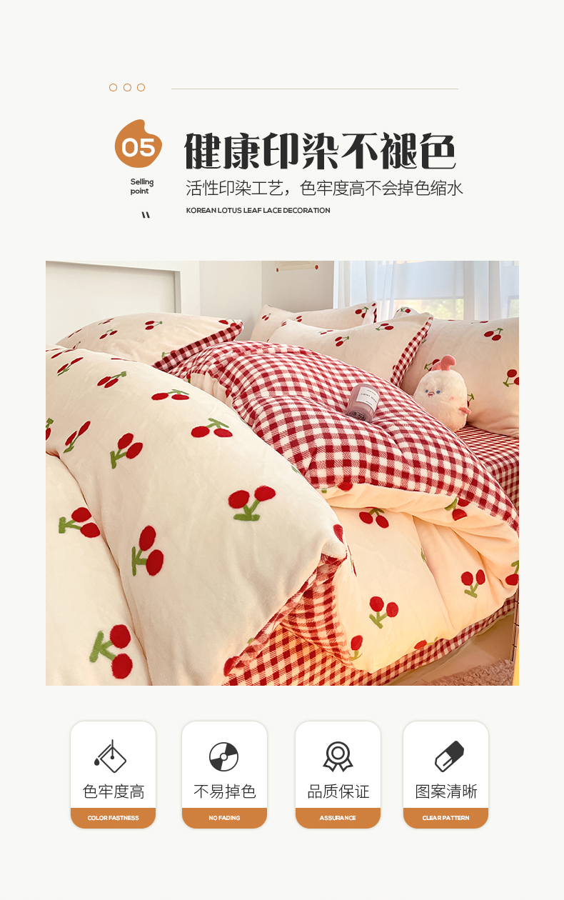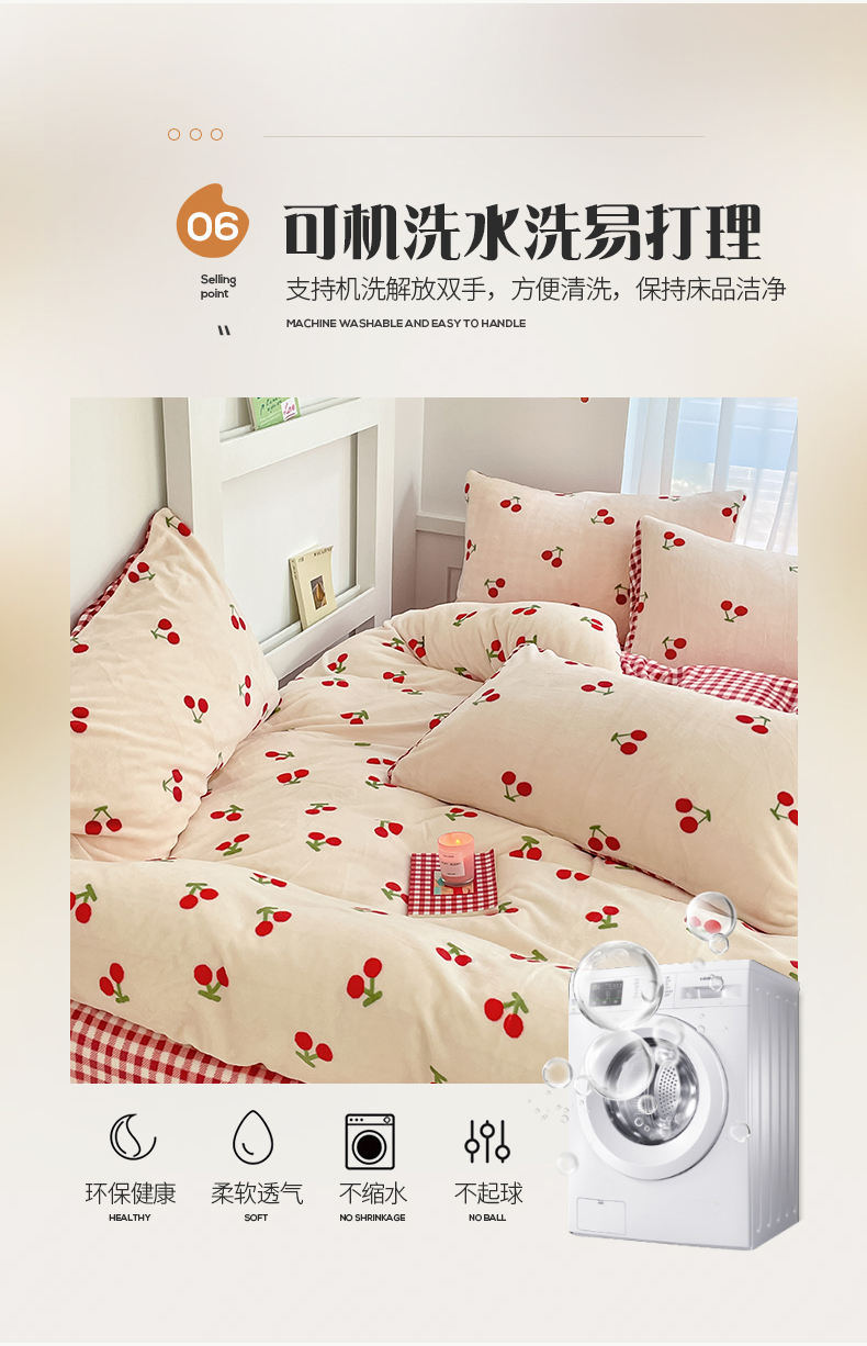 桃子 2023新款ins小清新韩系可爱卡通奶油兔子加厚牛奶绒系列四件套详情第三批 绒-红格樱桃