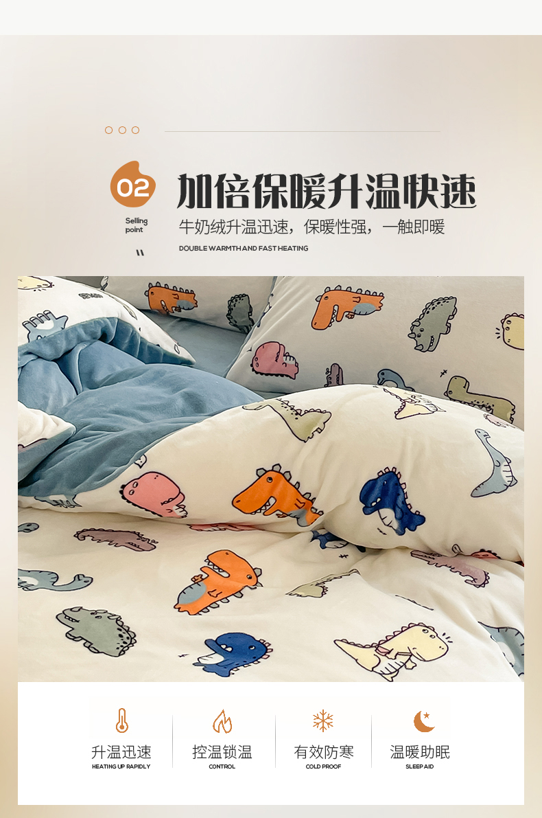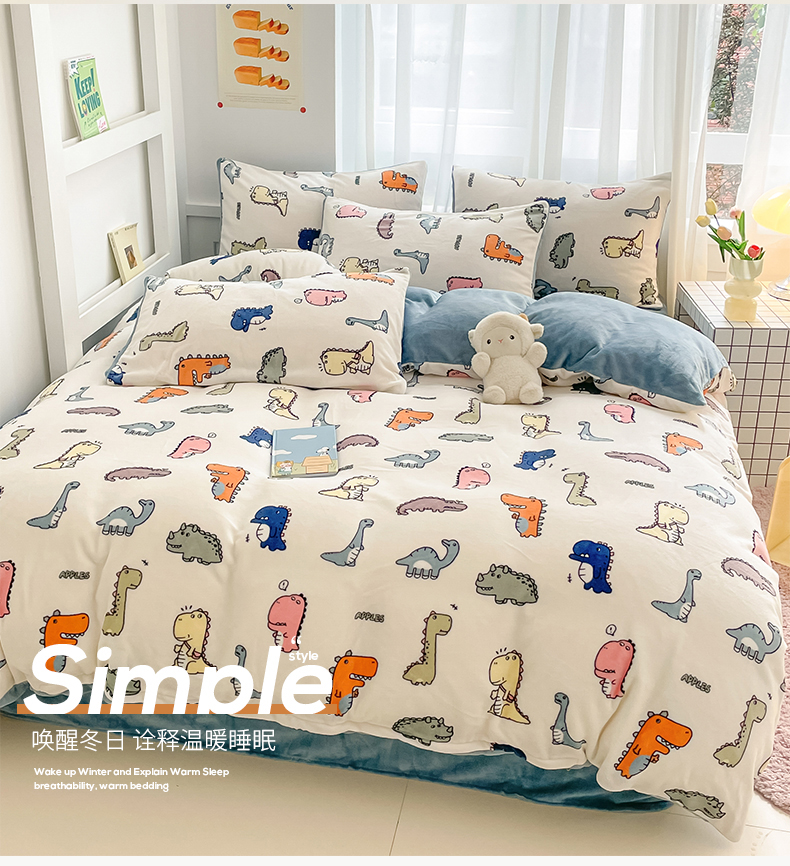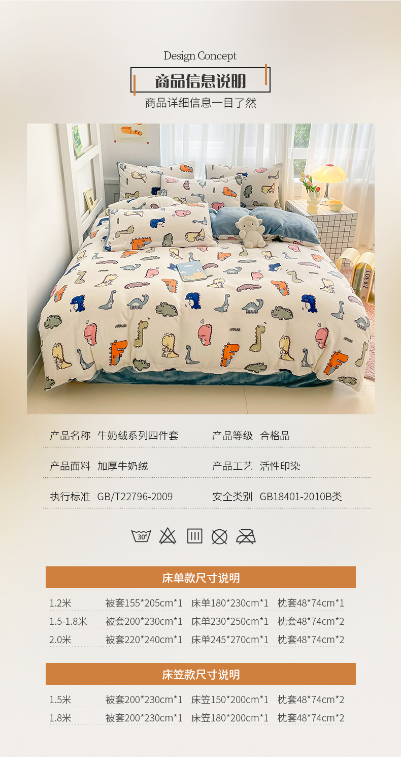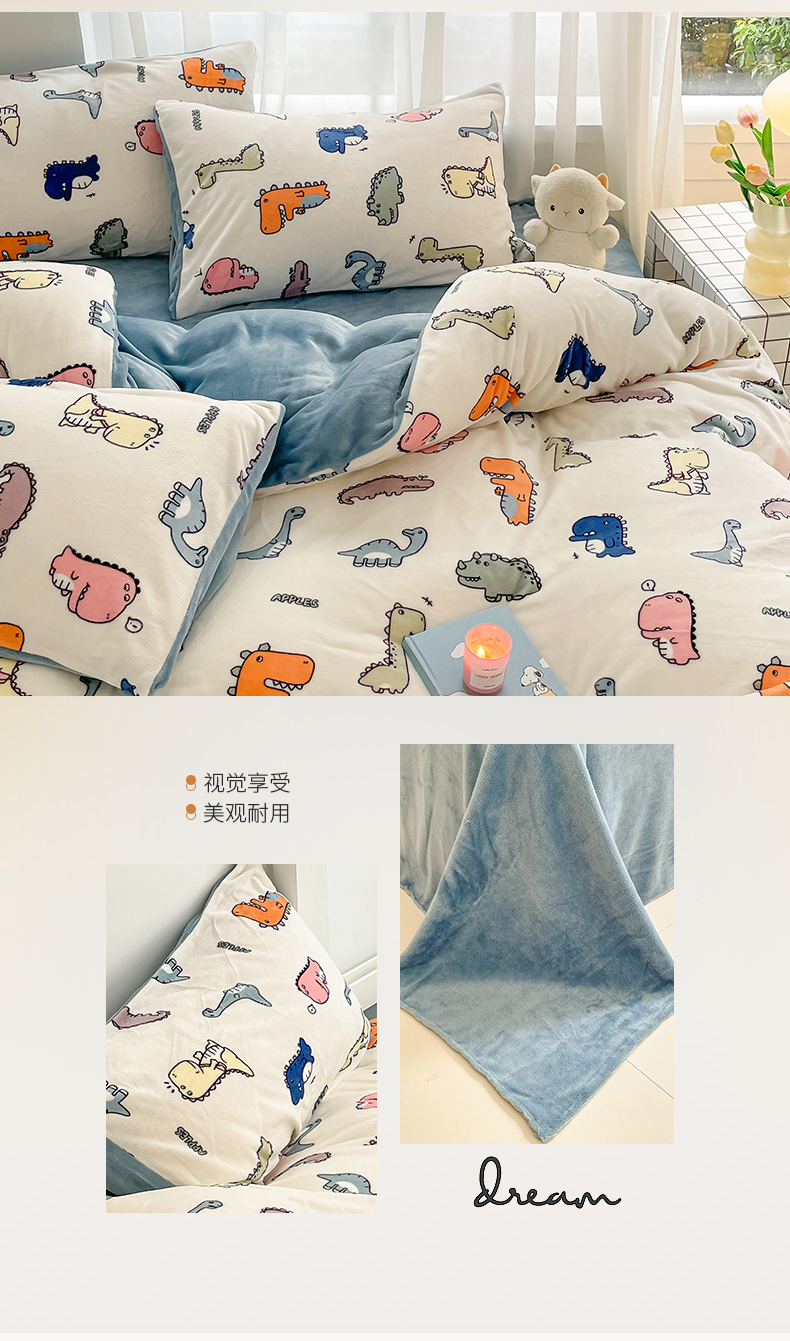 桃子 2023新款ins小清新韩系可爱卡通奶油兔子加厚牛奶绒系列四件套详情第三批 绒-侏罗纪