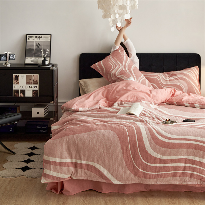 (总)安莱生活 2025新品天丝棉磨毛四件套-暖漾系列(风格二),暖漾-粉,暖漾-蓝
