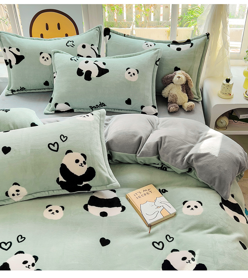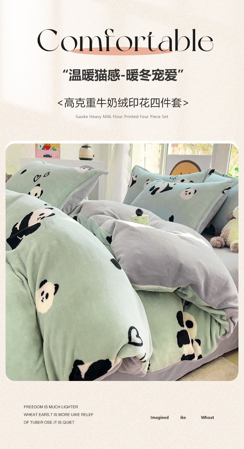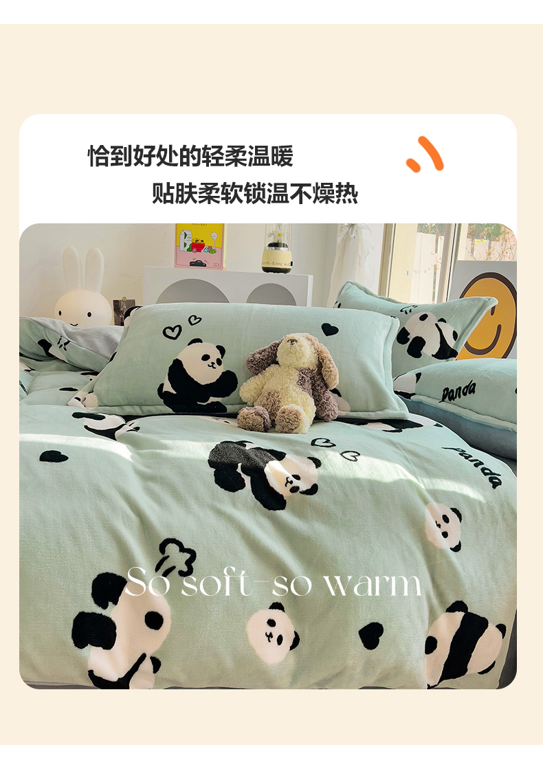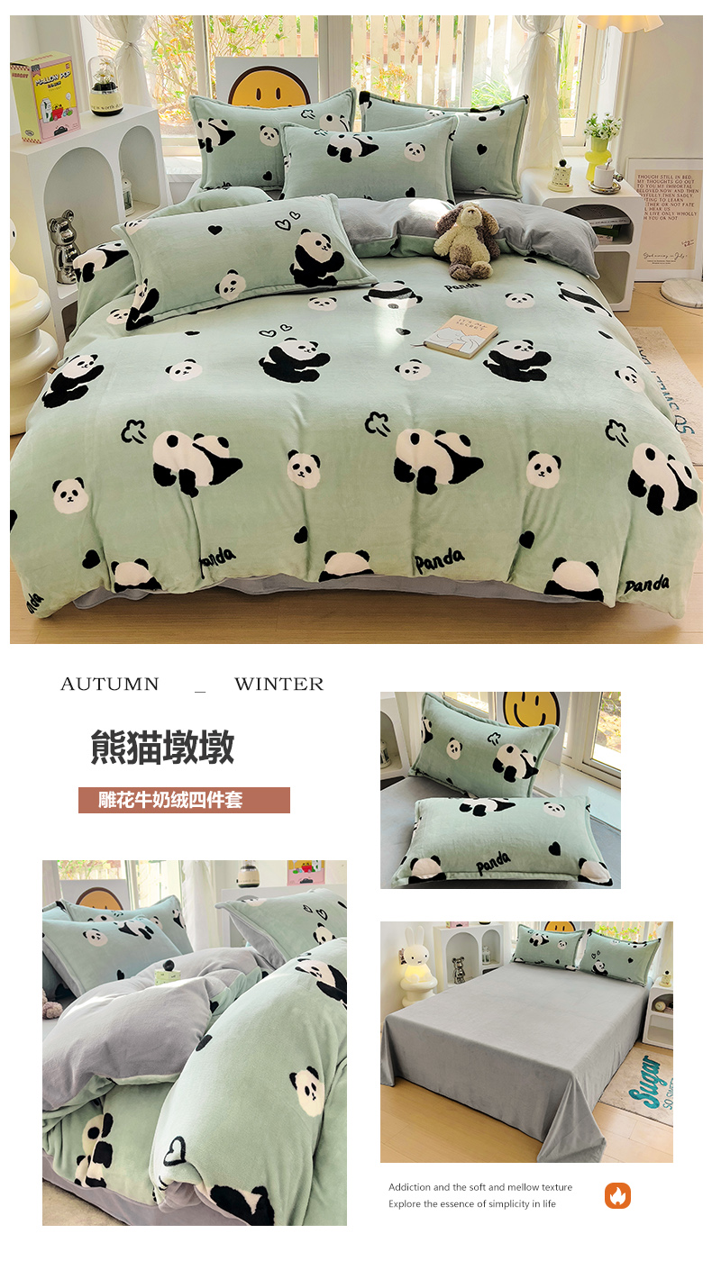当前位置: 91家纺网 > 商品网购 > 床品套件 > 四件套 > 牛奶绒四件套 > 包小包 2023直播爆款220g高克重印花小清新牛奶绒四件套 熊猫墩墩