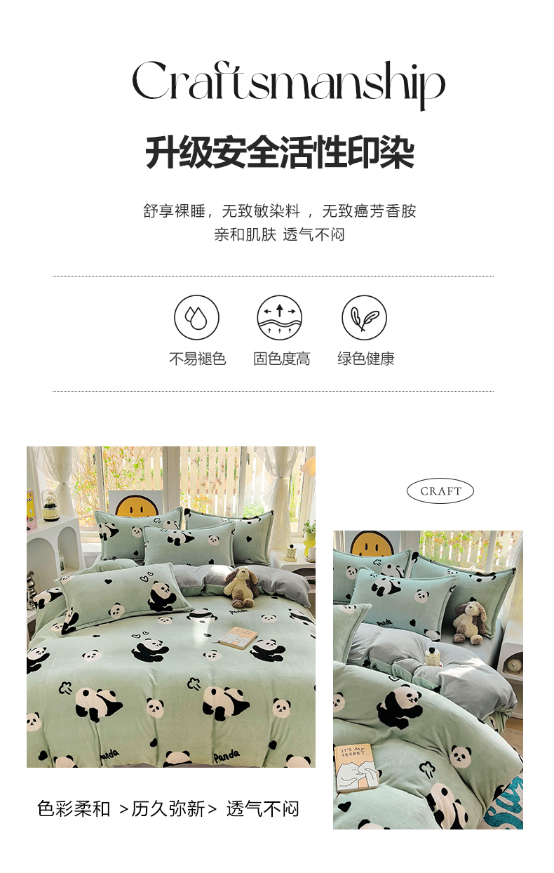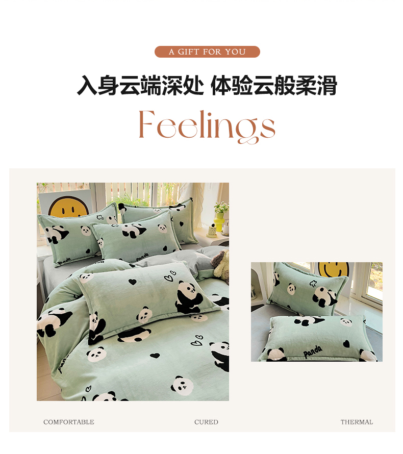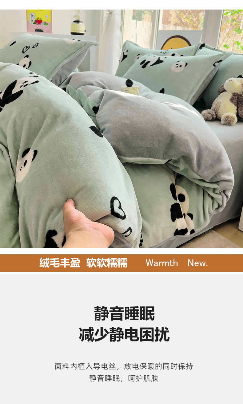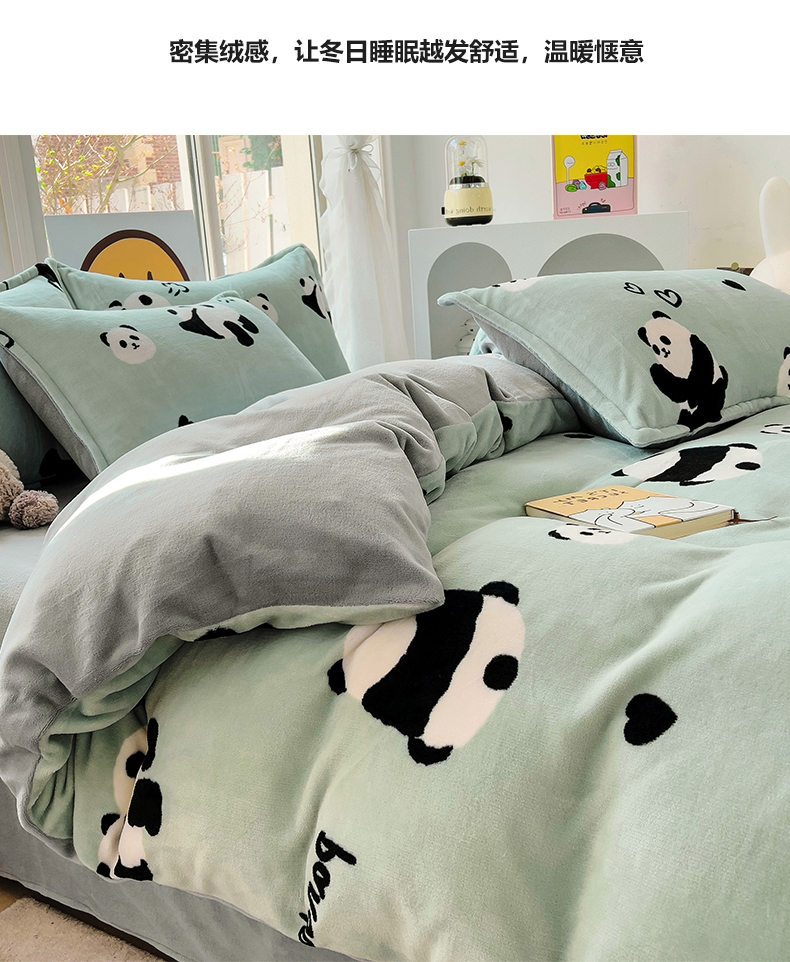 当前位置: 91家纺网 > 商品网购 > 床品套件 > 四件套 > 牛奶绒四件套 > 包小包 2023直播爆款220g高克重印花小清新牛奶绒四件套 熊猫墩墩