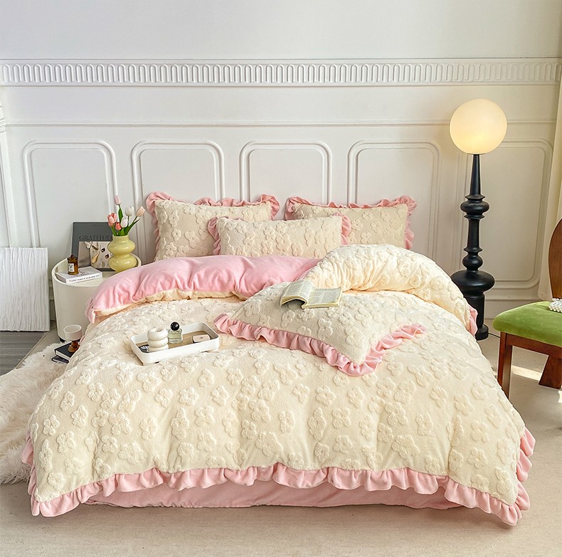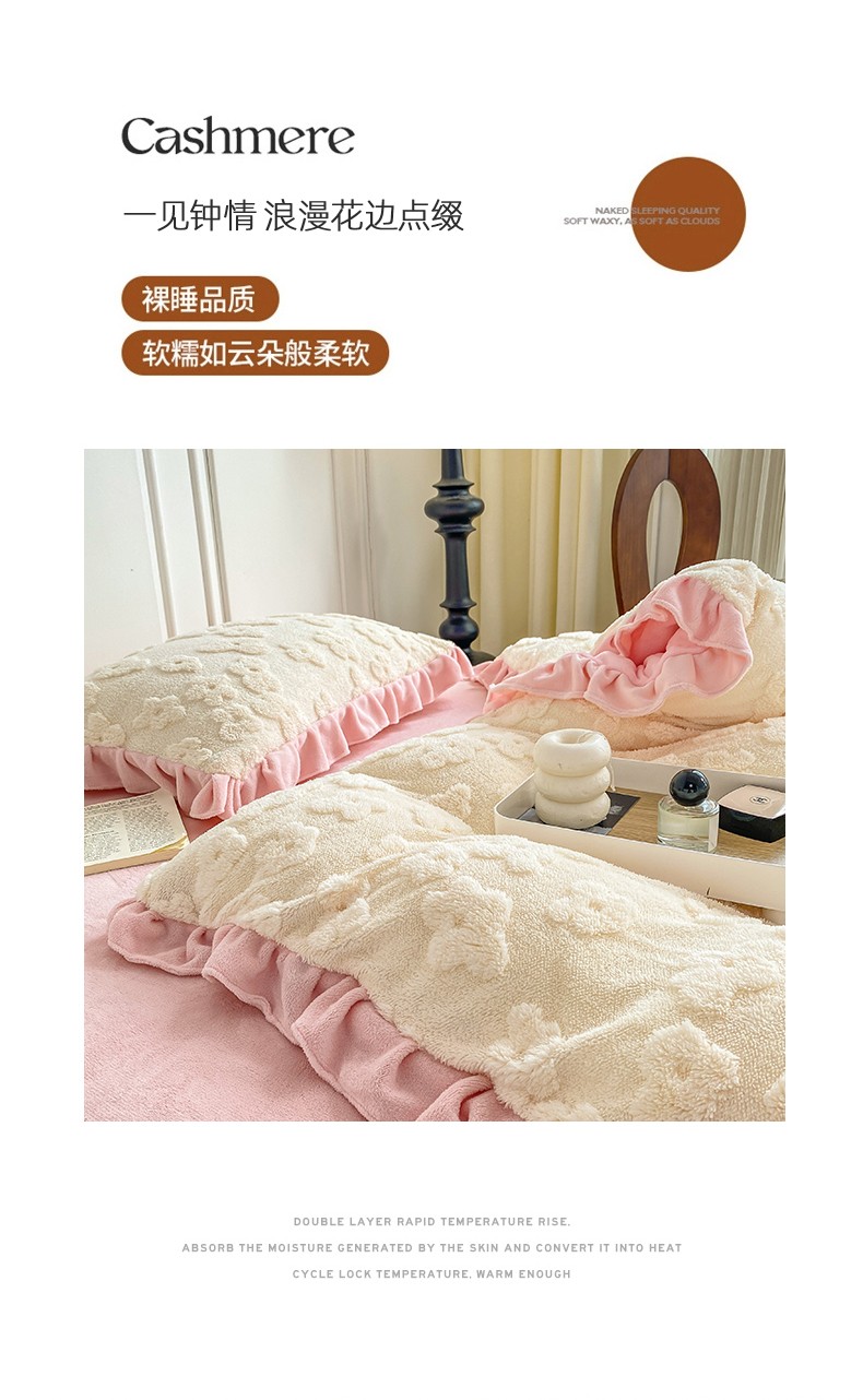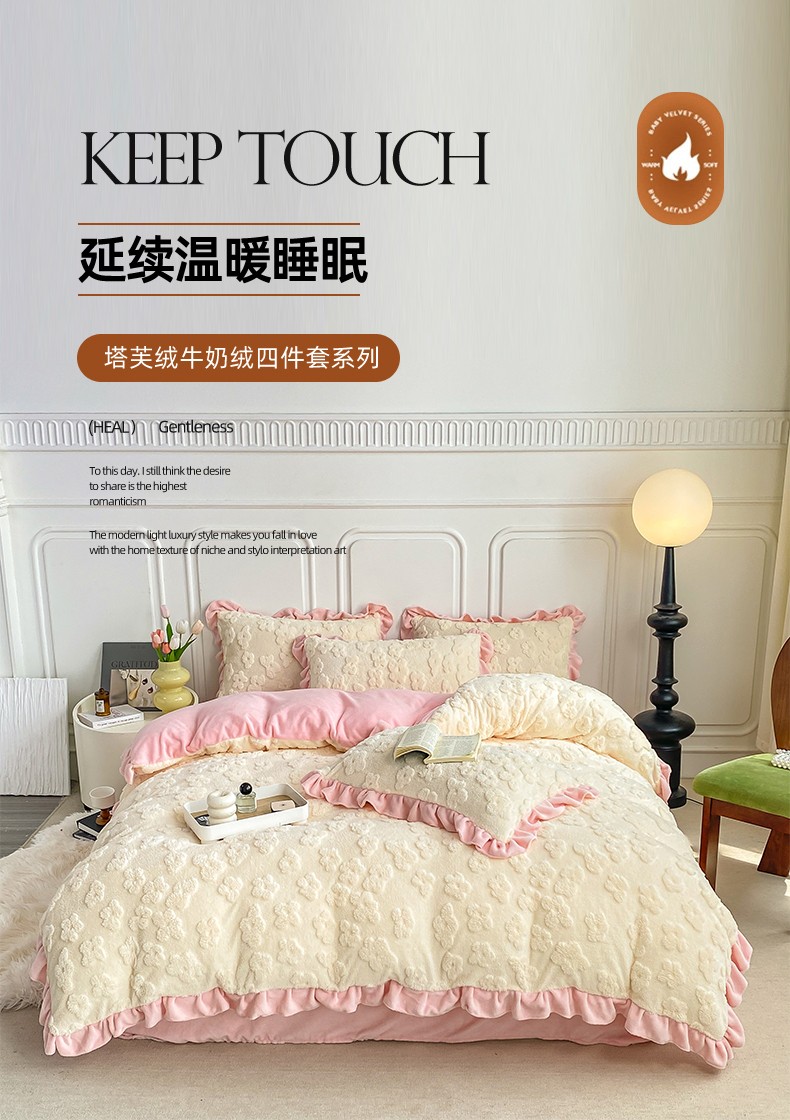 (总)米莱家纺 2025新款兔毛绒花边牛奶绒四件套,彩色圆点,繁花,粉黛,蝴蝶结,咖圆点,可爱兔,可爱熊,蔷薇