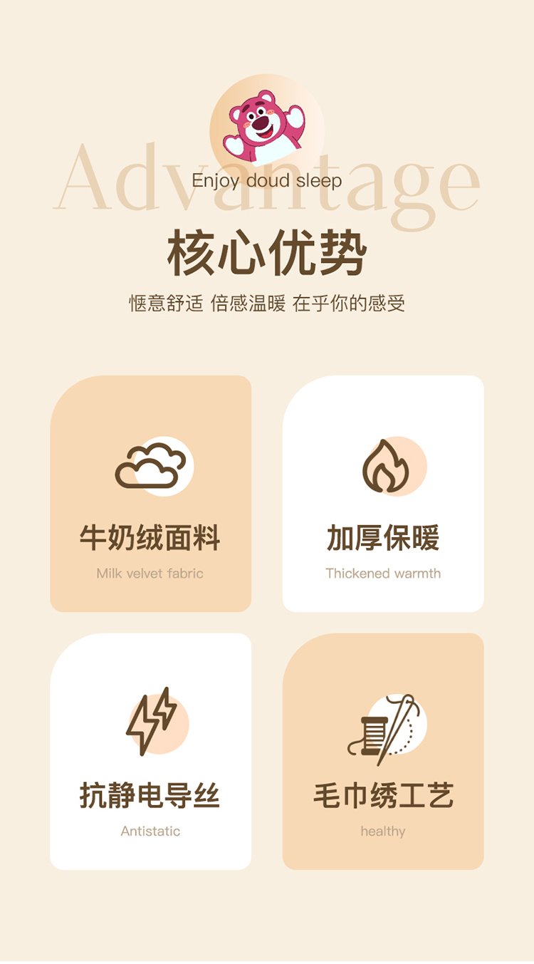 商品名称:丽美人家纺 2023新款迪斯尼牛奶绒枕套 草莓熊