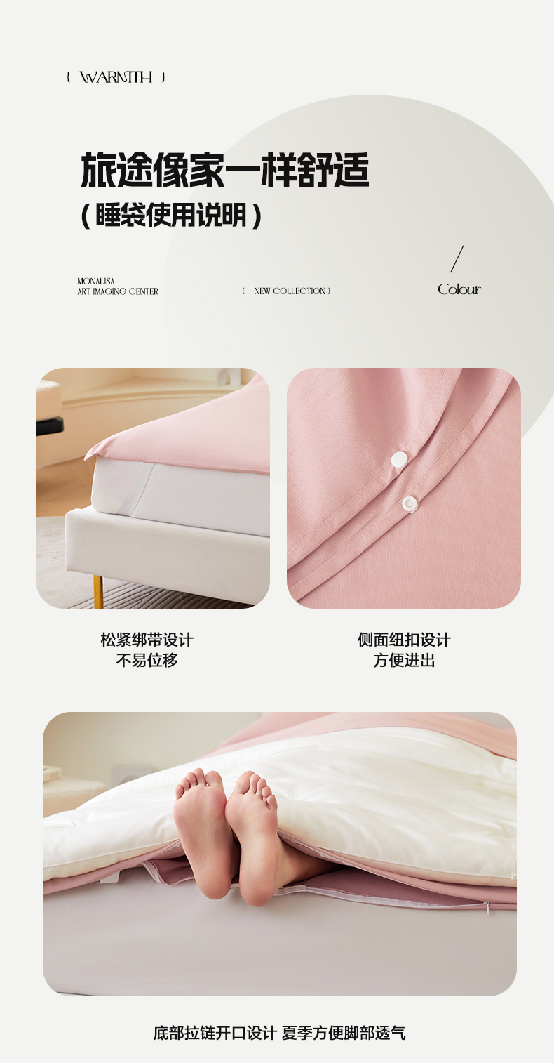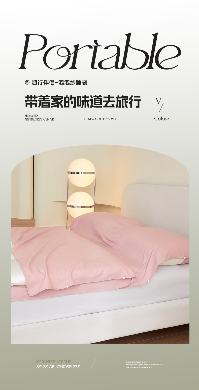 商品名称:荣轩家居 2023新款泡泡纱睡袋 桃粉