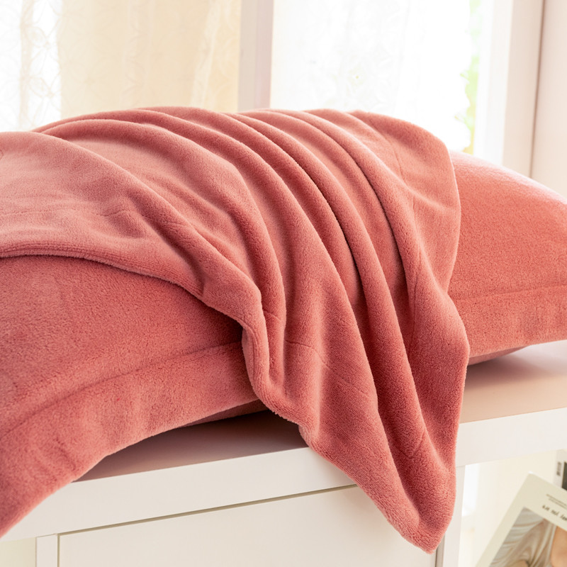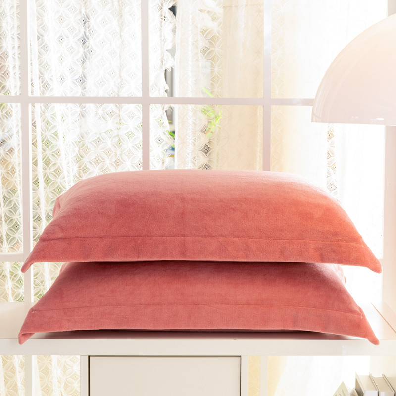 好阁家纺 2023新款牛奶绒纯色枕套 落樱粉