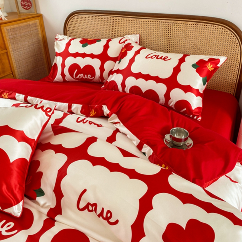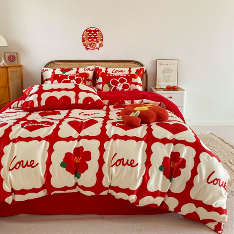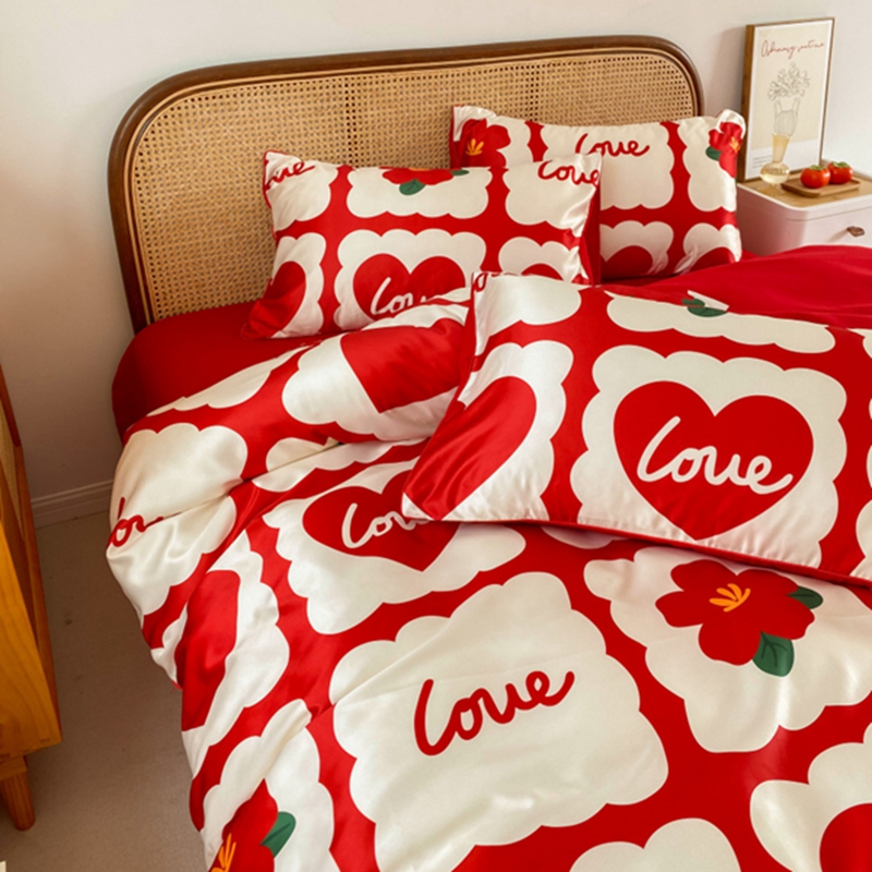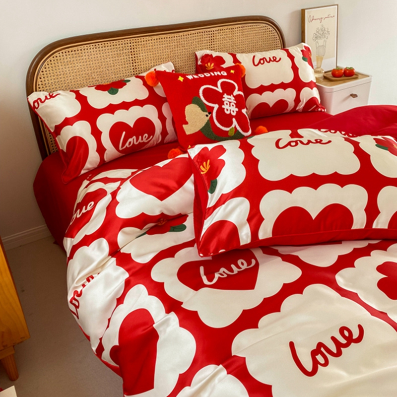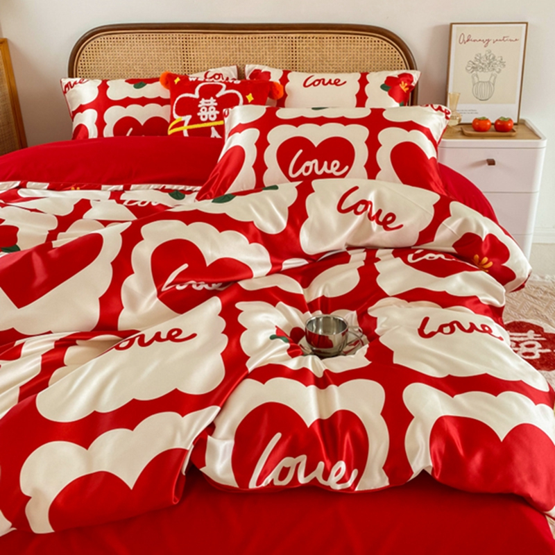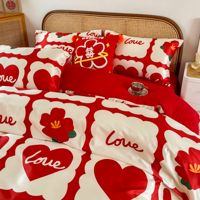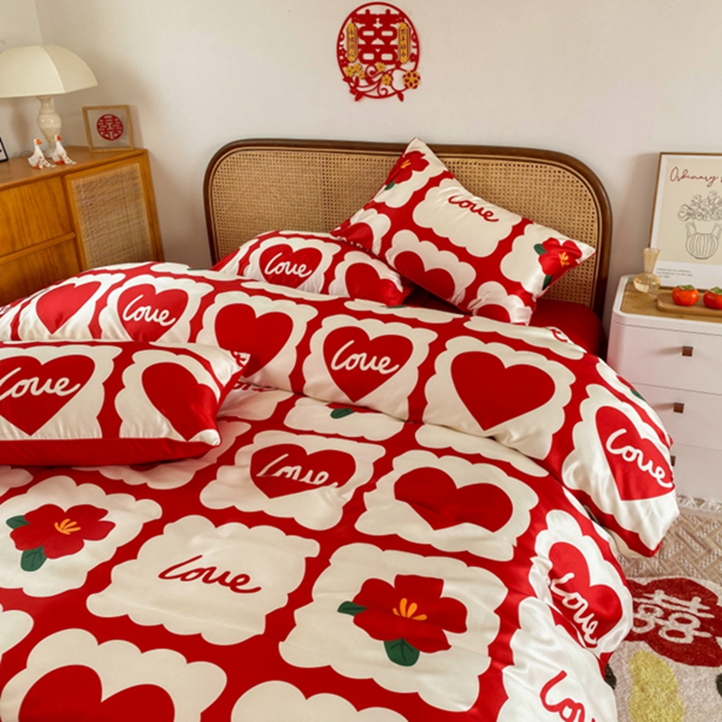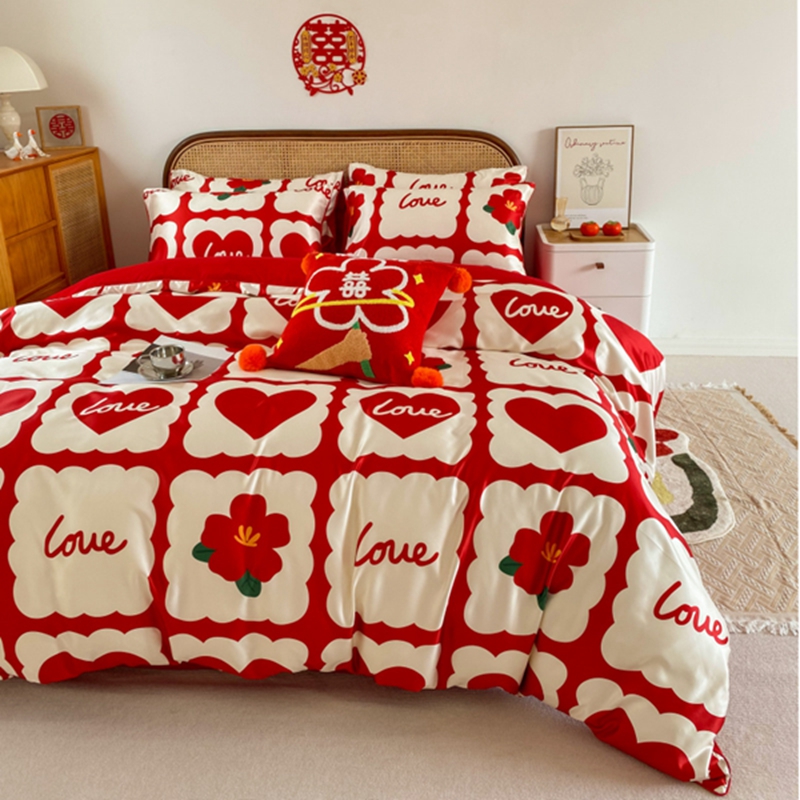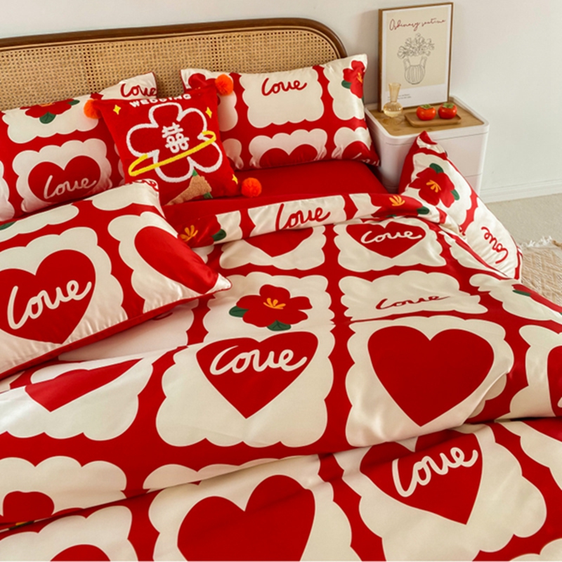 用心 2023新款高端数码印花婚庆四件套 love爱