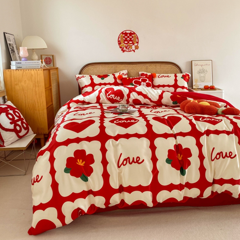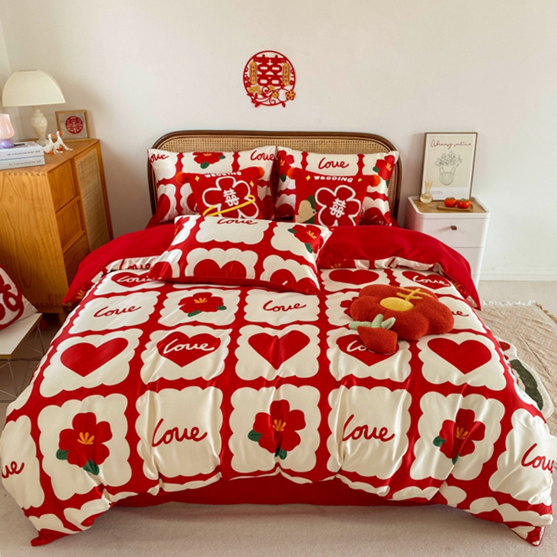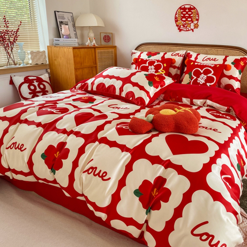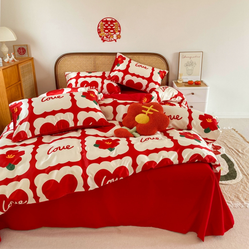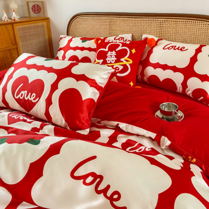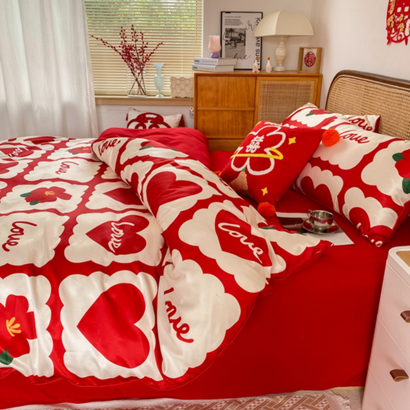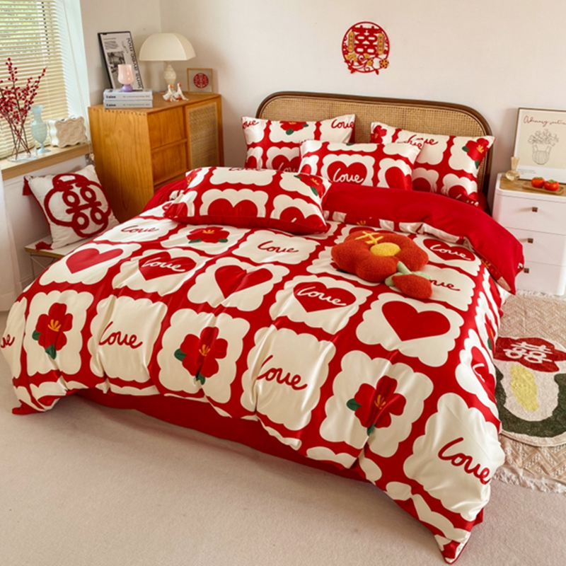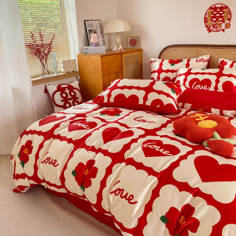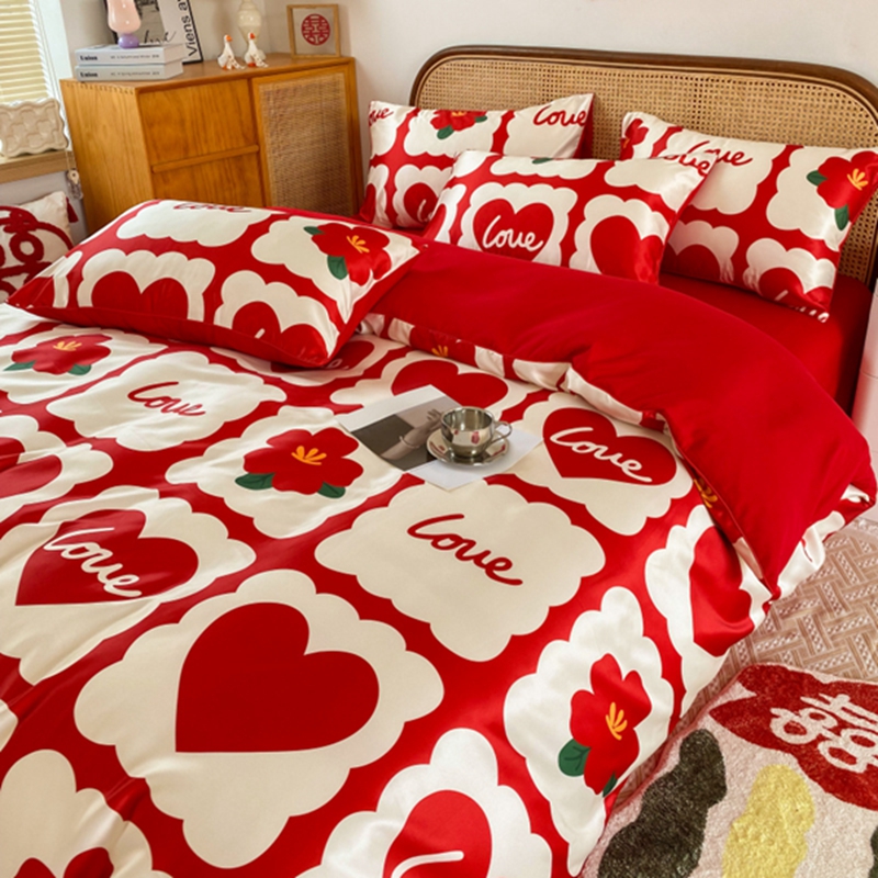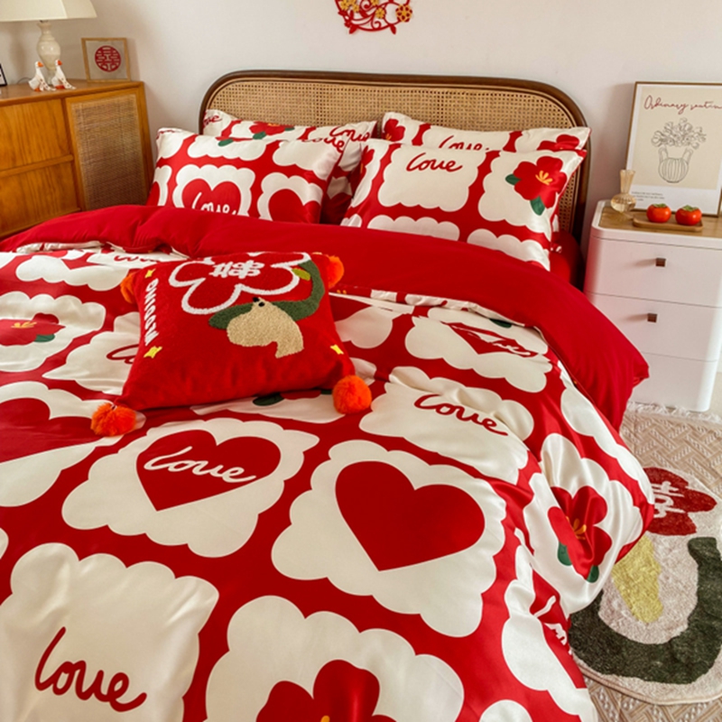 用心 2023新款高端数码印花婚庆四件套 love爱