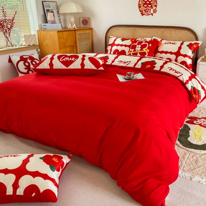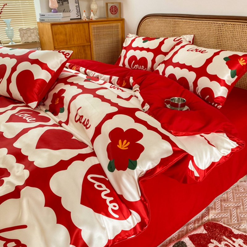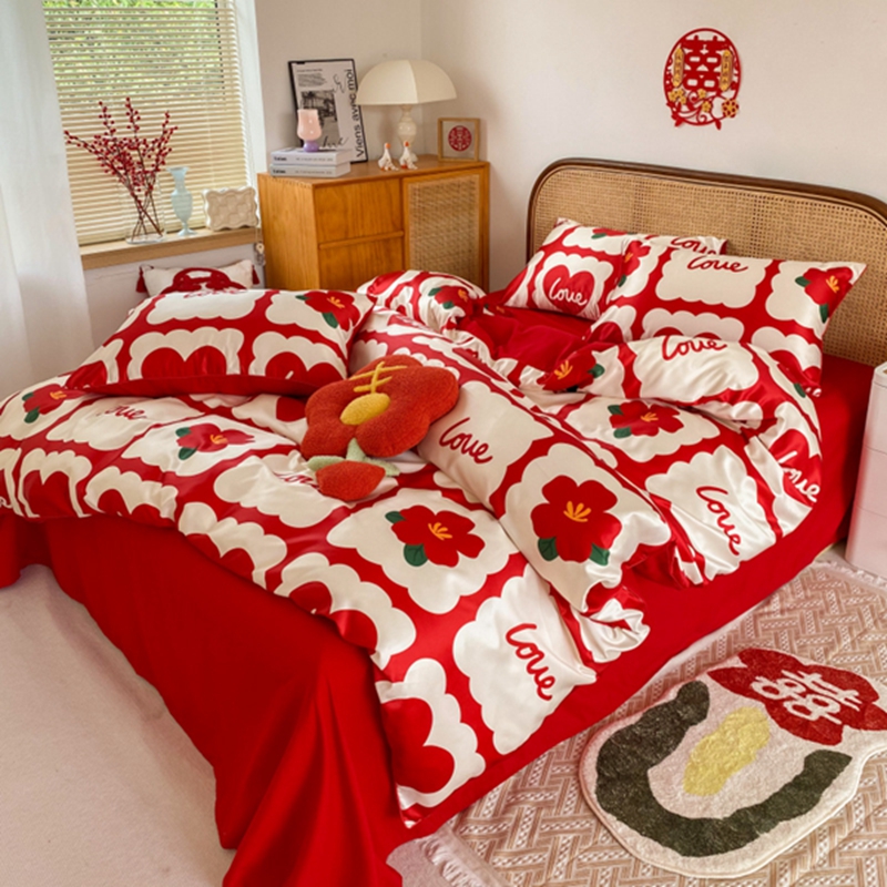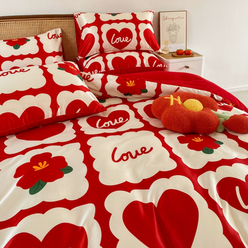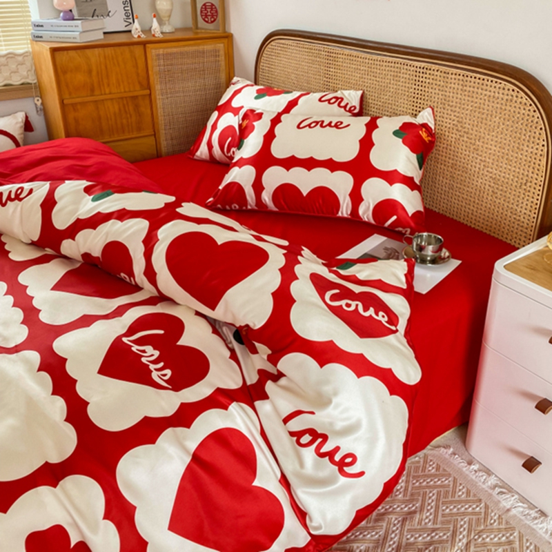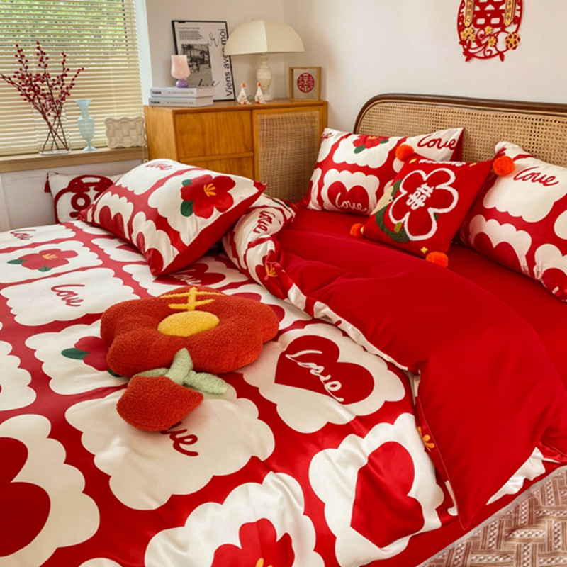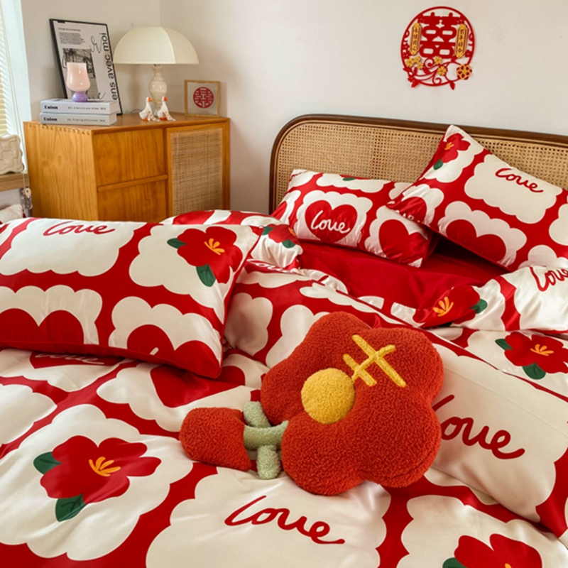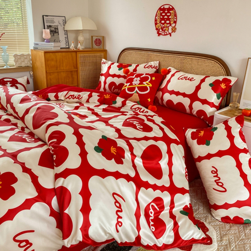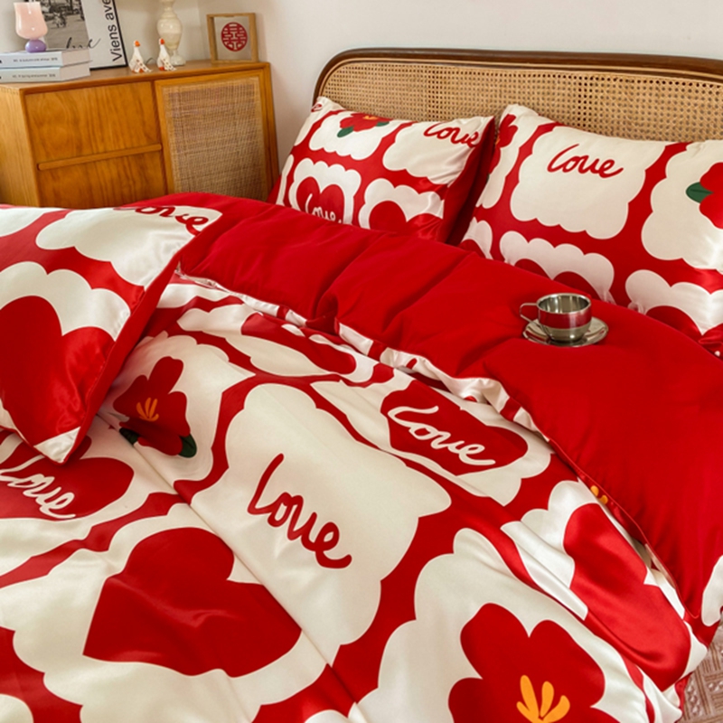 用心 2023新款高端数码印花婚庆四件套 love爱