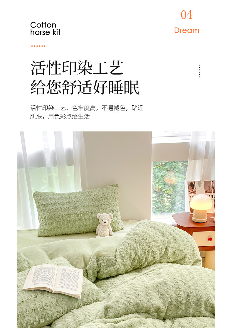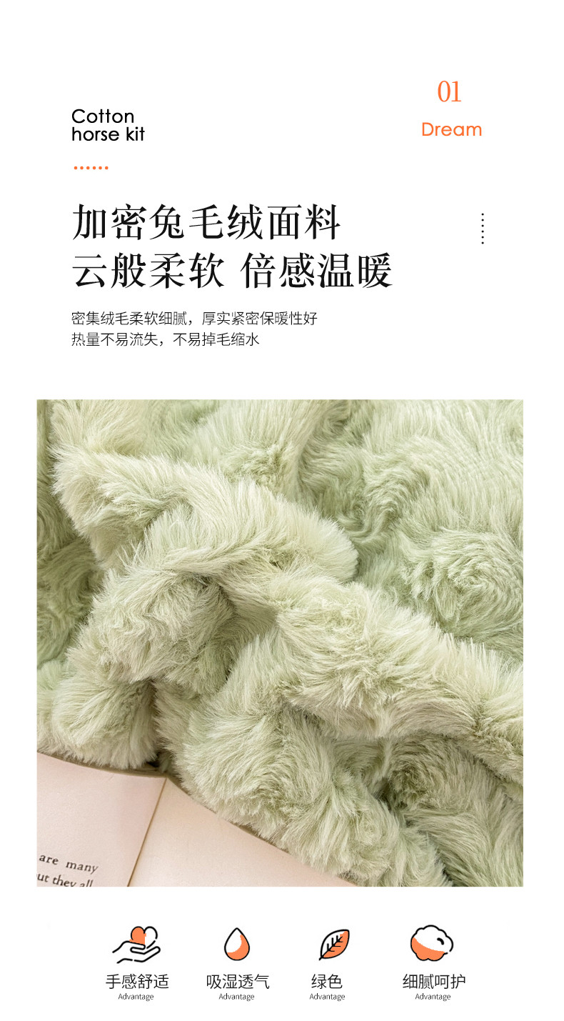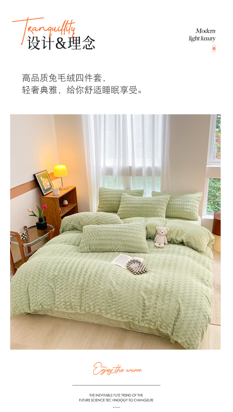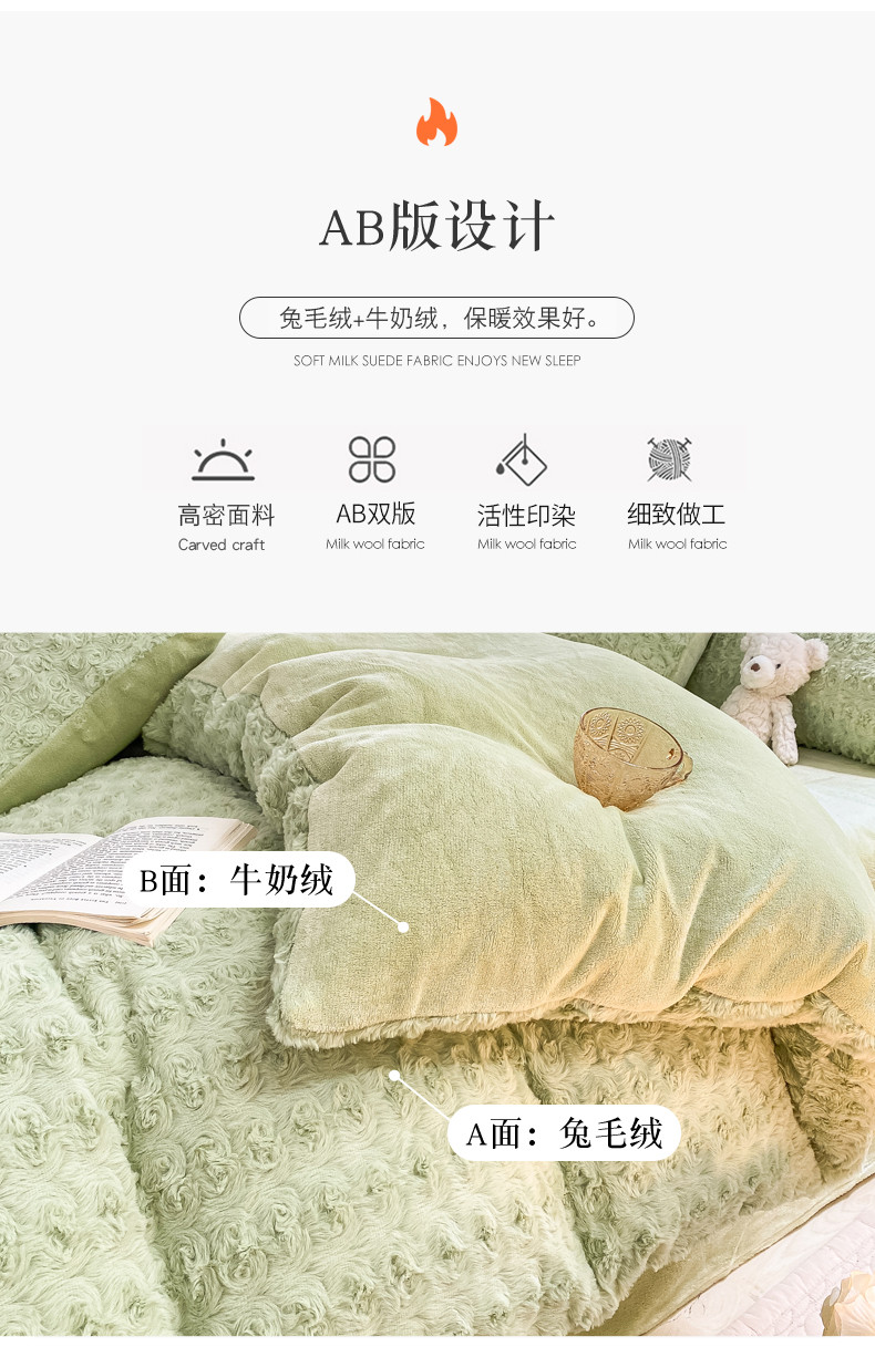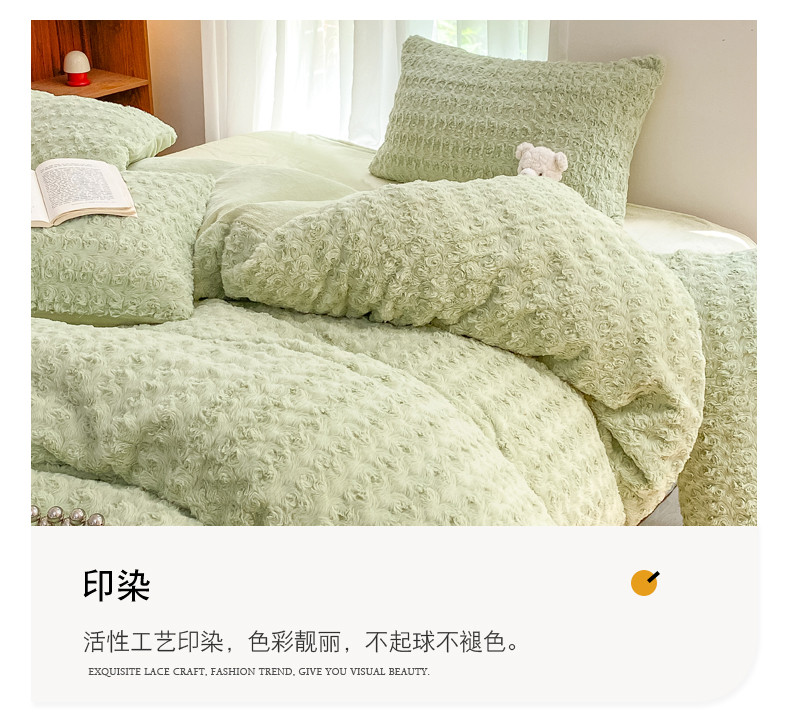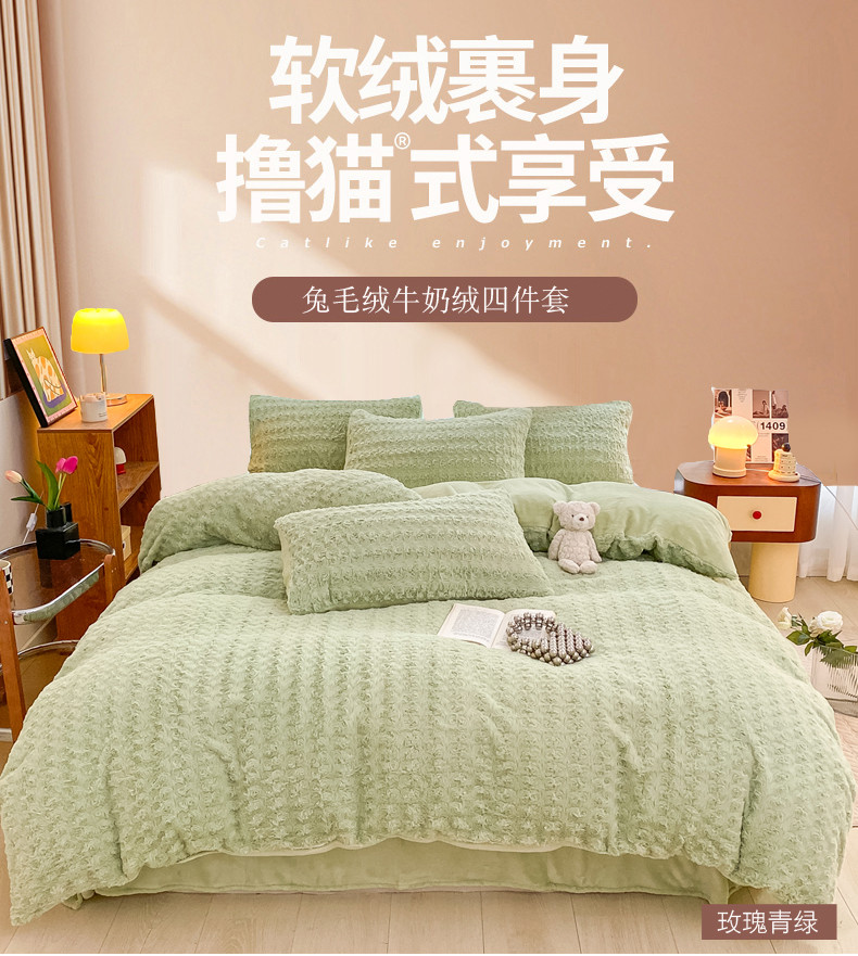 商品名称:金爱家 2023新款全消光牛奶绒A类纯色獭兔毛绒立体牛奶绒四件套 兔毛玫瑰青绿