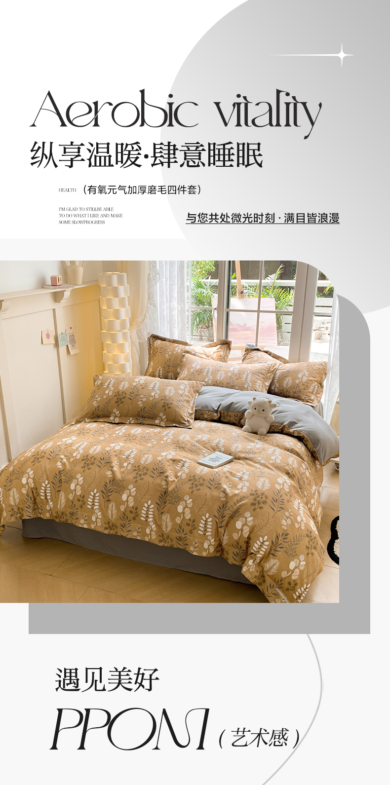 商品名称:古吉梦 2023新款A类有氧元气棉加厚磨毛四件套 古奈