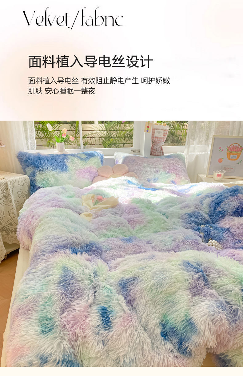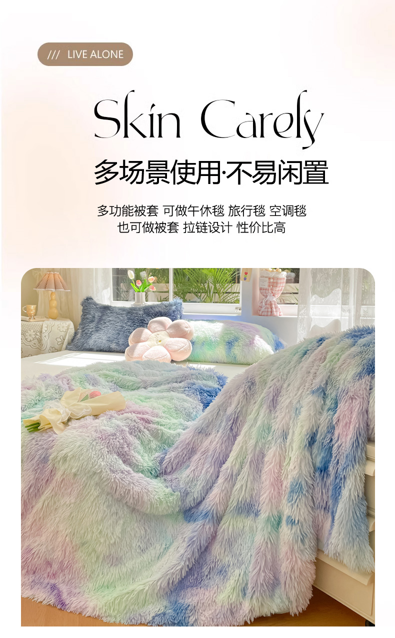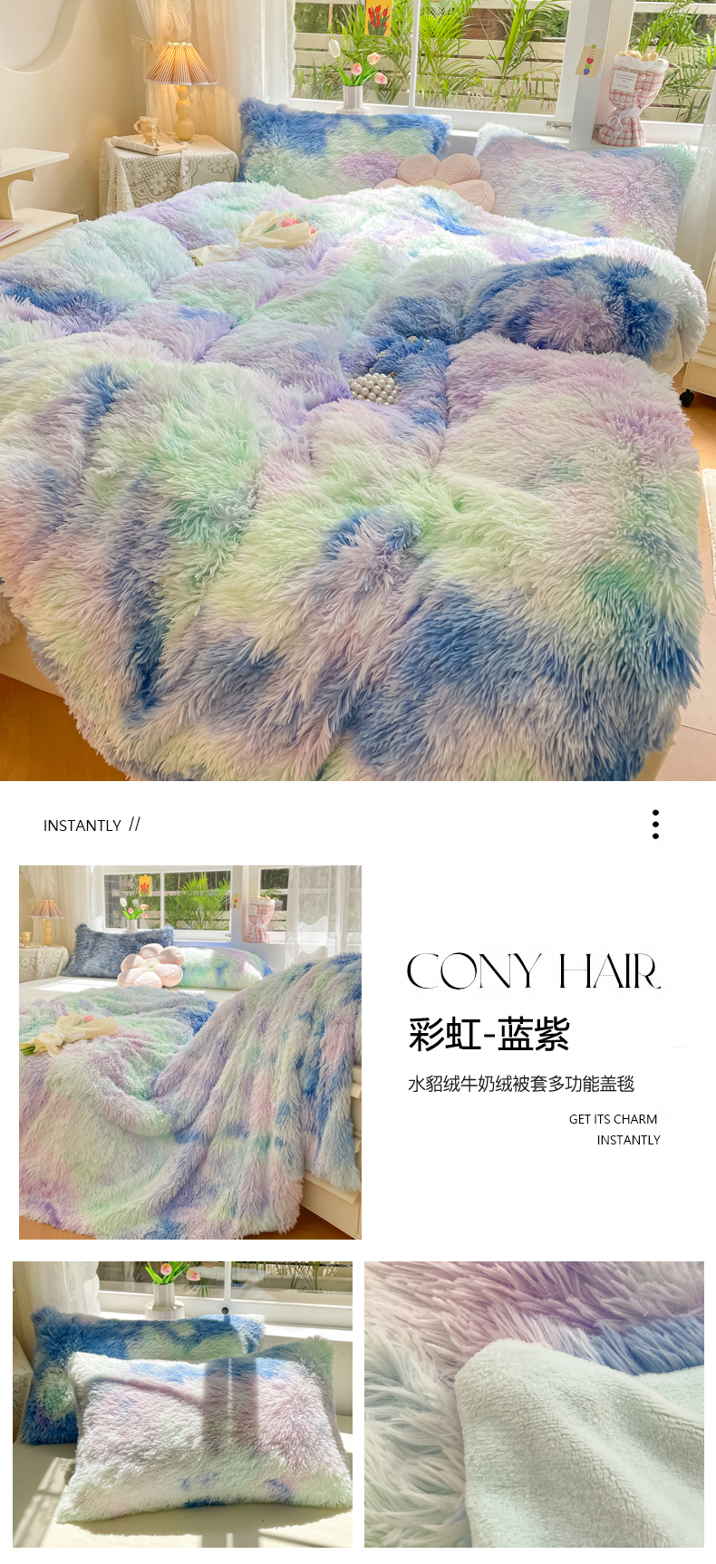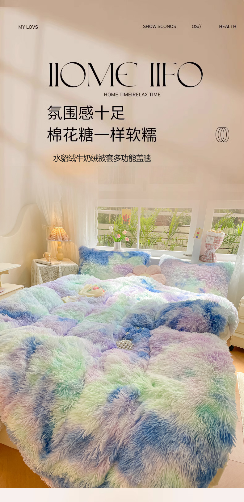 商品名称:慕澄家纺 2023新款水貂绒被套盖毯两用毯子 彩虹-蓝紫