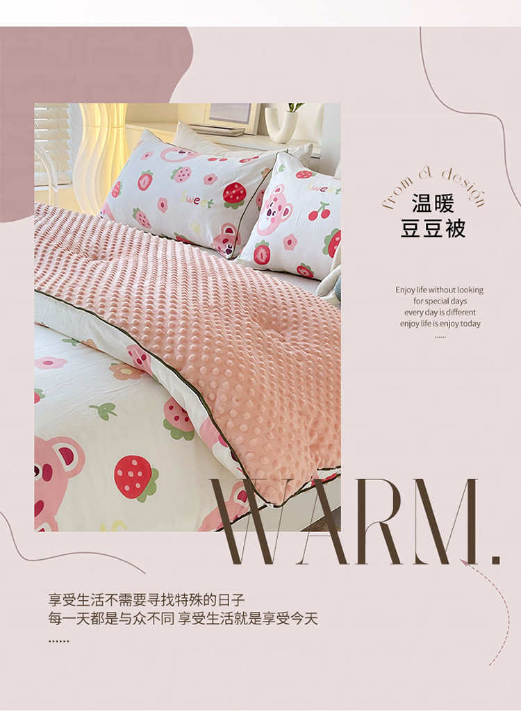 商品名称:网客 2024新款亲肤水洗双层纱豆豆被 草莓小熊