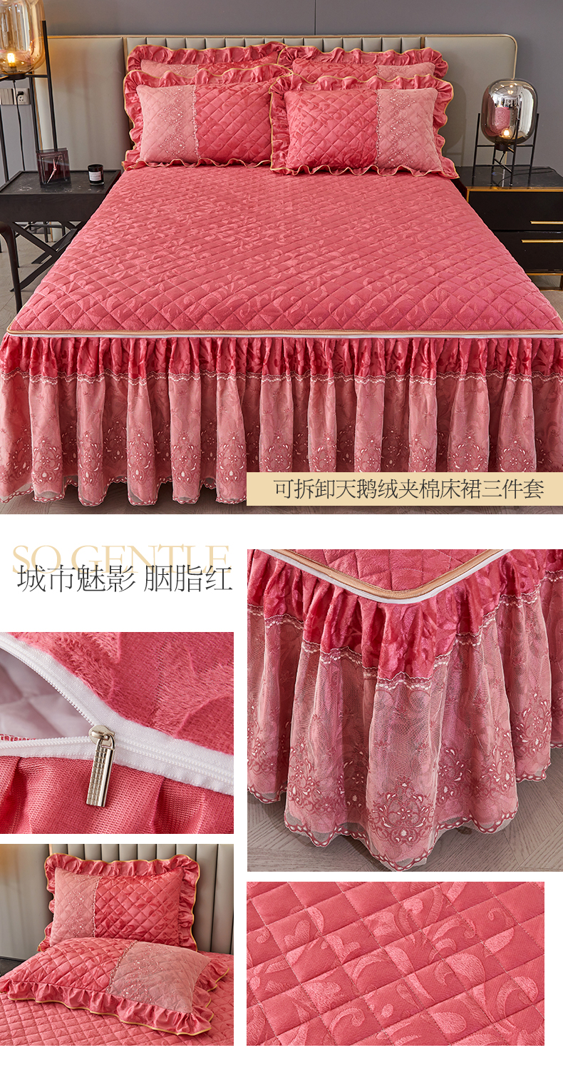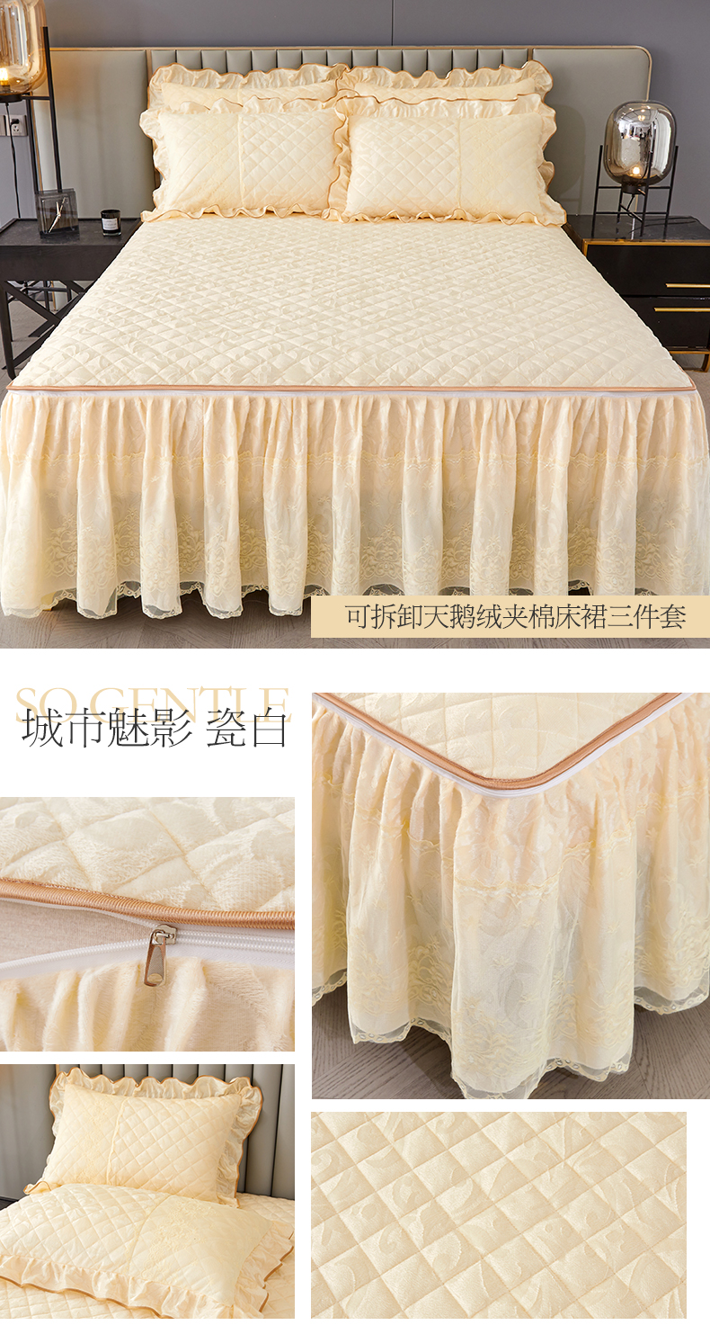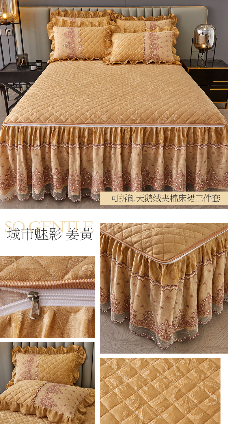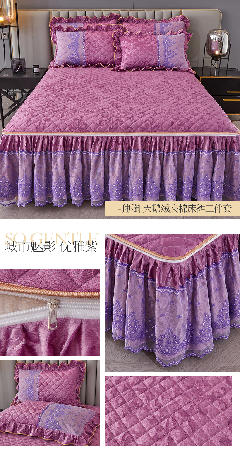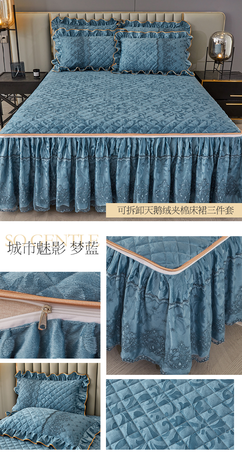 (总)网红馆 2025新款可拆卸天鹅绒夹棉床裙三件套-城市魅影