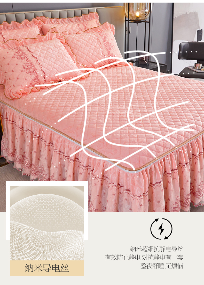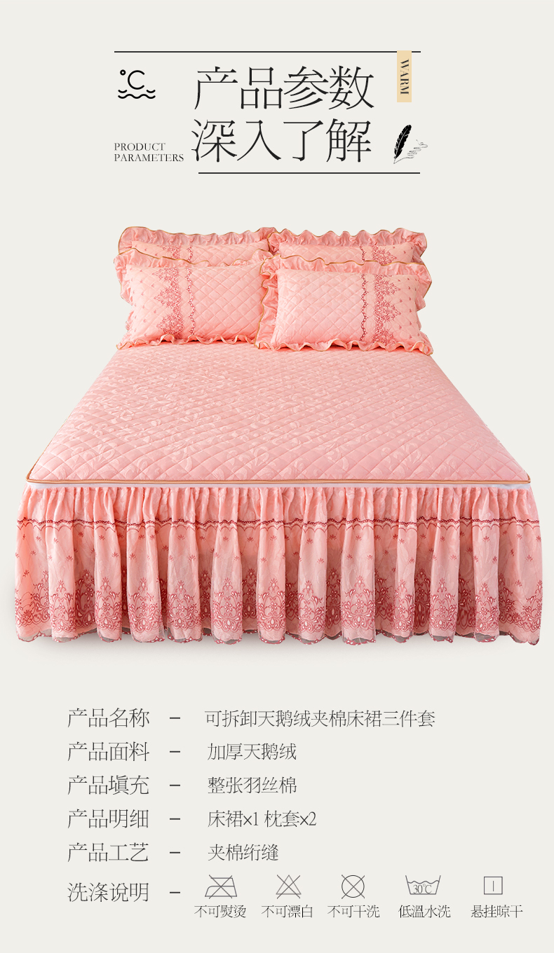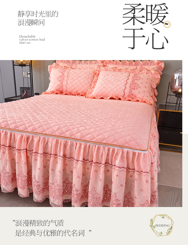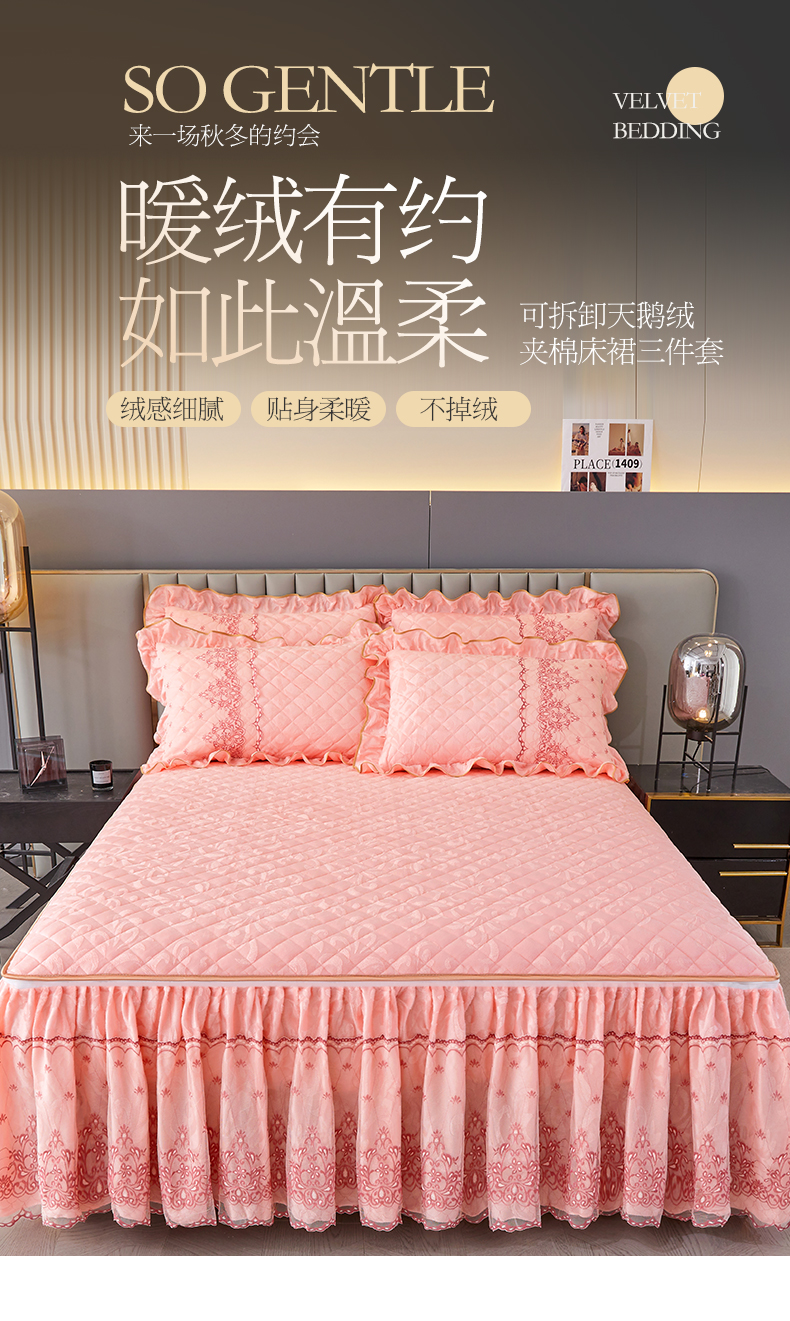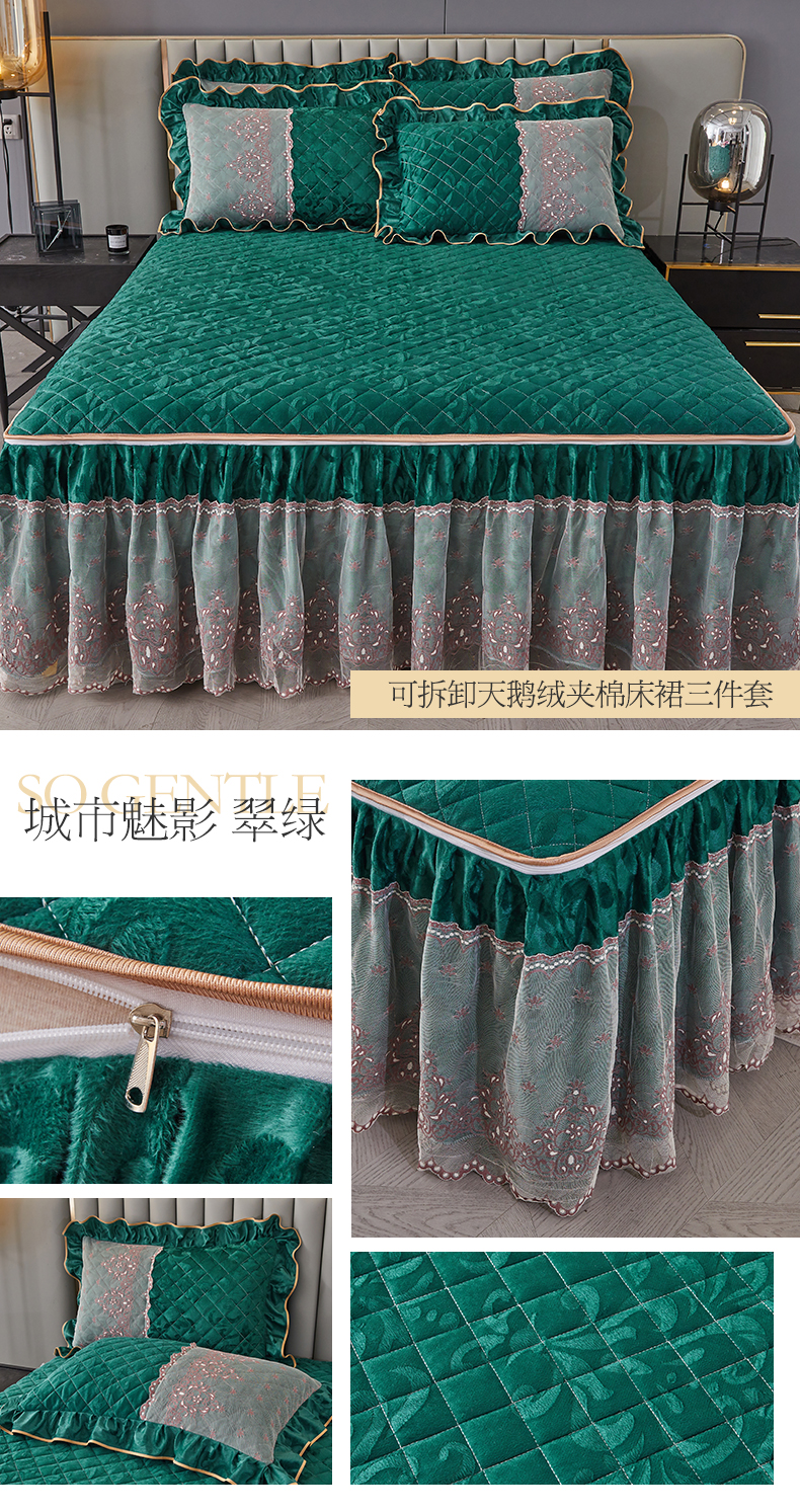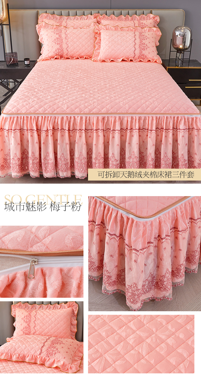 (总)网红馆 2025新款可拆卸天鹅绒夹棉床裙三件套-城市魅影