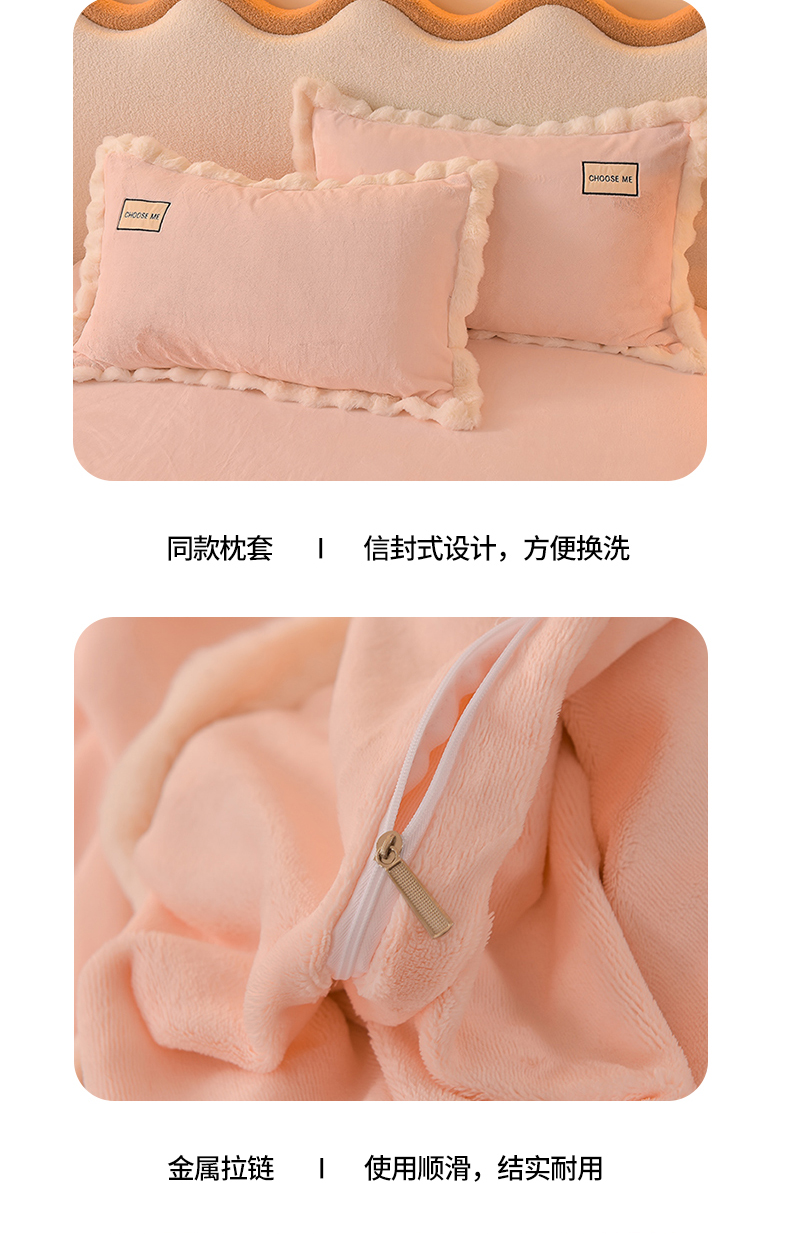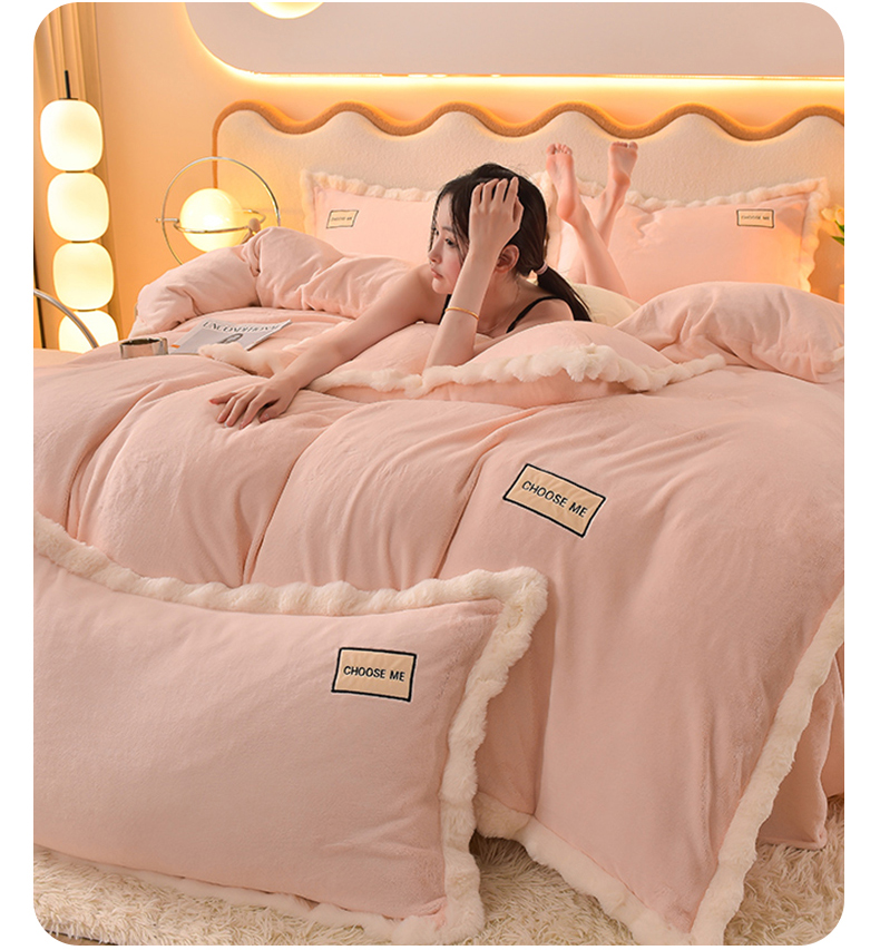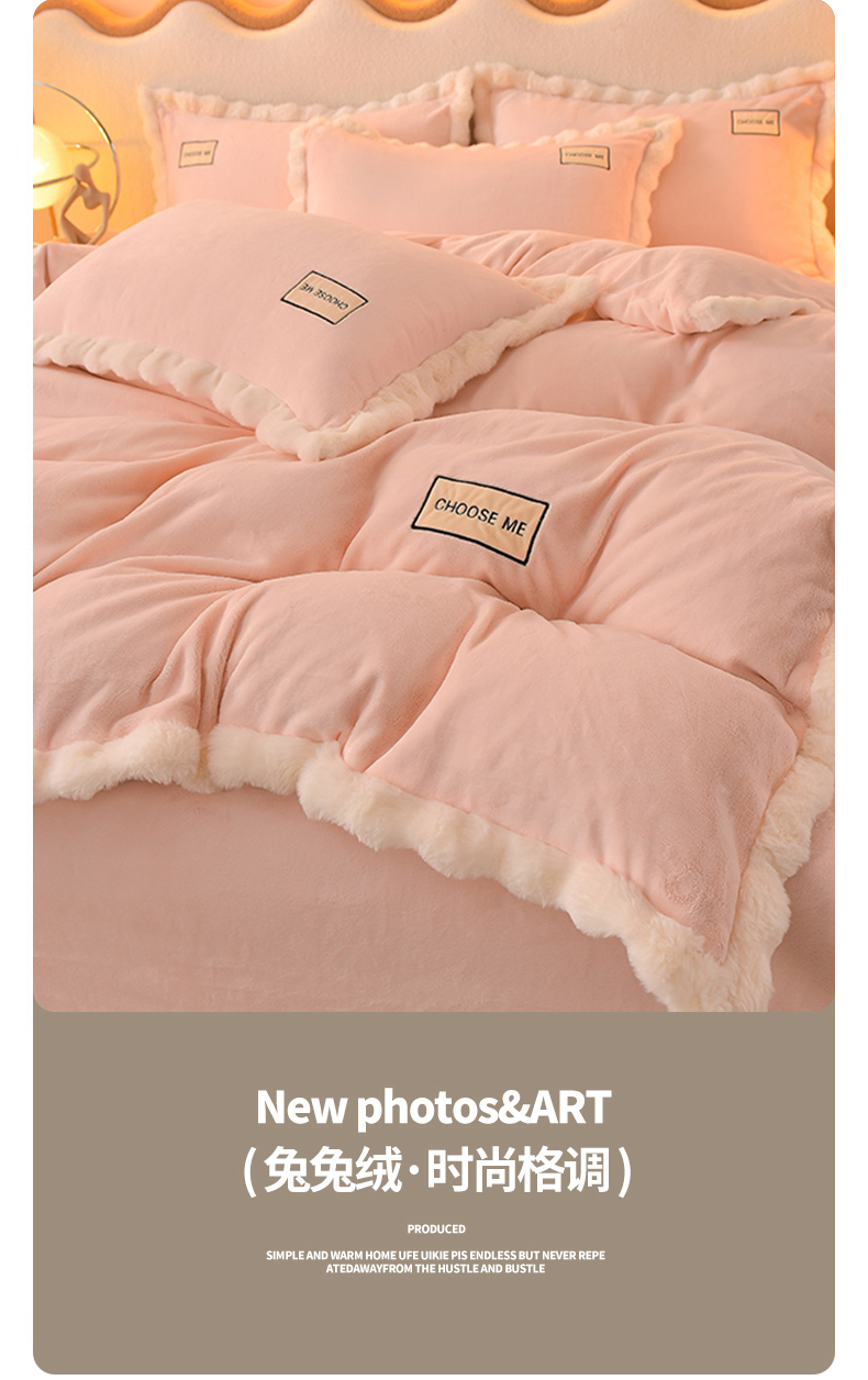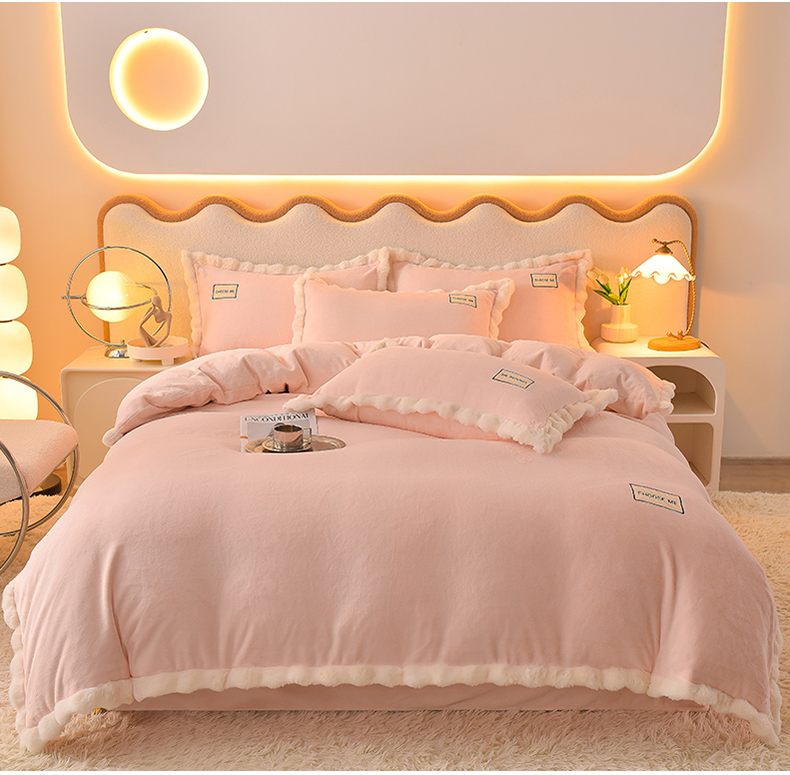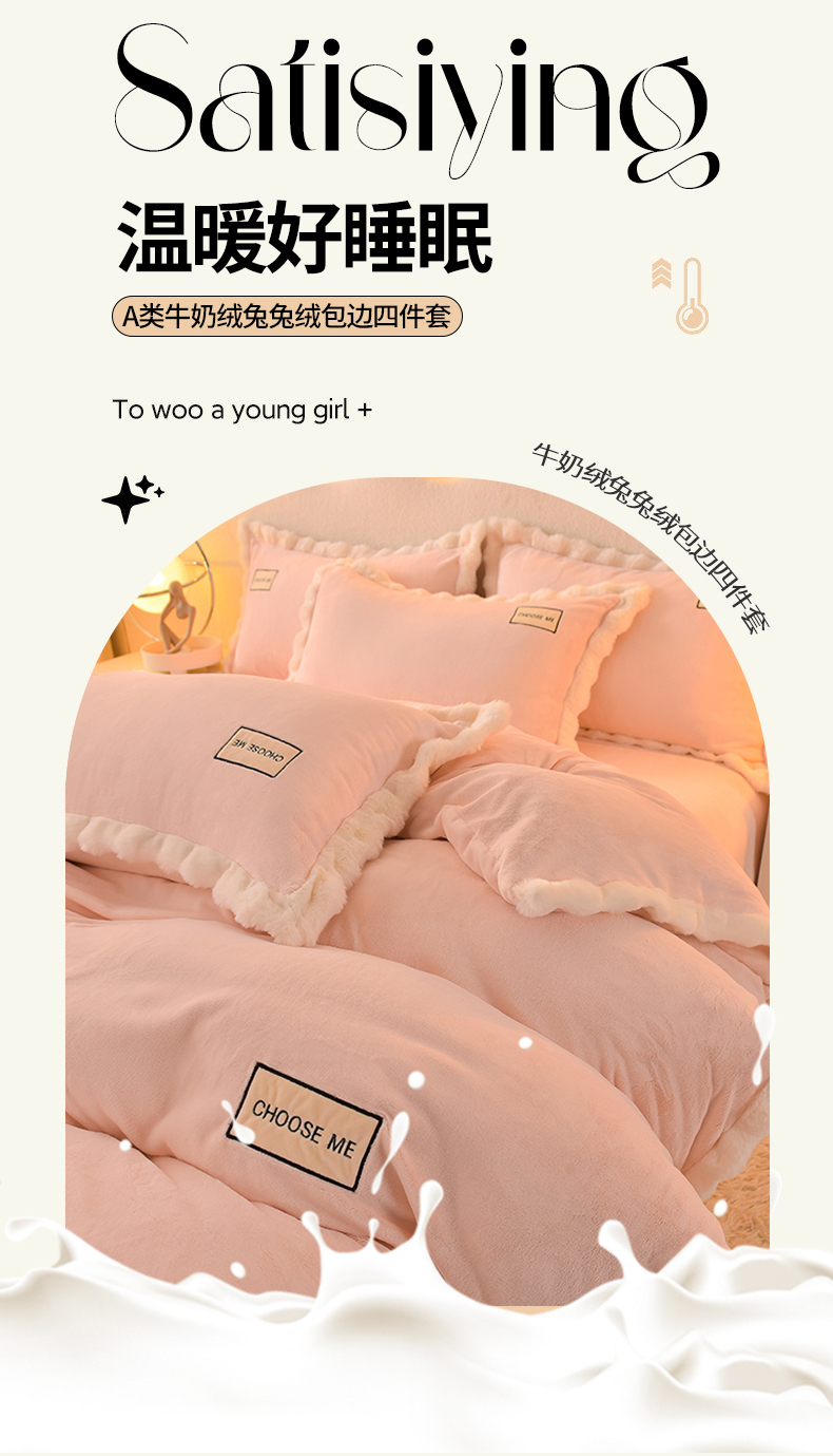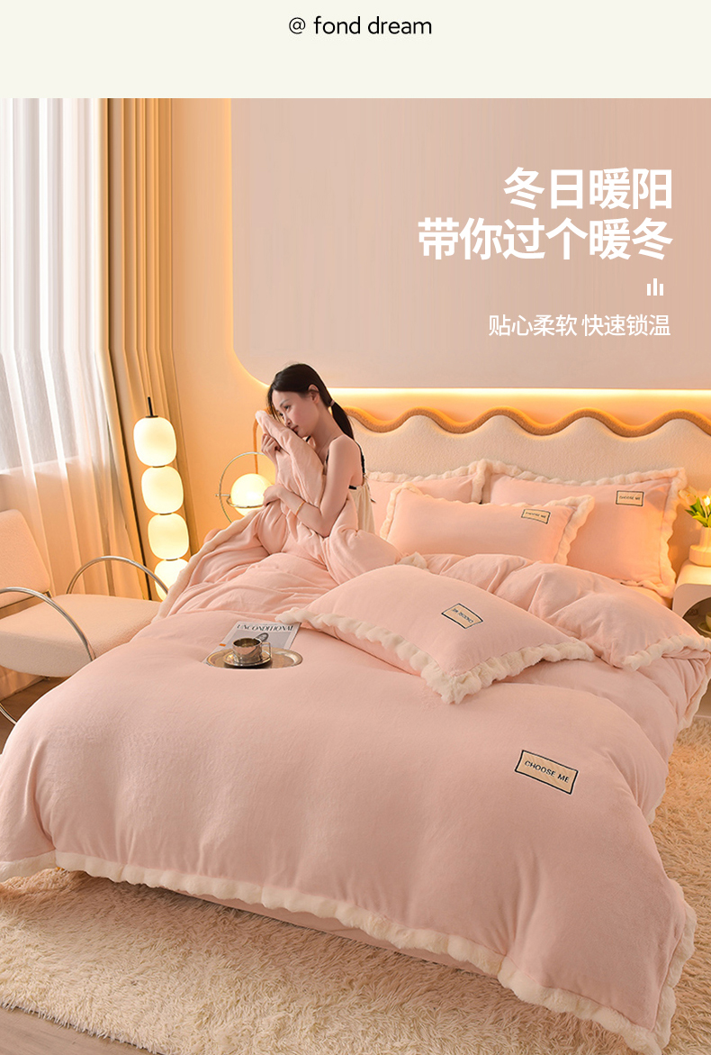米奈家居 2025新款A类高克重牛奶绒四件套-卡洛琳 安妮粉