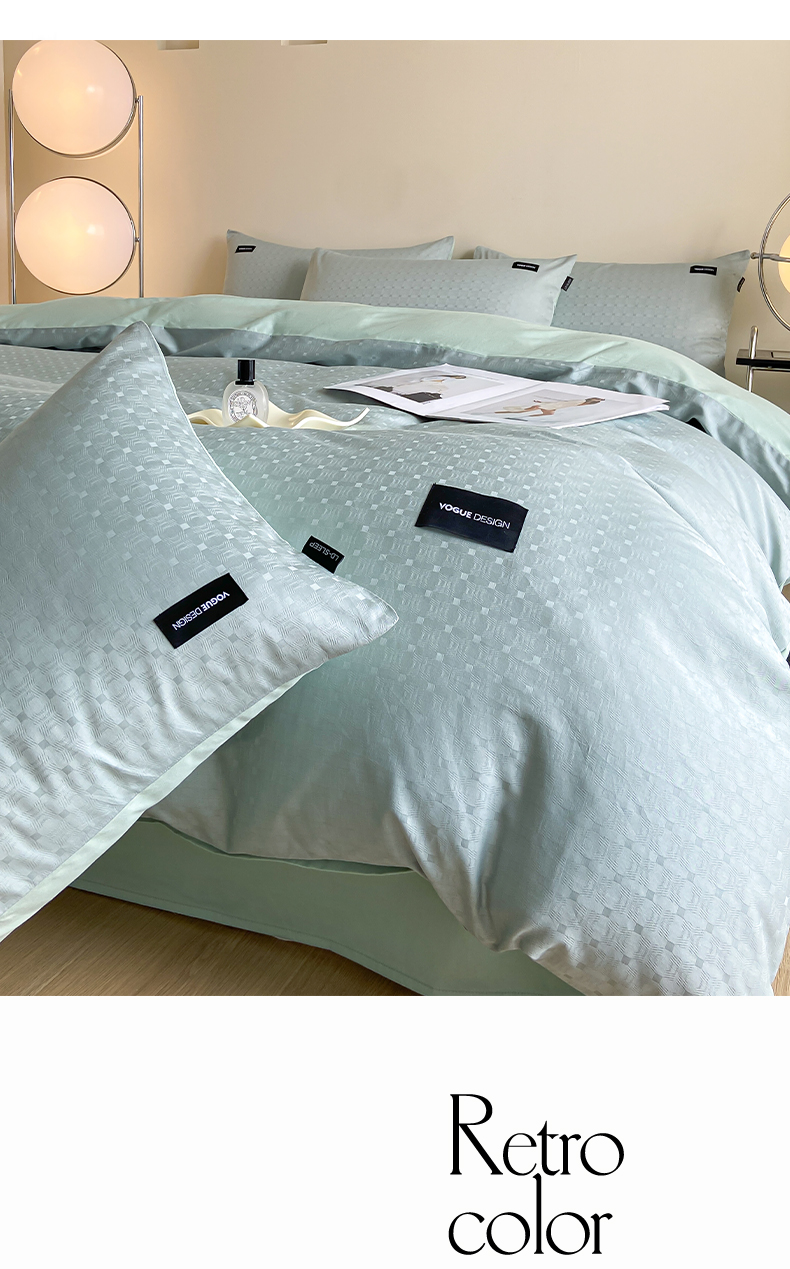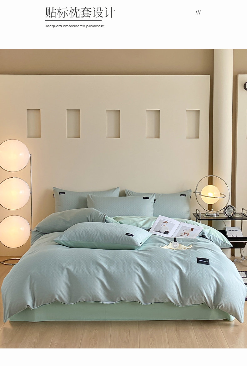 当前位置: 91家纺网 > 商品网购 > 床品套件 > 四件套 > 全棉普通四件套 > 莱登卡奴 2023新款全棉原棉贡缎提花贴标款四件套 曲线格浅绿