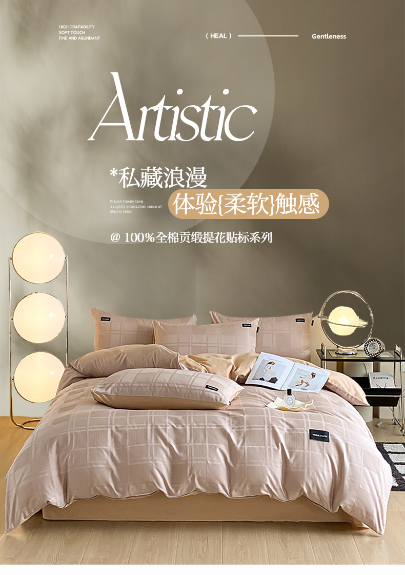 (总)莱登卡奴 2023新款全棉原棉贡缎提花贴标款单品被套