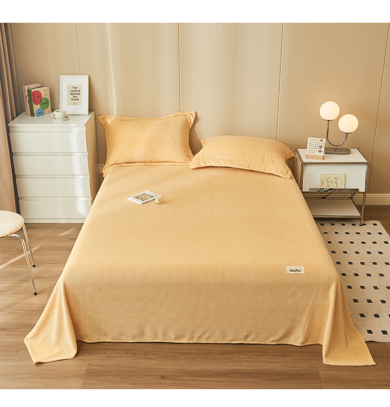 吾诺 2023秋冬 华夫格绒床单枕套床笠毯子单品系列 - 牛奶绒床单 大豆黄