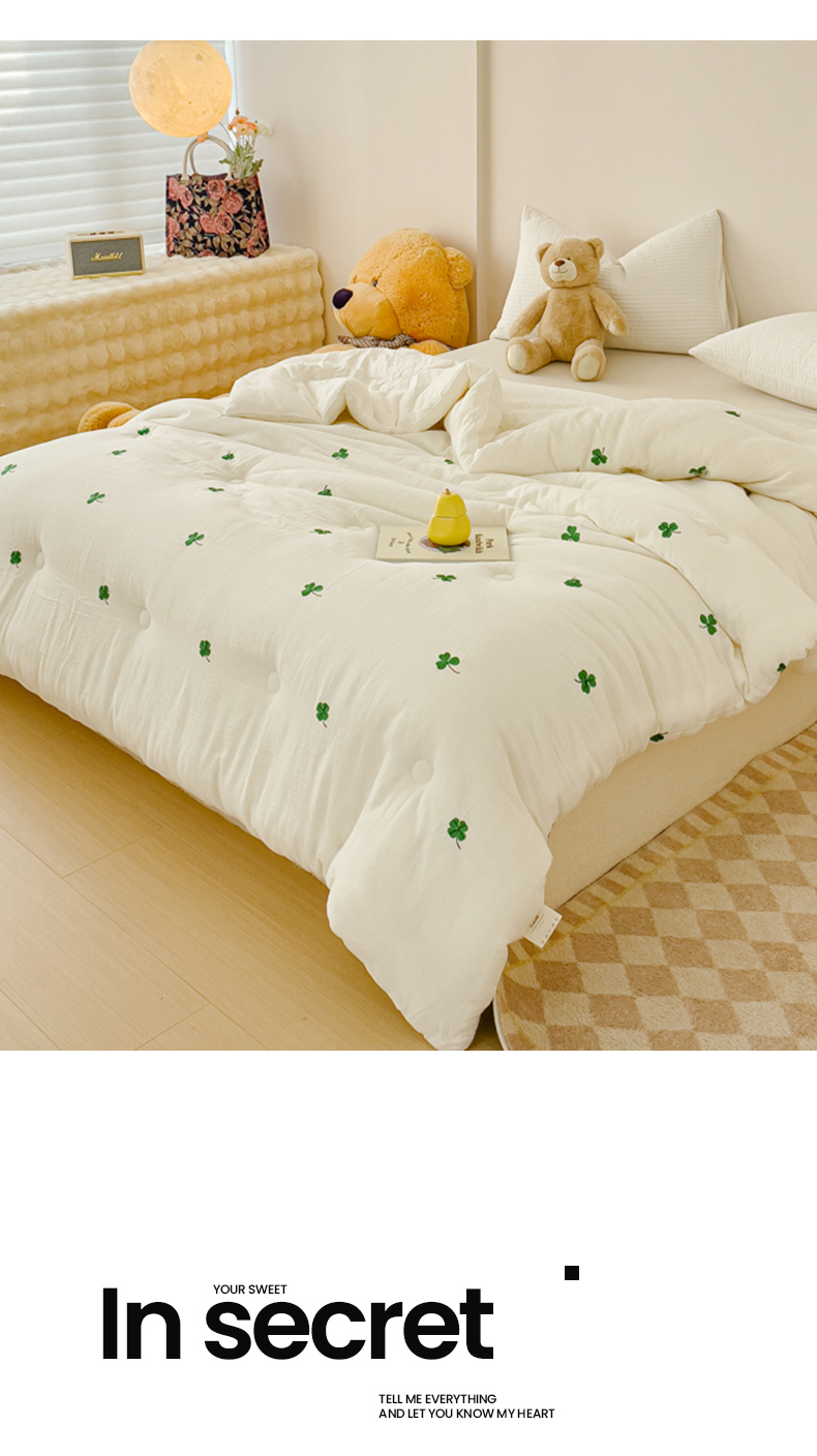 木楌家居 2025新款全棉皱皱纱刺绣款被芯-风格二 三叶草