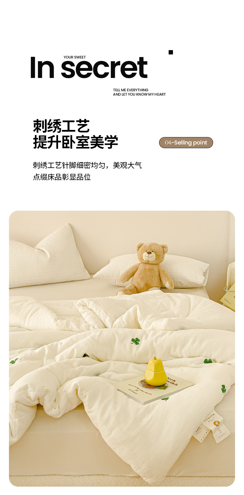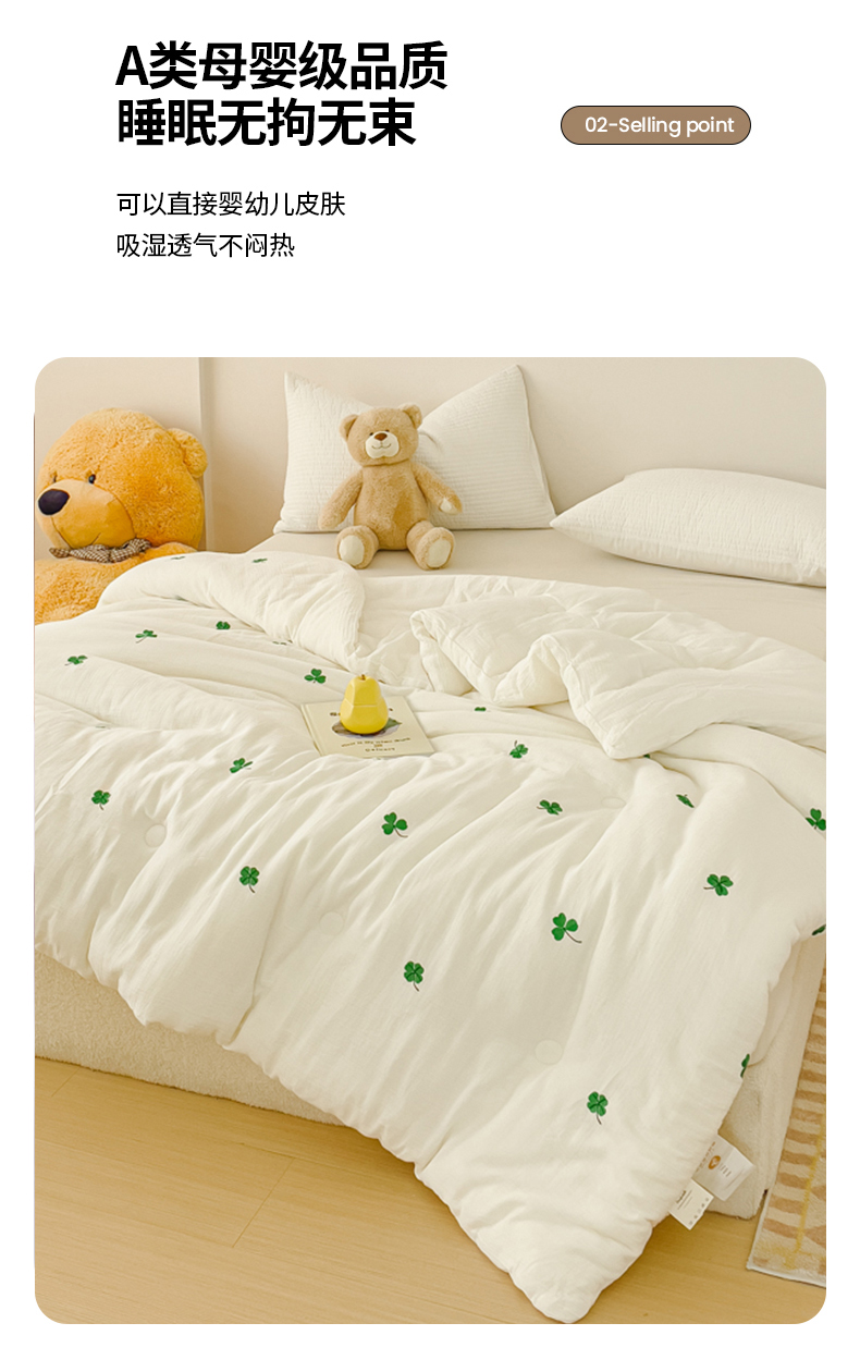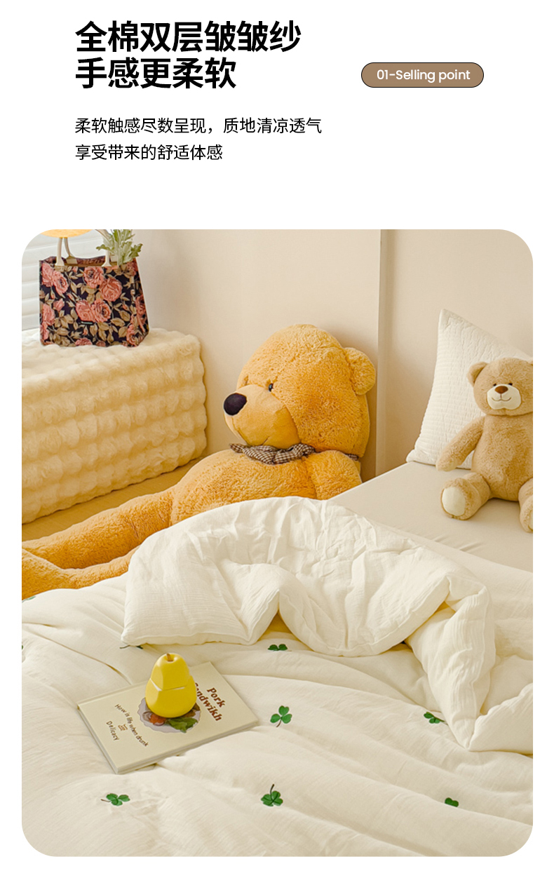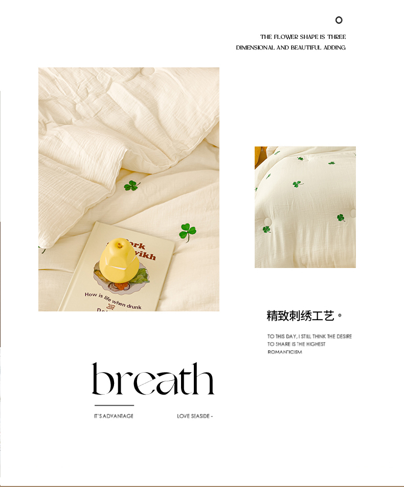 • 91家纺网 家纺一手货源 找家纺 木楌家居 2025新款全棉皱皱纱刺绣款被芯-风格二 三叶草
