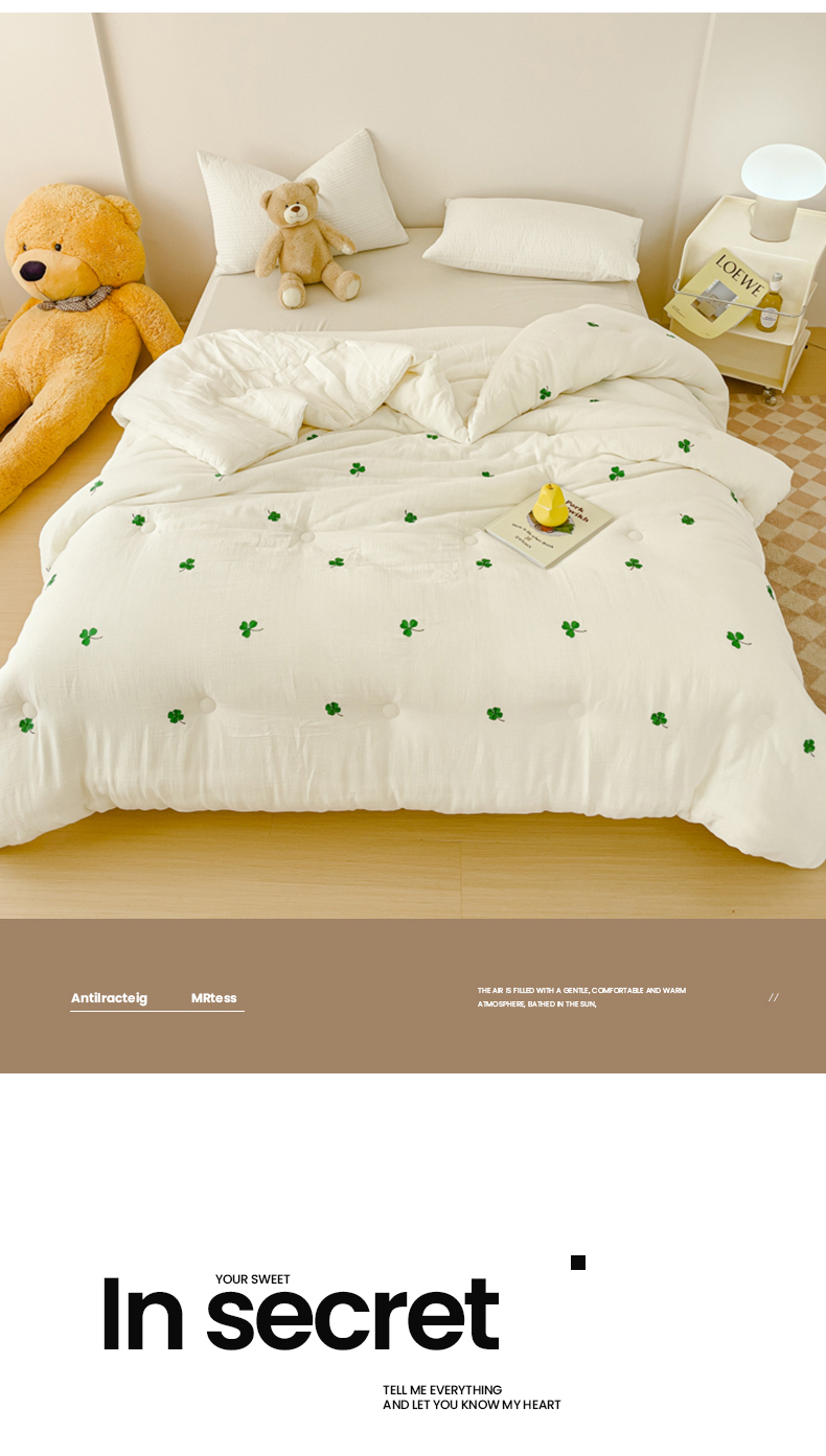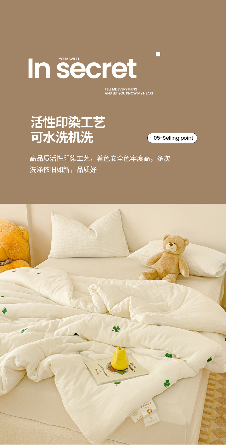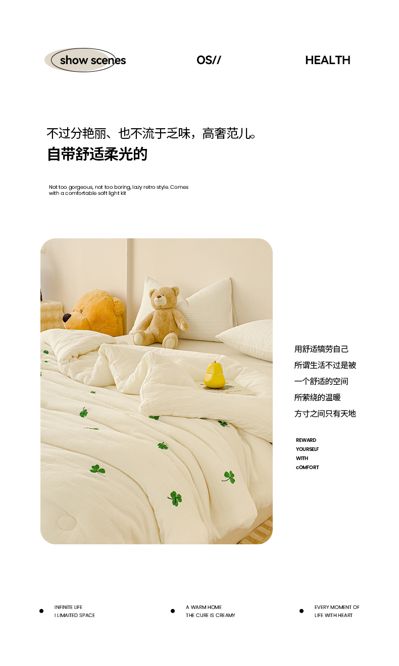 • 91家纺网 家纺一手货源 找家纺 木楌家居 2025新款全棉皱皱纱刺绣款被芯-风格二 三叶草