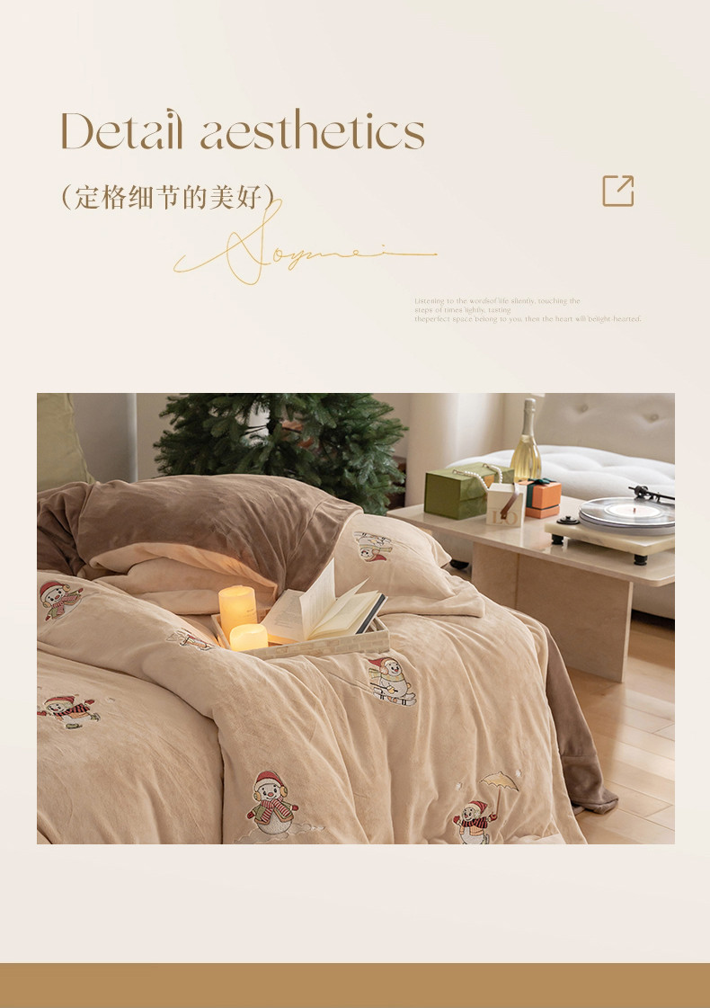 名品优仓 2023新款高克重牛奶绒绣花四件套-冰雪奇缘 冰雪奇缘- 香槟色